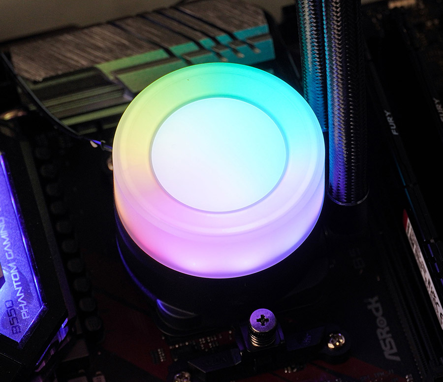 | Особливості | ARGB-підсвітка помпи та вентиляторів з ефектом об’ємного нескінченного дзеркала |