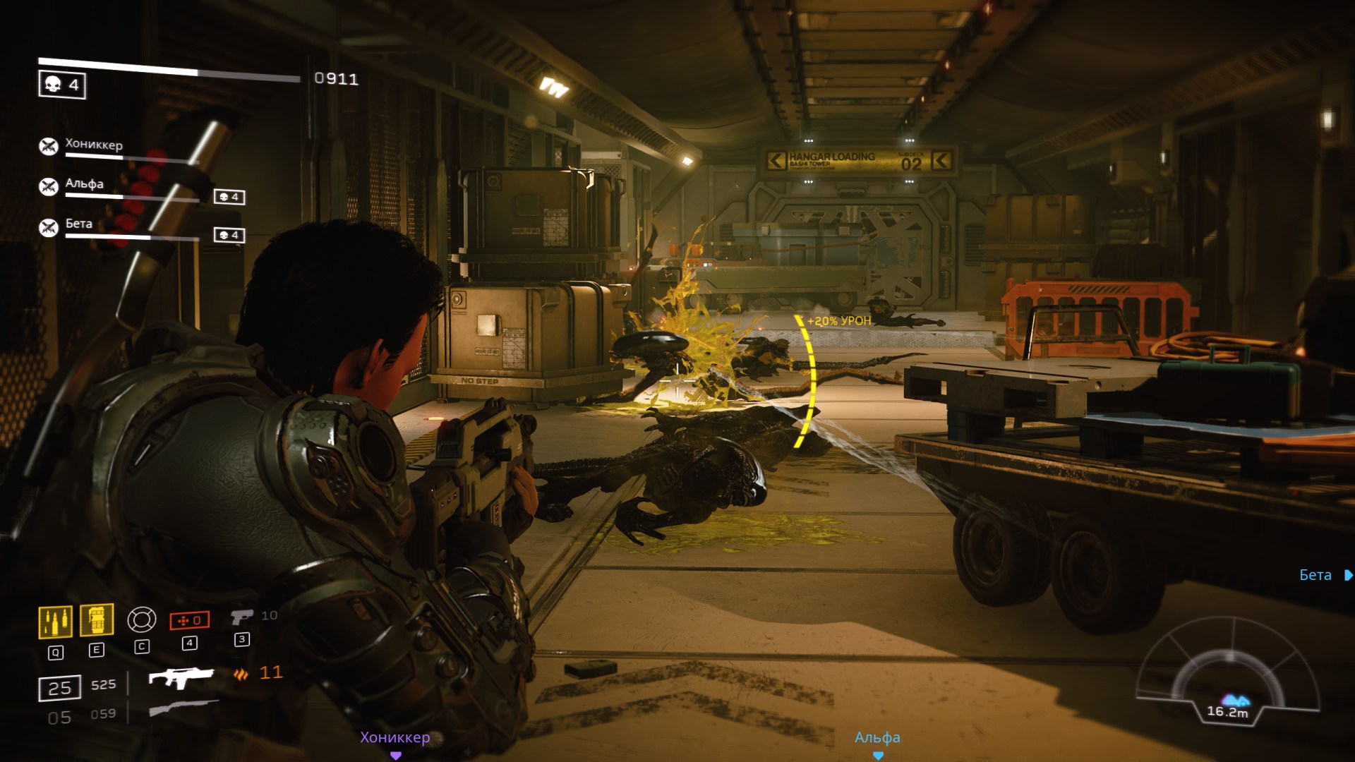 Головне випробування чекає наприкінці місії. Кожен етап завершується битвою у стилі «Орди». Перед нами є ящики з припасами та час на розміщення мін і турелей. Коли всі учасники команди поповнили боєприпаси, підлікувалися та зайняли позиції, можна натискати кнопку та розпочинати фінальну битву. І тут Aliens: Fireteam Elite розкривається повною мірою. Вороги напирають сильніше і сильніше, з'являються монстри різних видів, і кожна нова хвиля посилює тиск. Якщо раніше потужні тварюки атакували поодинці, тепер вони йдуть у бій цілим загоном. Гра створює шалену напругу та драйв з гострим відчуттям виживання у безнадійній ситуації.