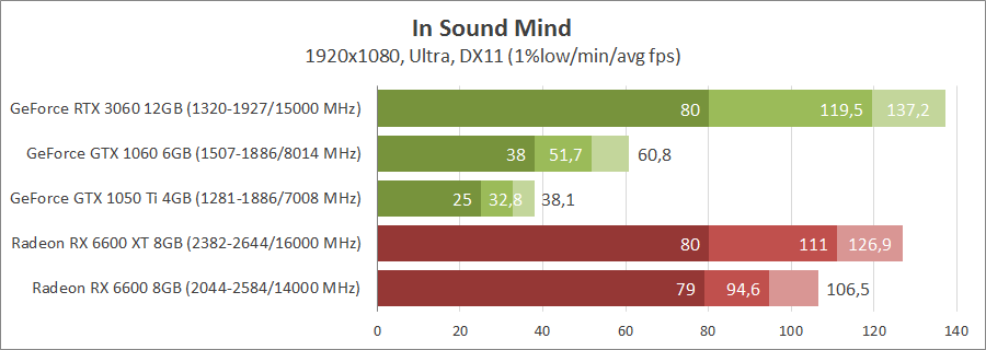 У Full HD непогані результати у GeForce GTX 1060. Але треба враховувати можливе падіння продуктивності у важких сценах. Тому про повний комфорт можна говорити на більш потужних відеокартах.
