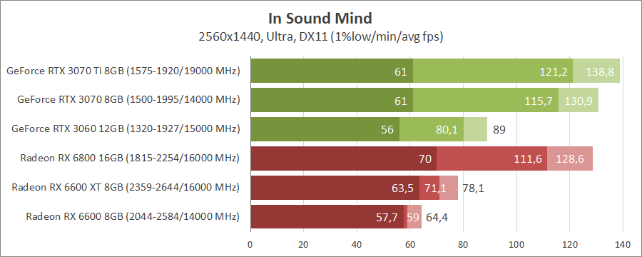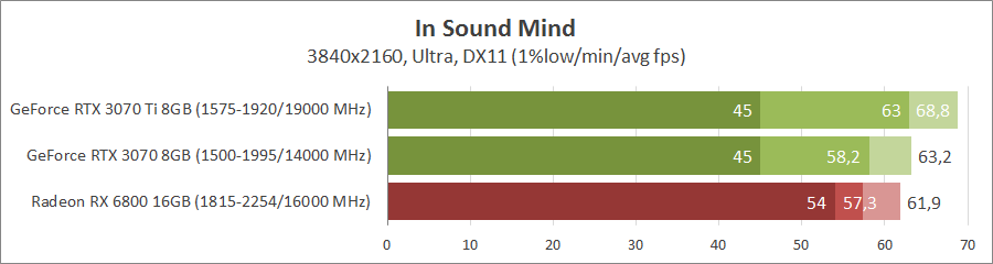 У 4K мінімальним варіантом є GeForce RTX 3070 та Radeon RX 6800. Але з важкими сценами добре впорається GeForce RTX 3070 Ti.