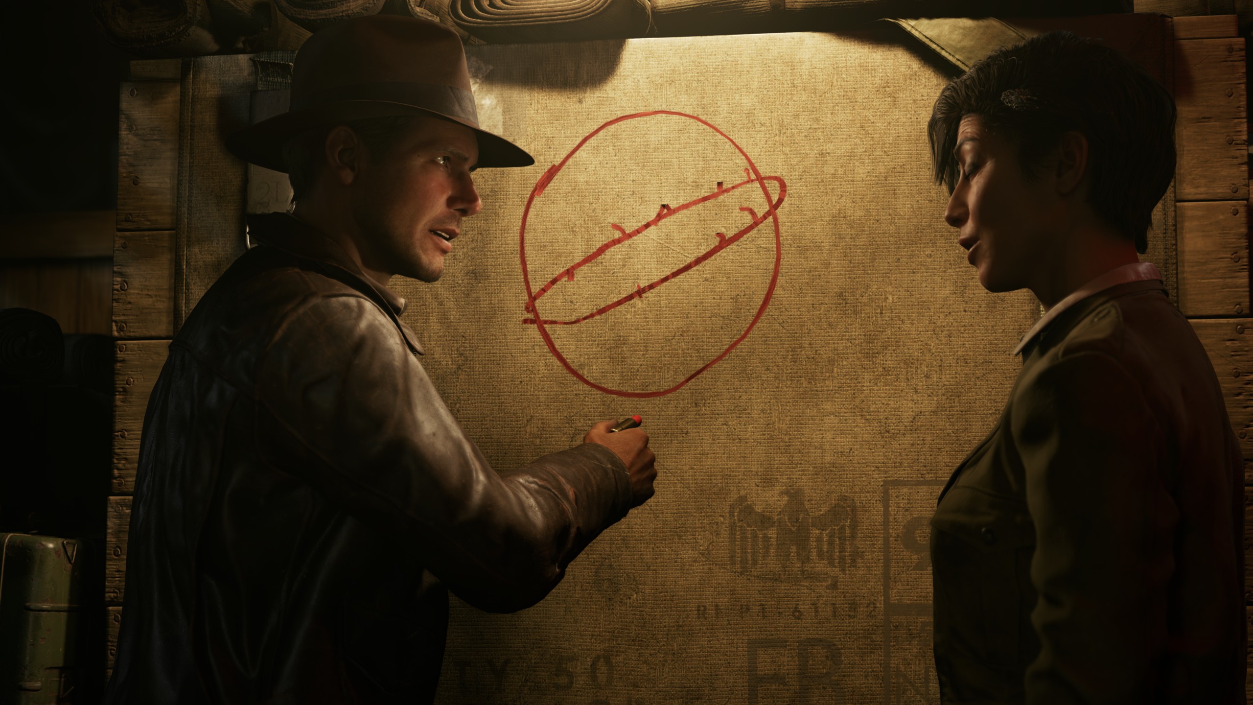 Події Indiana Jones and the Great Circle вписані в загальну хронологію кіносерії та відбуваються в 1937 році після фільму «Індіана Джонс: У пошуках втраченого ковчега». Гра зустрічає ретельно відтвореним епізодом зі згаданого фільму, коли доктор Джонс пробирається крізь джунглі Перу, щоб добути золотого ідола, після чого наприкінці тікає від величезної кам'яної кулі.