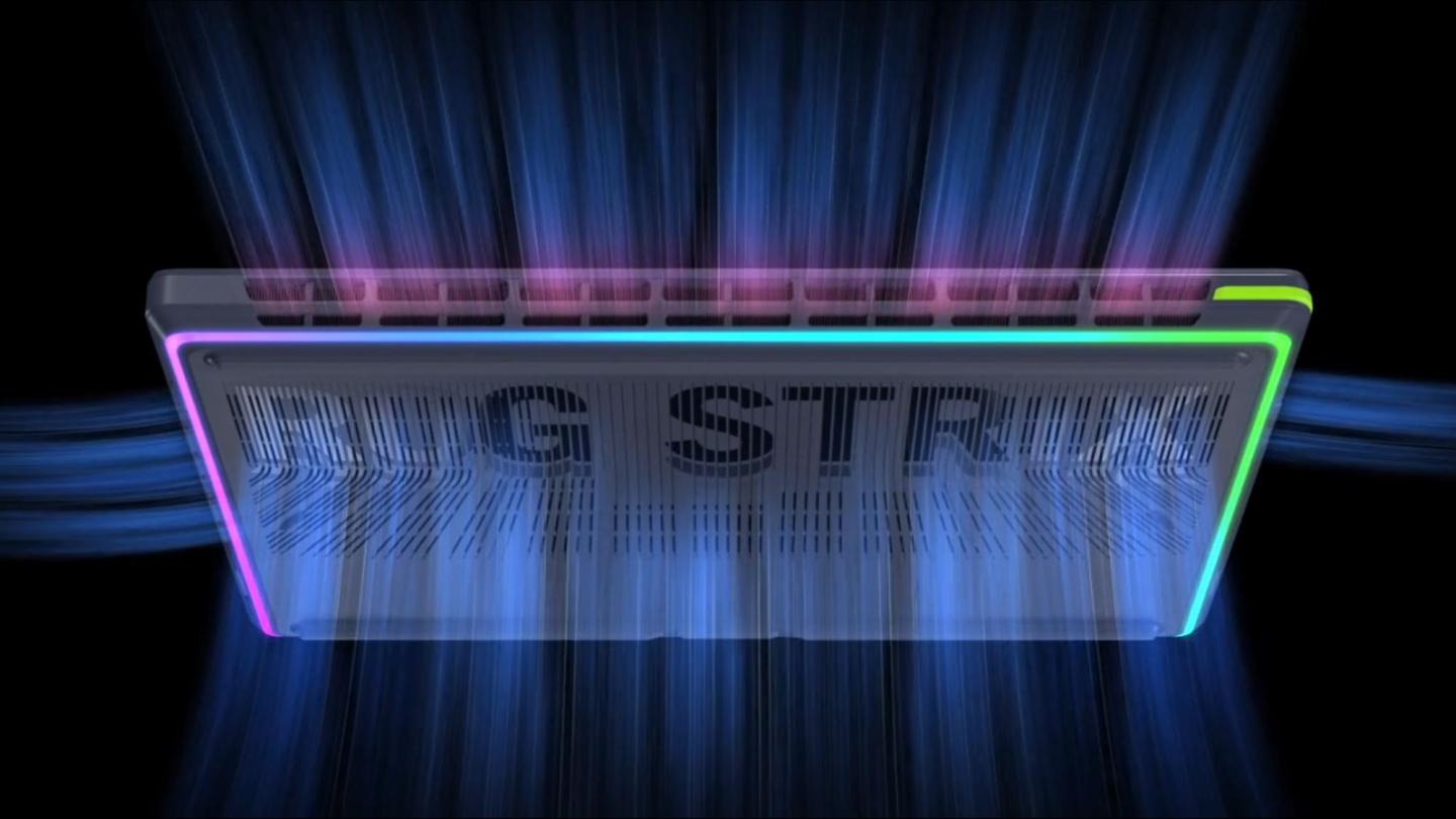 Ноутбук використовує нову систему охолодження з великою випарною камерою і рідким металом на CPU і GPU замість стандартної термопасти. Використання трьох вентиляторів і велика кількість отворів для припливу повітря знизу забезпечують потужний повітряний потік для хорошого обдування радіатора і всіх компонентів. Очевидно, що все це позитивно позначиться на температурному режимі та підтримці високих робочих частот для максимальної продуктивності в іграх та інших навантаженнях.