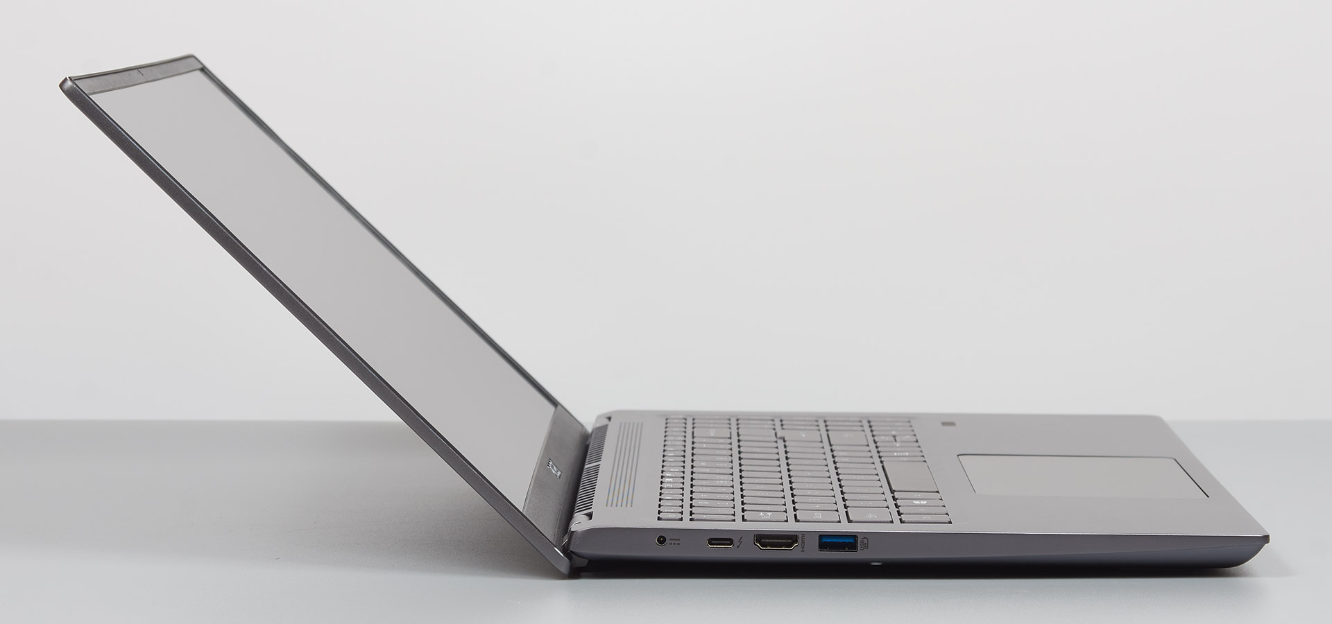 Візуально лептоп виглядає як типовий ультрабук формату 15,6 дюйма. При габаритах 368x236x18,9 мм він мінімально відрізняється від якогось Acer Swift 5, але вага трохи більше — до 1,9 кг. Немає відчуття, що ви чимось жертвуєте через збільшену діагональ екрану, і це важливий плюс.
