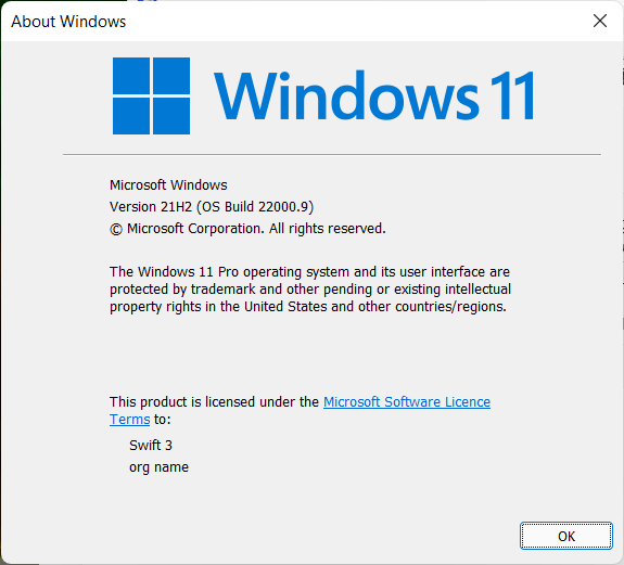 Acer Swift X працює під керуванням операційної системи Windows 11.