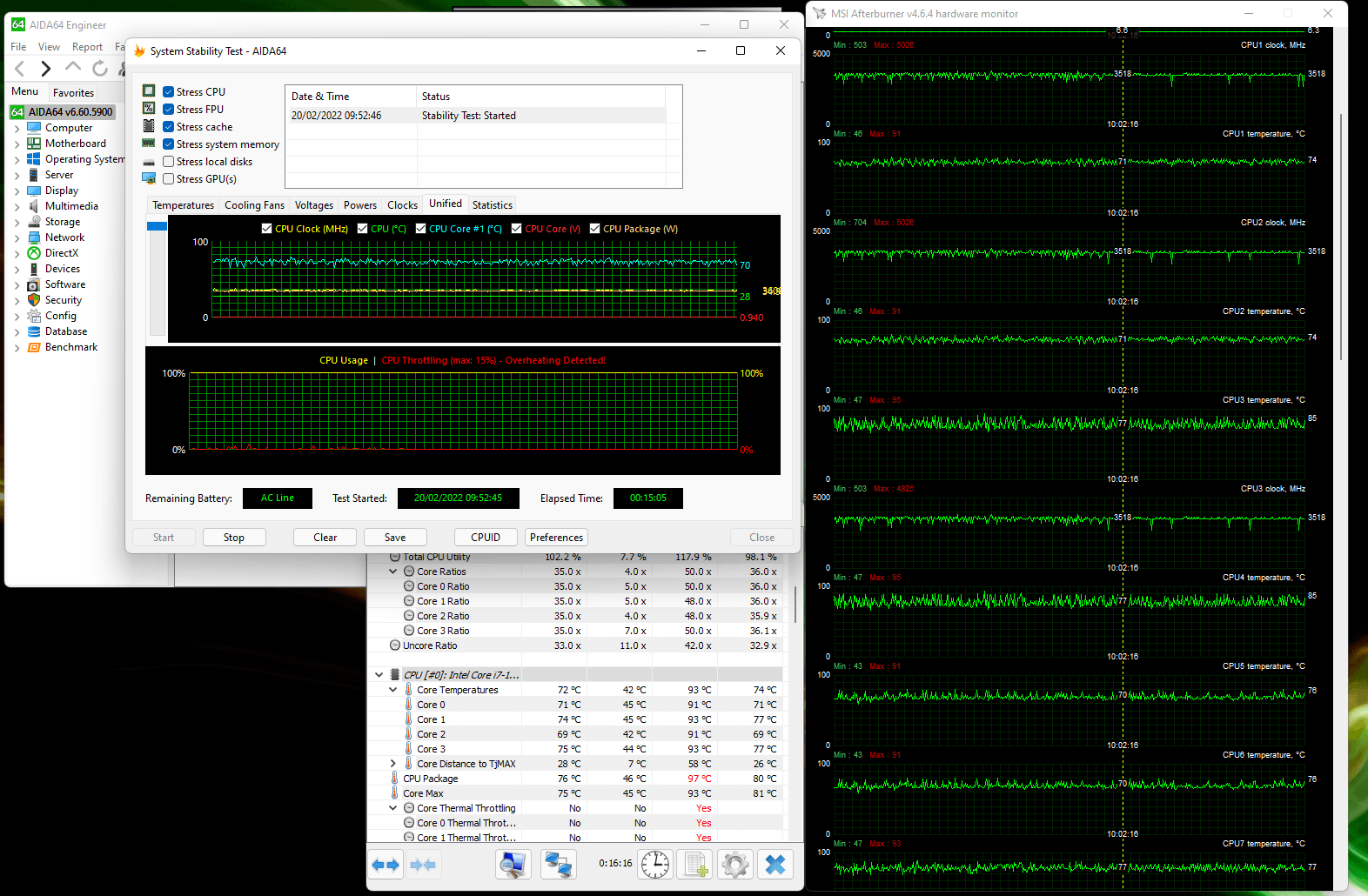 У цьому режимі процесорні ядра показували частоти 3,5–3,6 ГГц. Пікові температури ядер сягали 93–95 °C, середня робоча температура була нижче 80 °C.