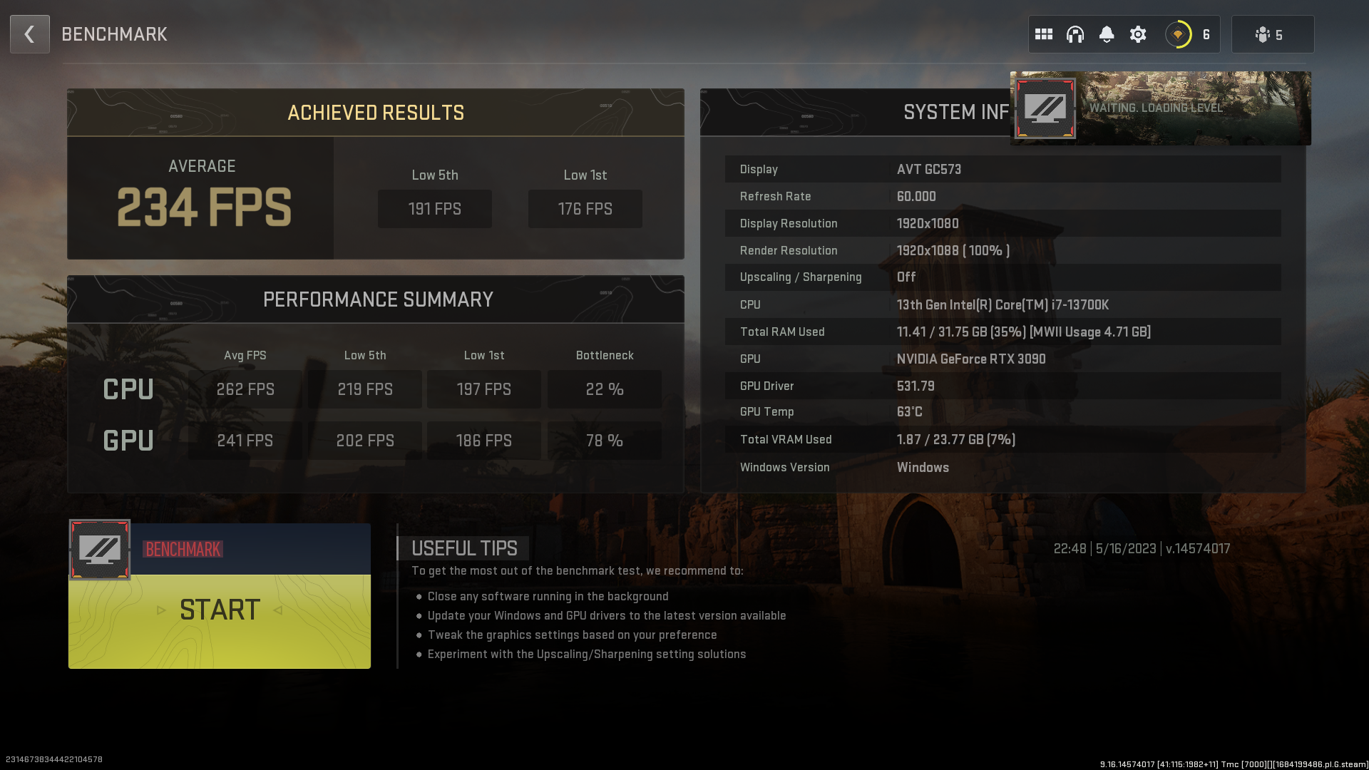 - операційна система: Microsoft Windows 11 Pro 22H2 x64 (22621.1265), актуальні оновлення на момент початку травня 2023 року.