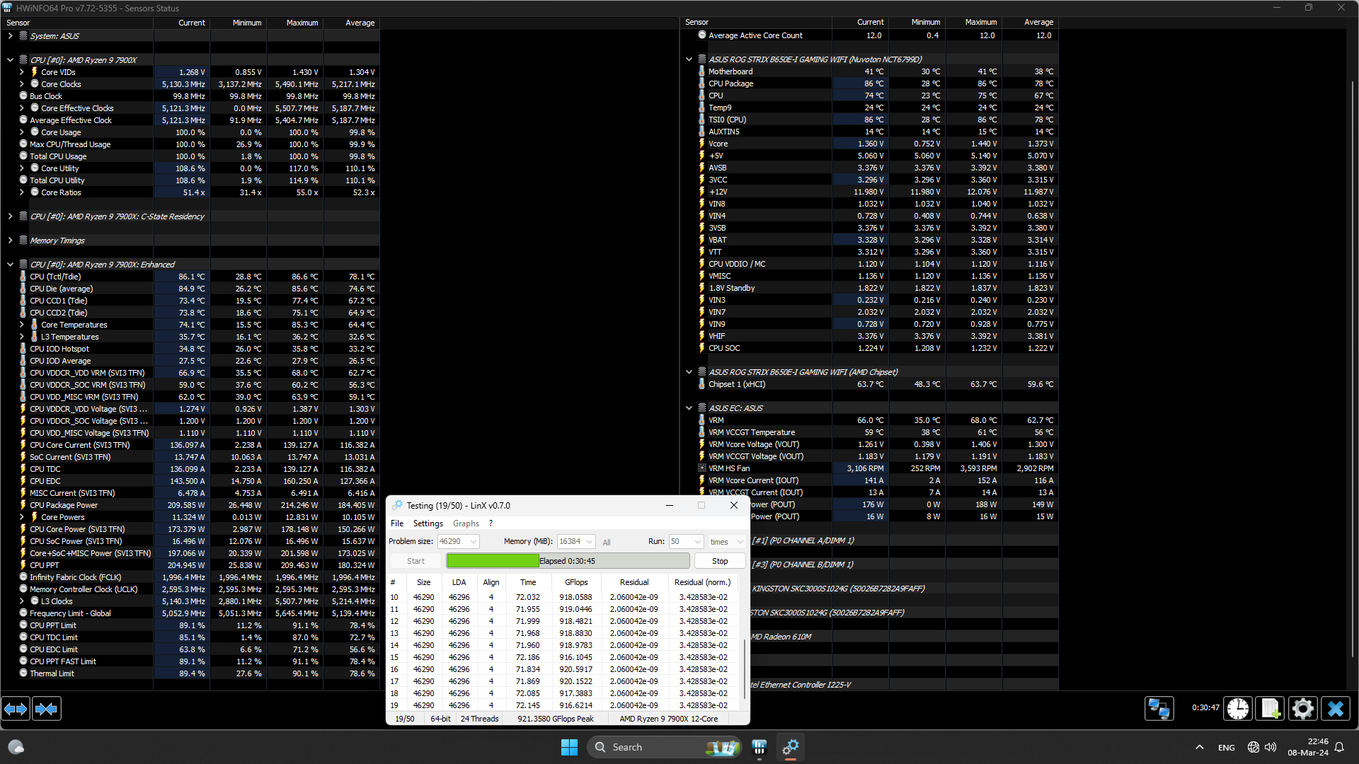 - материнська плата: ASUS ROG STRIX B650E-I GAMING WIFI (UEFI 2413, AGESA 1.1.0.2b);