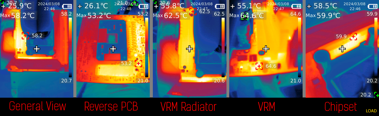 Термофото. Порядок: простій, навантаження в типовому режимі, навантаження в режимі ручного розгону.