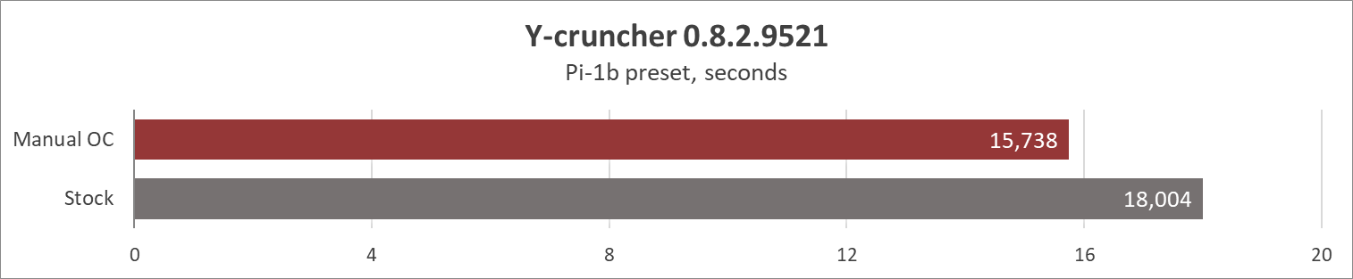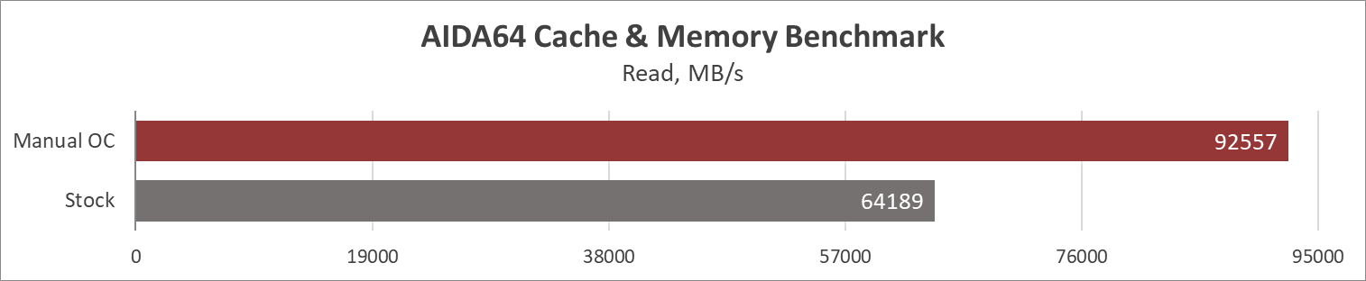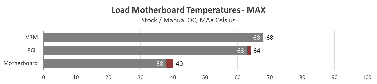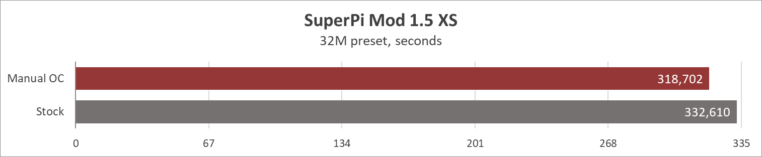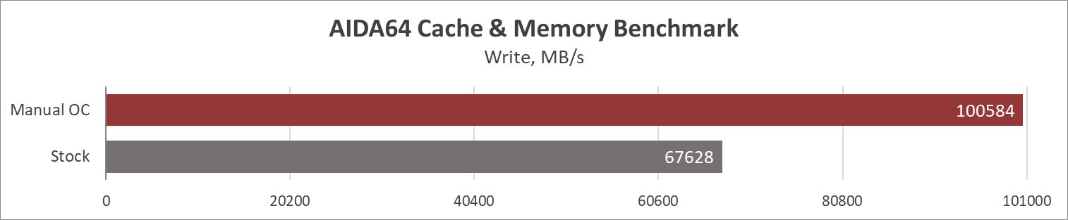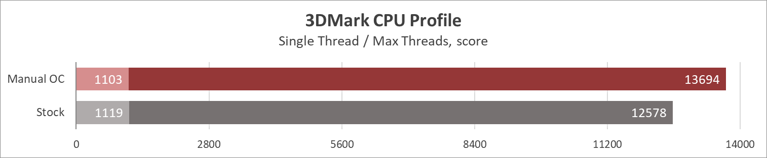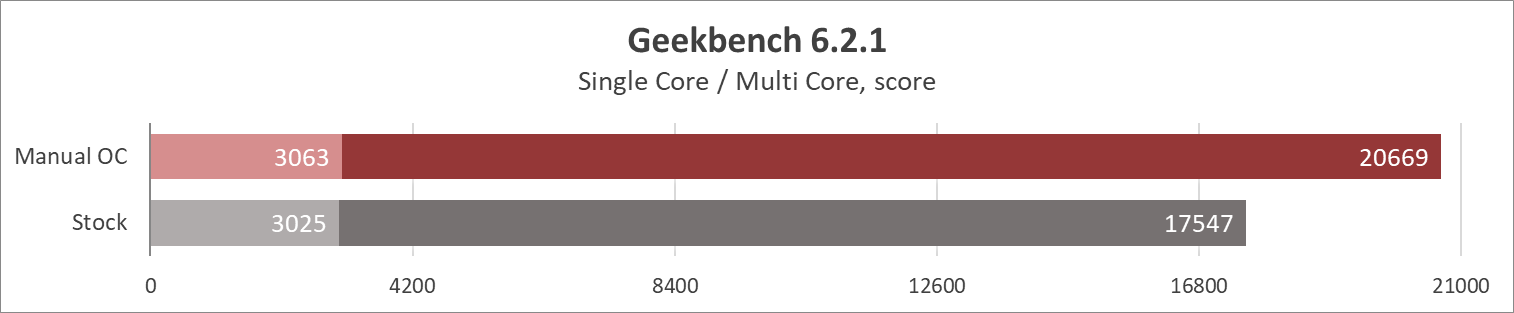 В режимі ручного оверклокінгу плата забезпечила середню частоту всіх ядер на частоті 5490,1 МГц.