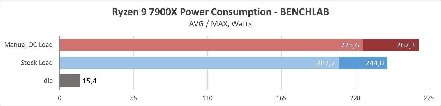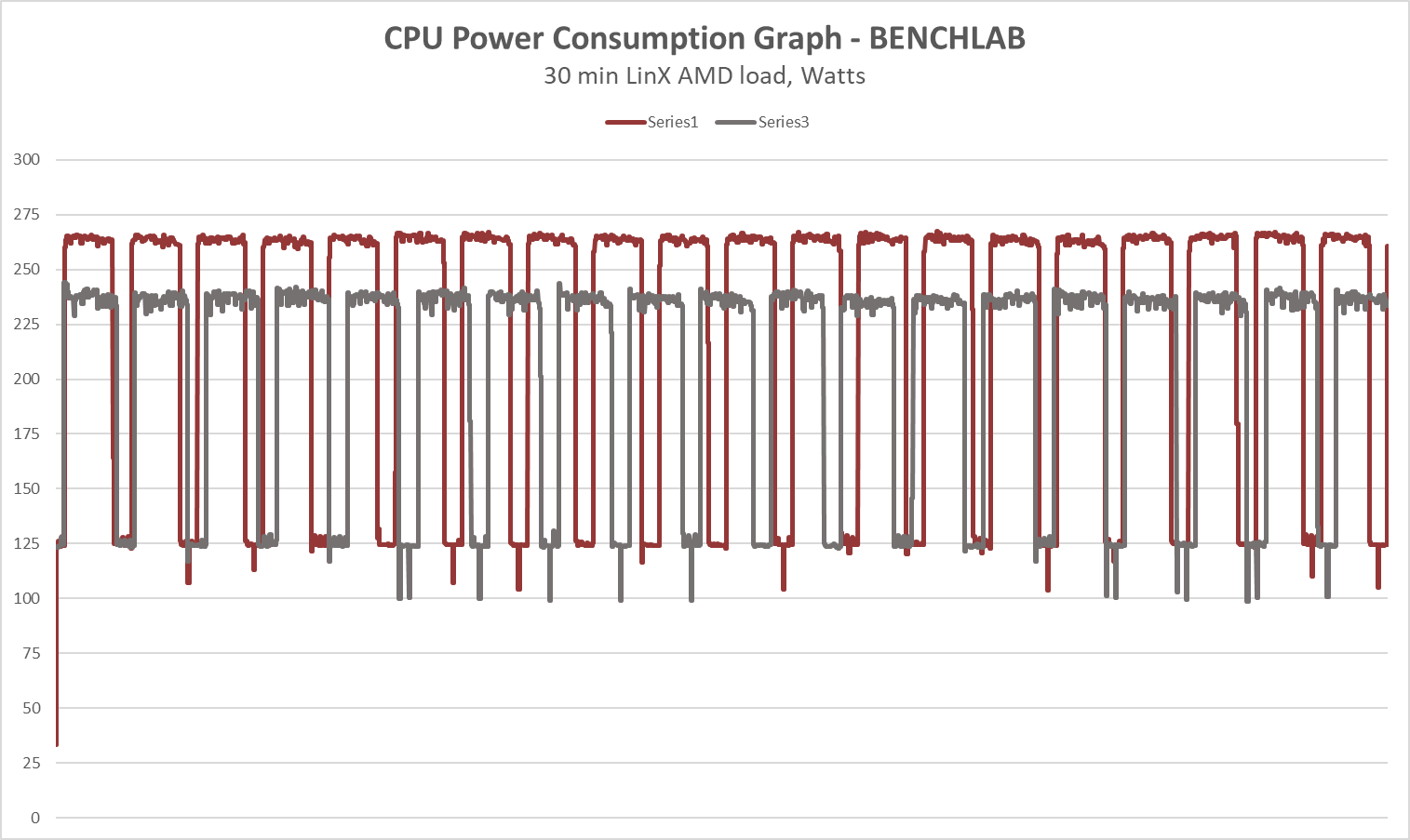 Температура в приміщенні утримувалась на рівні 20 градусів за Цельсієм. Вимір енергоспоживання процесора відбувався через прямий замір EPS12V за допомогою BENCHLAB (опитування датчика кожні 100 мс). Вимір температури фіксувався за програмними датчиками HWINFO, а також з термофото, що було виконано тепловою камерою UNI-T RX-600. Тест являв собою забіг 30 хвилин LinX 0.7.0 AMD (problem size 46290). Кожен бенчмарк запускався п'ять разів, у результатах зазначено середнє арифметичне. Ігри тестувались на заводських пресетах мінімальної якості в стандартних бенчмарках.