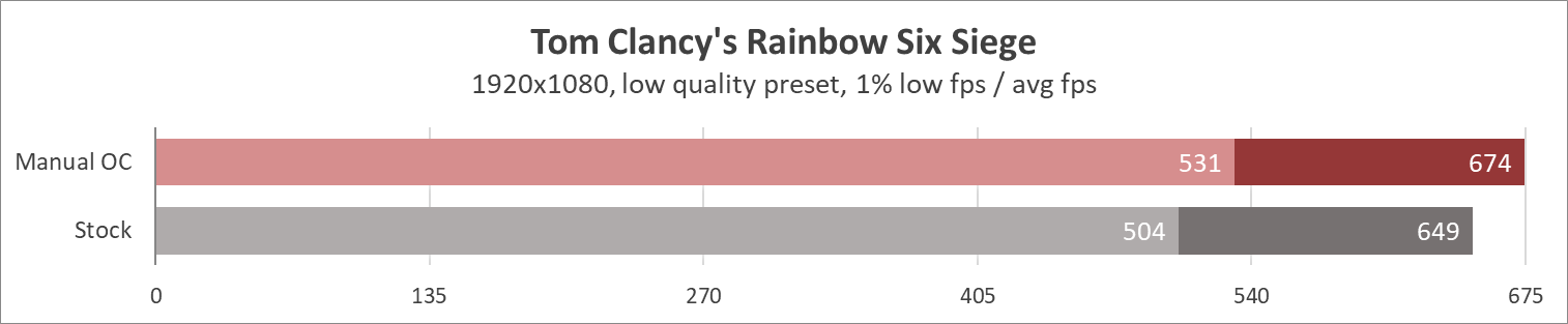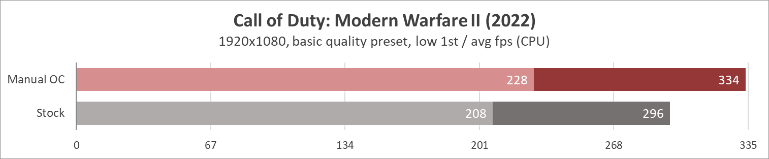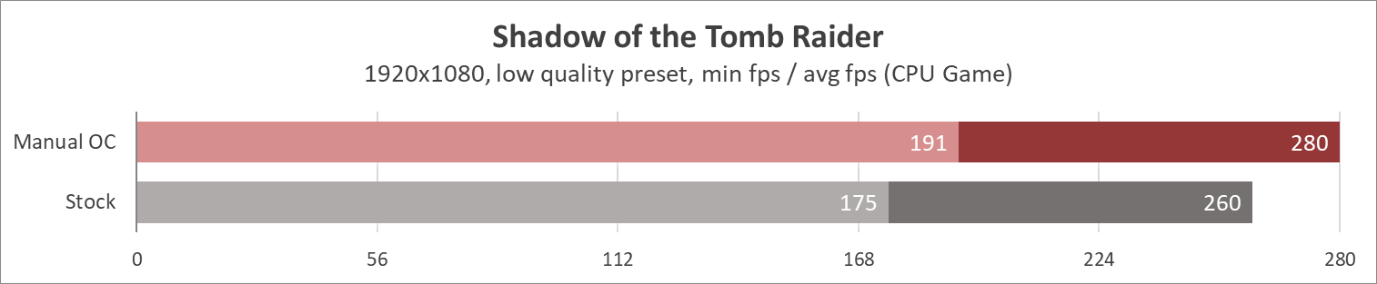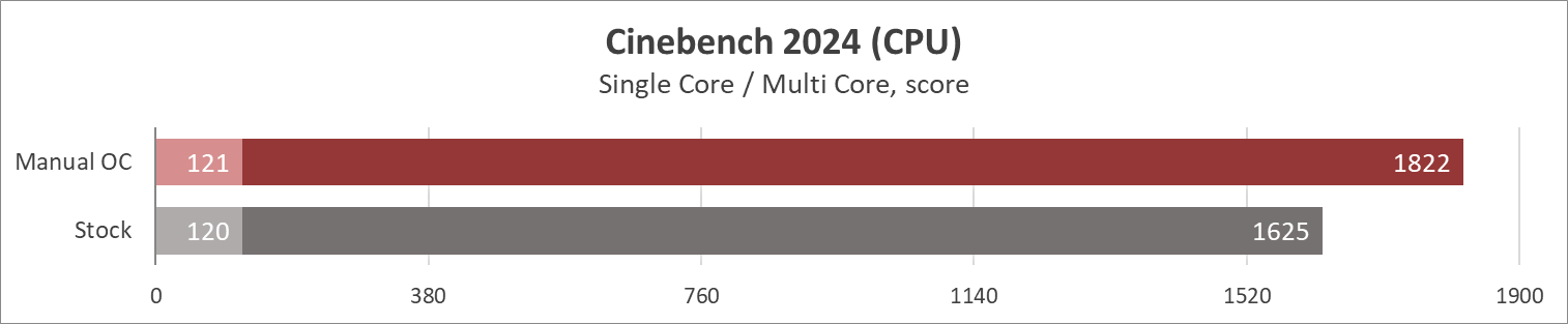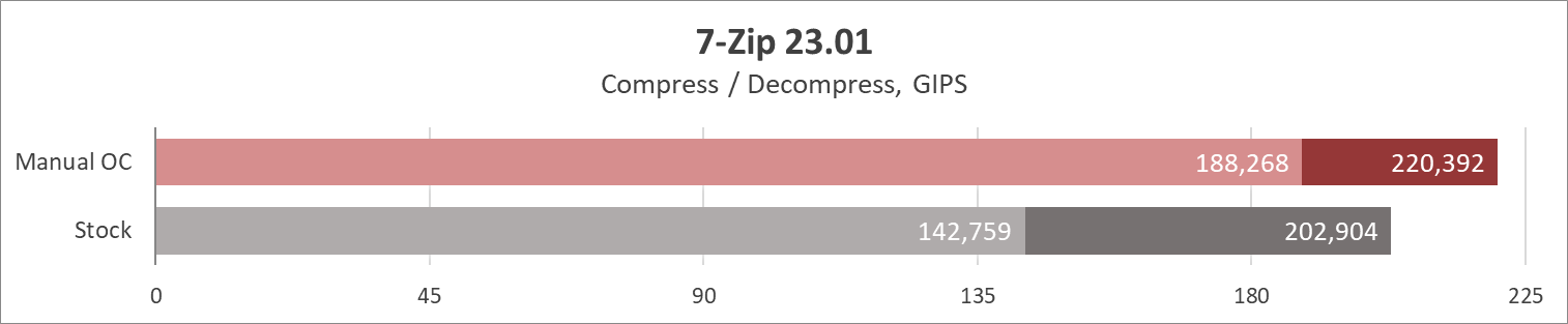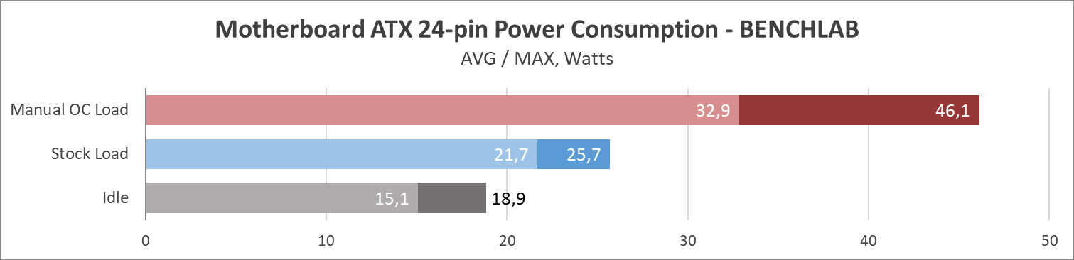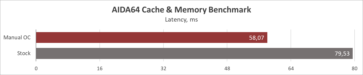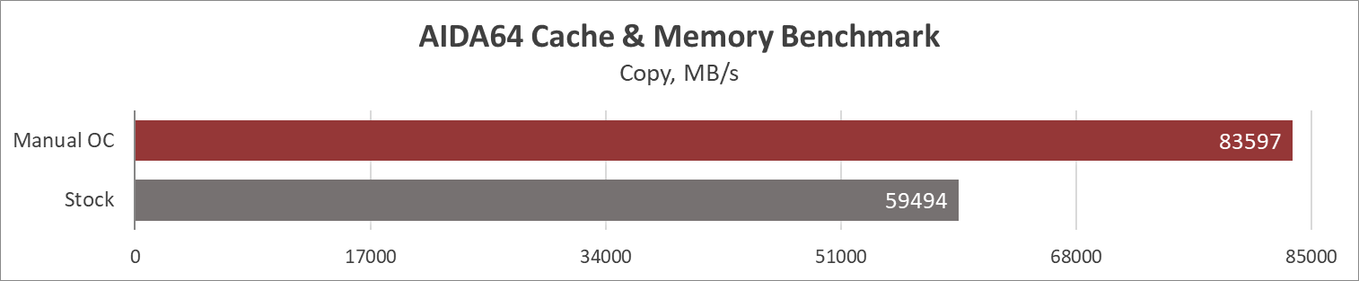 Резюмуємо загальні успіхи в питанні оверклокінгу: материнська плата допоможе вичавити 7% додаткового fps в іграх, збільшити пропускну здатність оперативної пам’яті на 45% та знизити її затримки до 27%, а також забезпечить комплексний приріст продуктивності процесора за всіма ядрами до 14% (пік до 32%). Більш ніж достатні показники для материнської плати компактного класу.