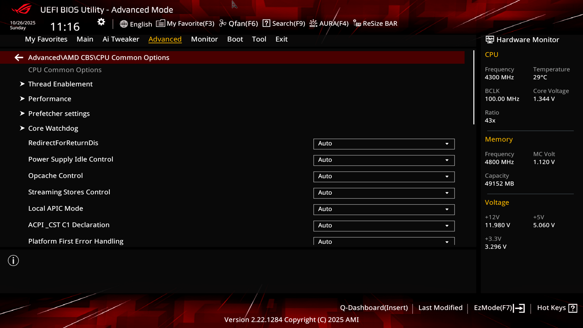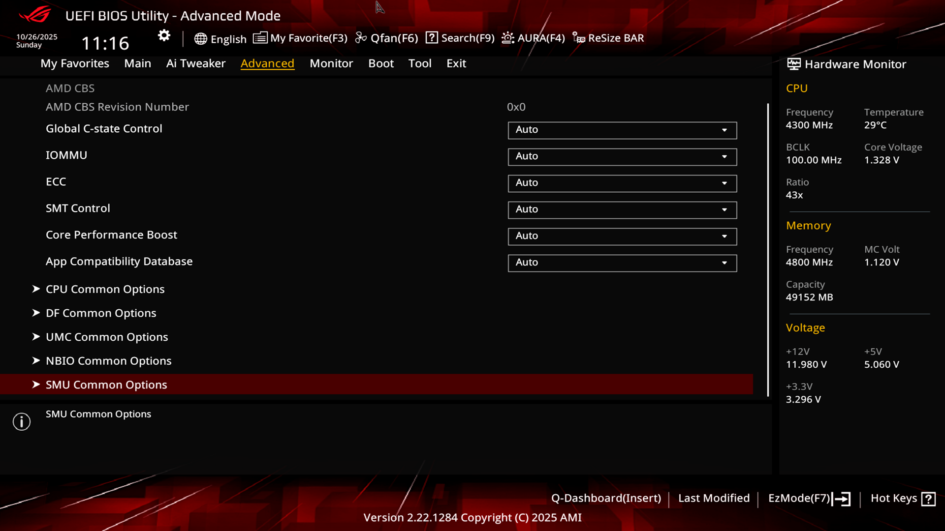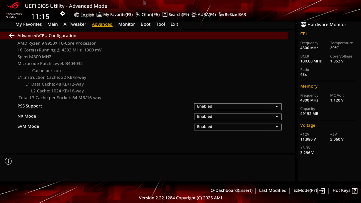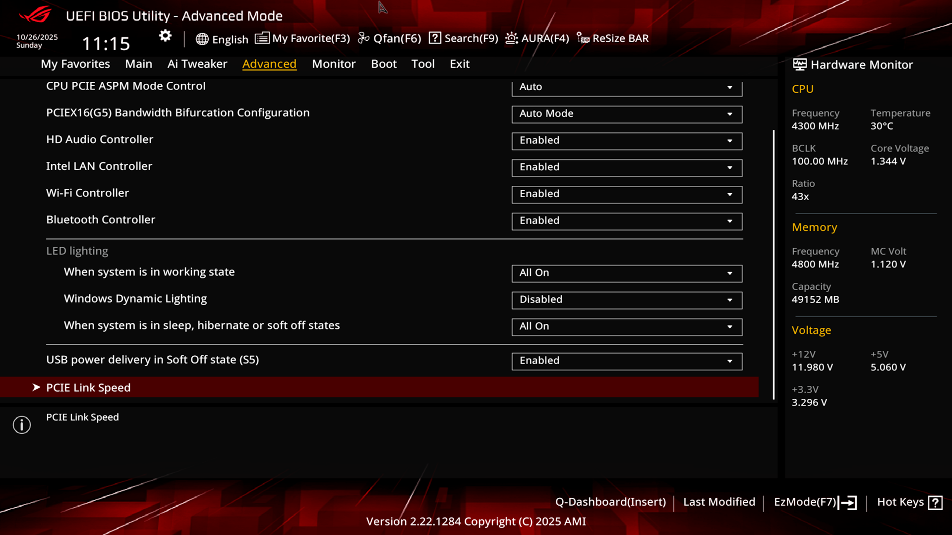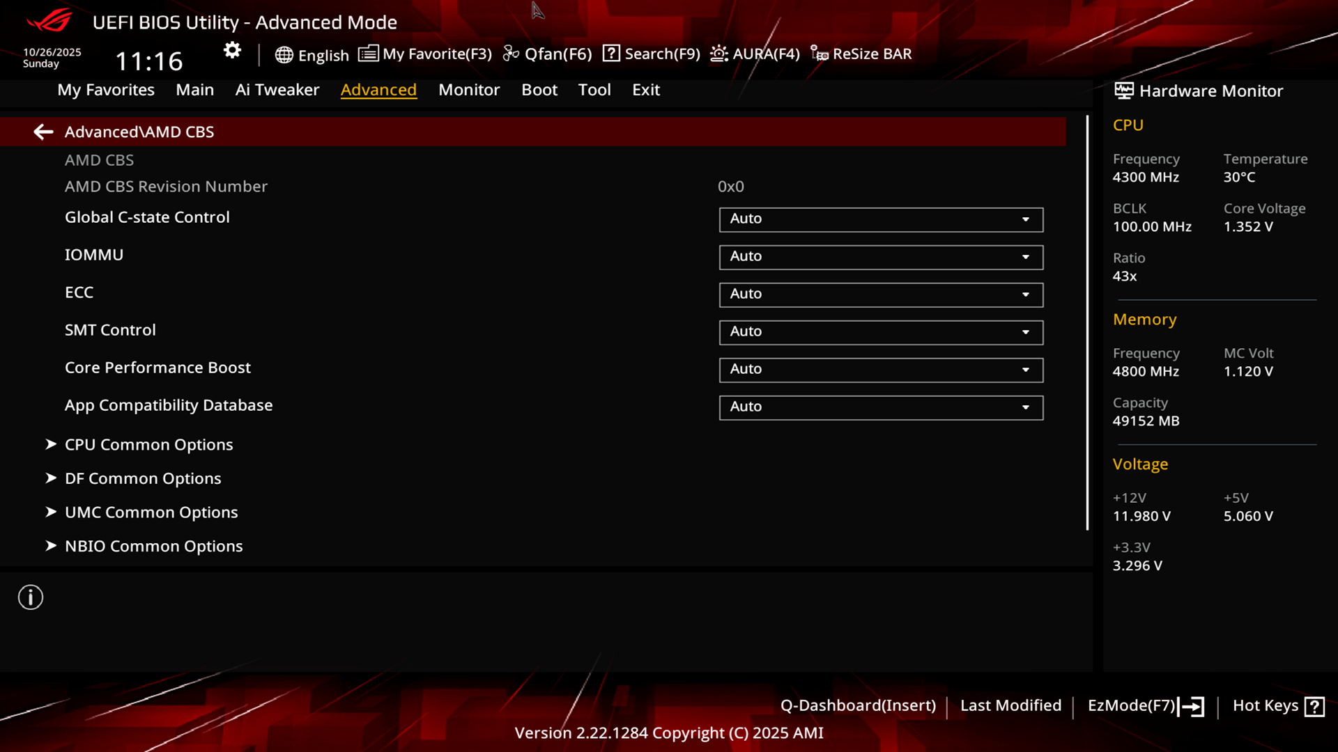 ASUS ROG Strix B850‑G Gaming WiFi керується типовим ASUS UEFI BIOS UTILITY, який стилізовано під лінійку продуктів Republic of Gamers. Пропонуються два варіанти керування: EZ Mode та Advanced Mode.