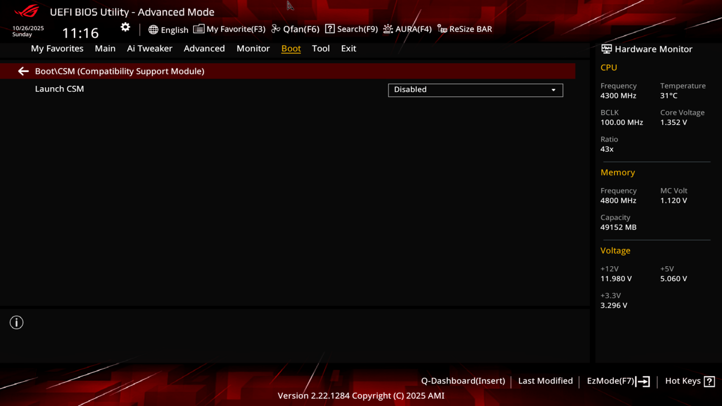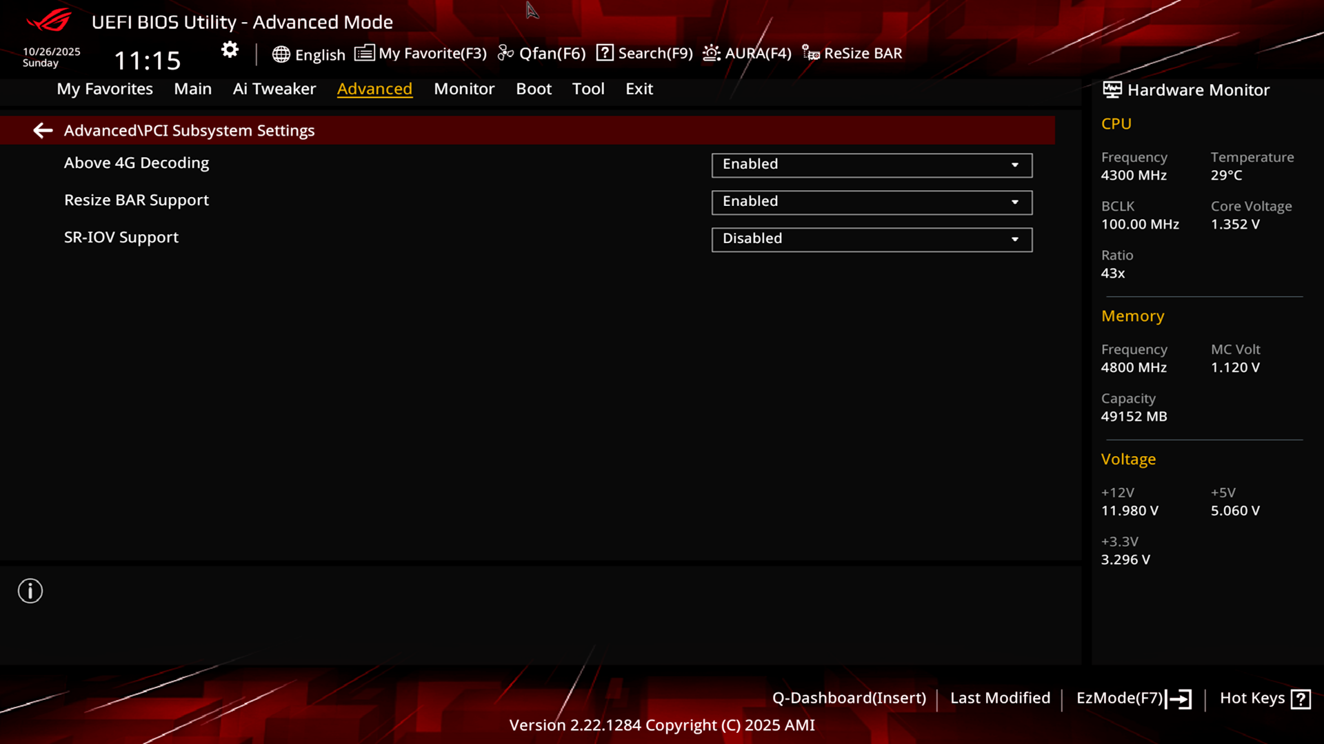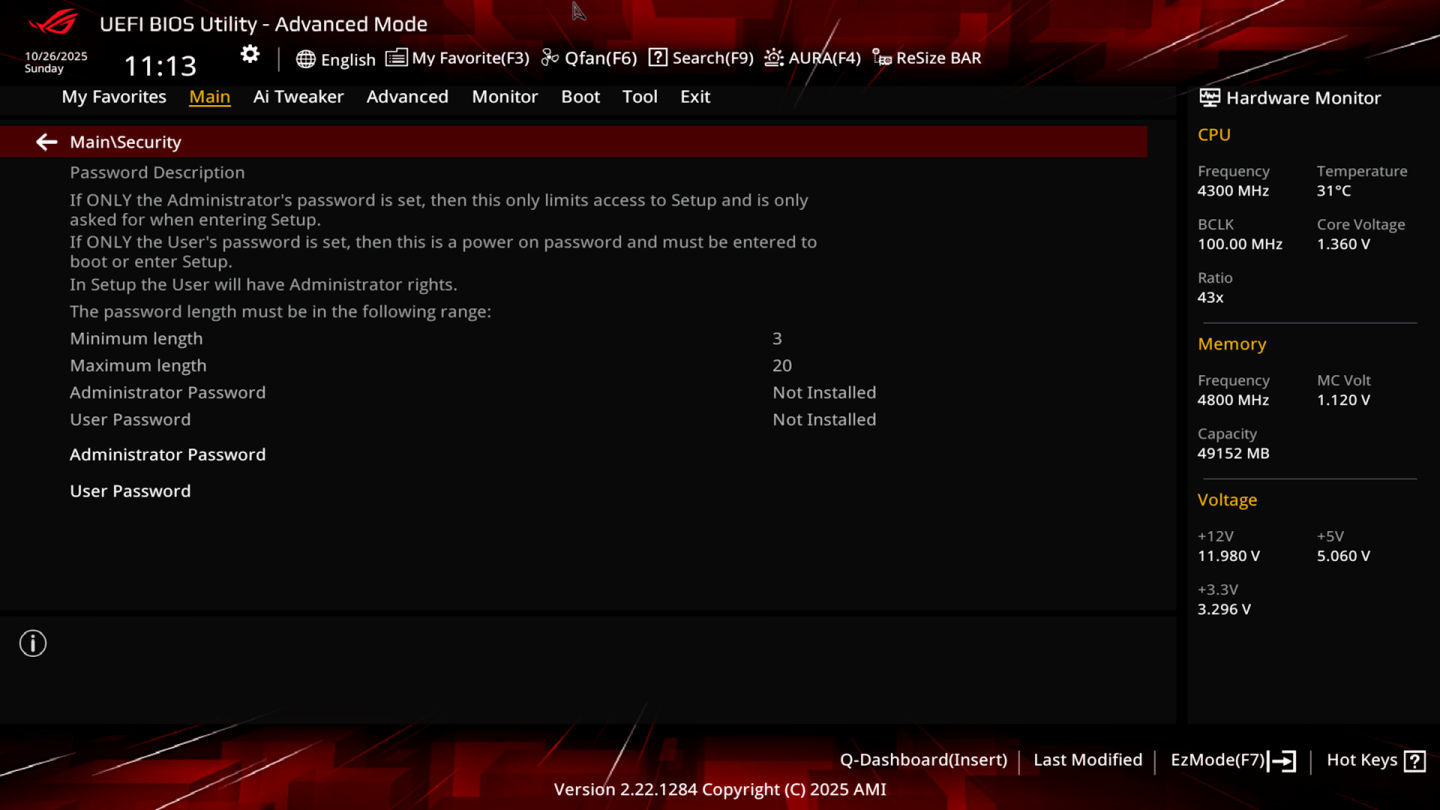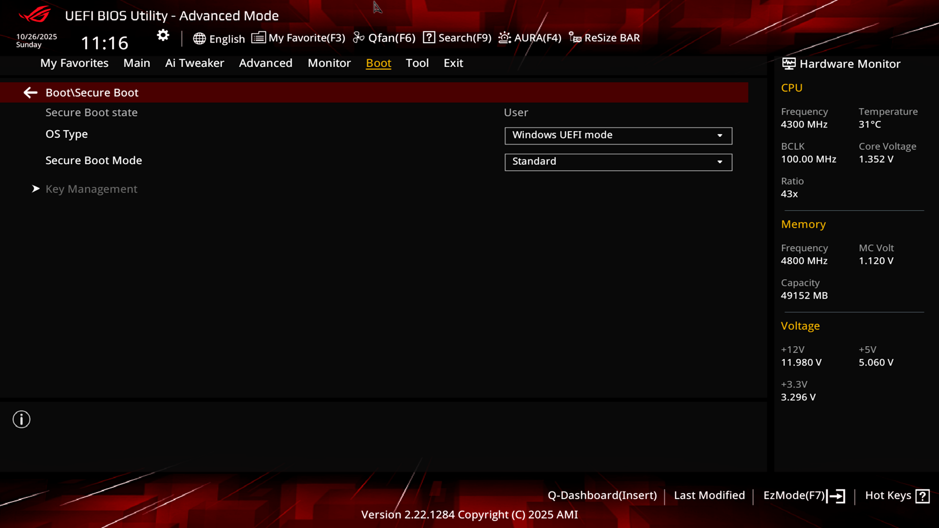ASUS ROG Strix B850‑G Gaming WiFi керується типовим ASUS UEFI BIOS UTILITY, який стилізовано під лінійку продуктів Republic of Gamers. Пропонуються два варіанти керування: EZ Mode та Advanced Mode.