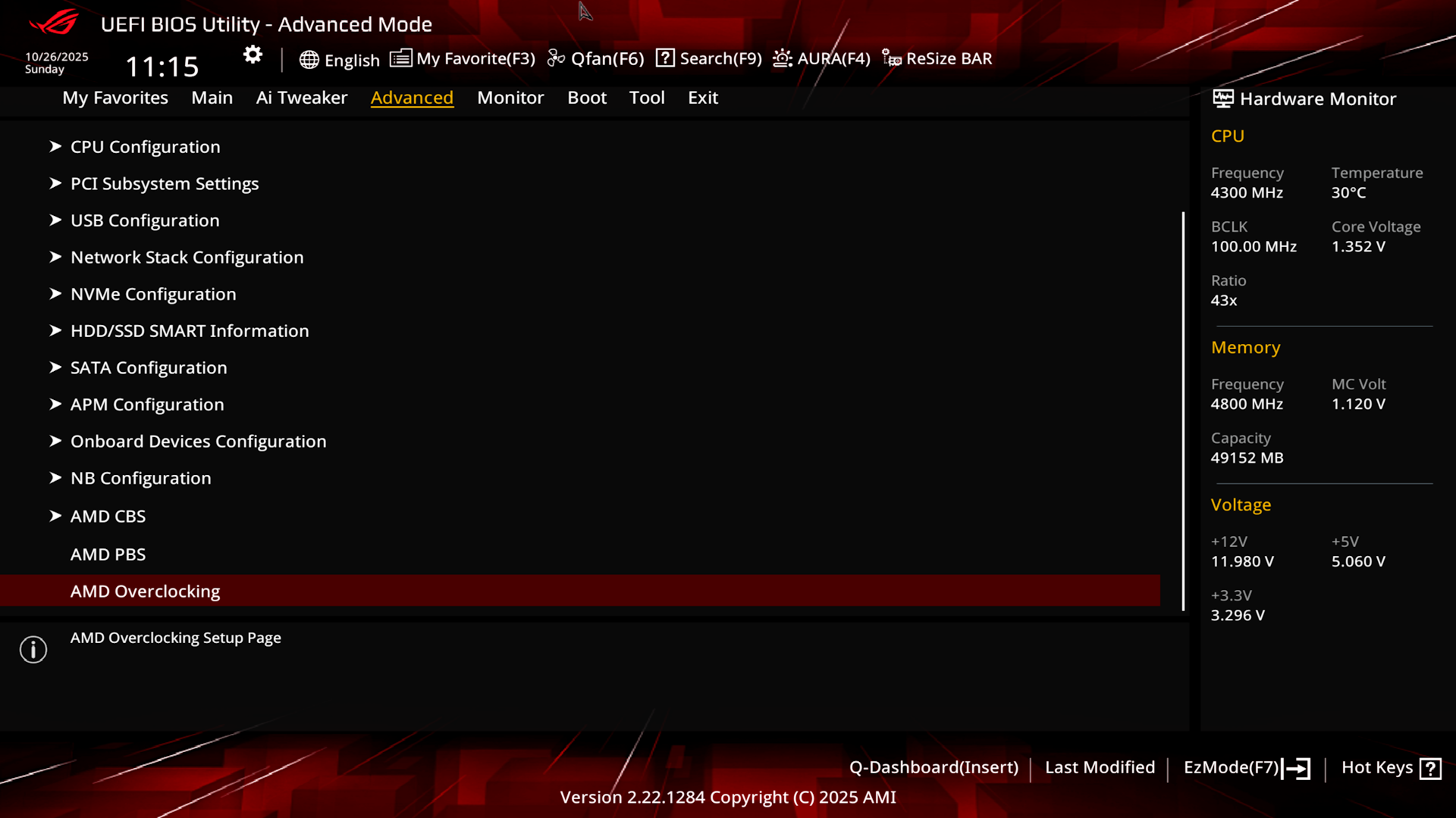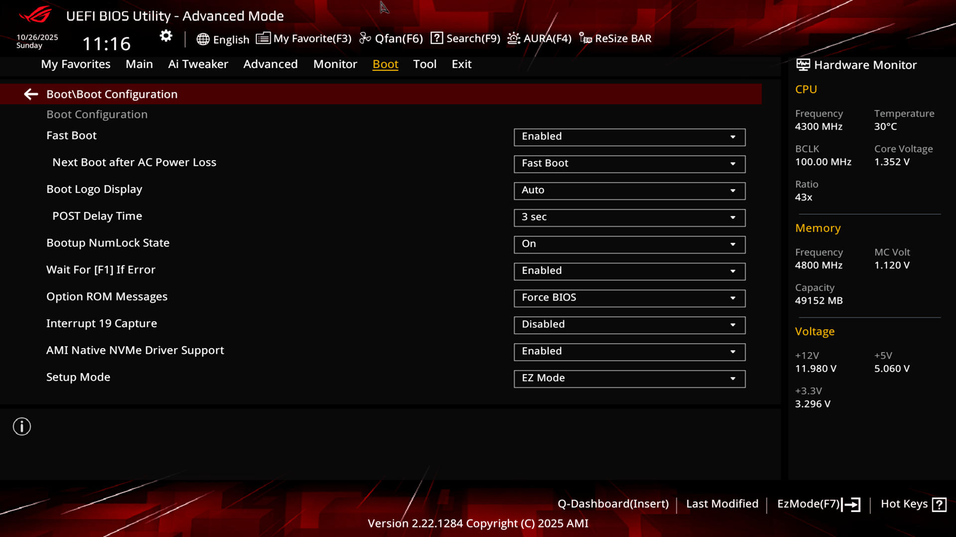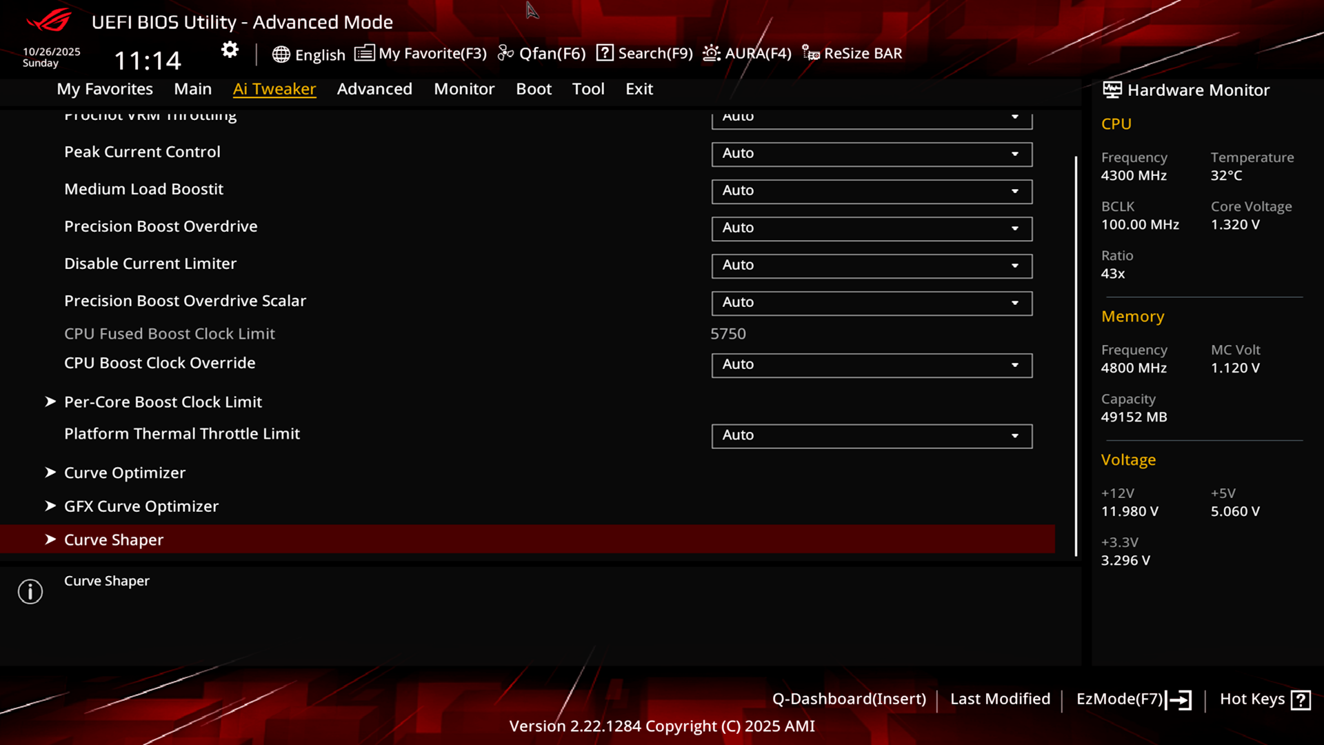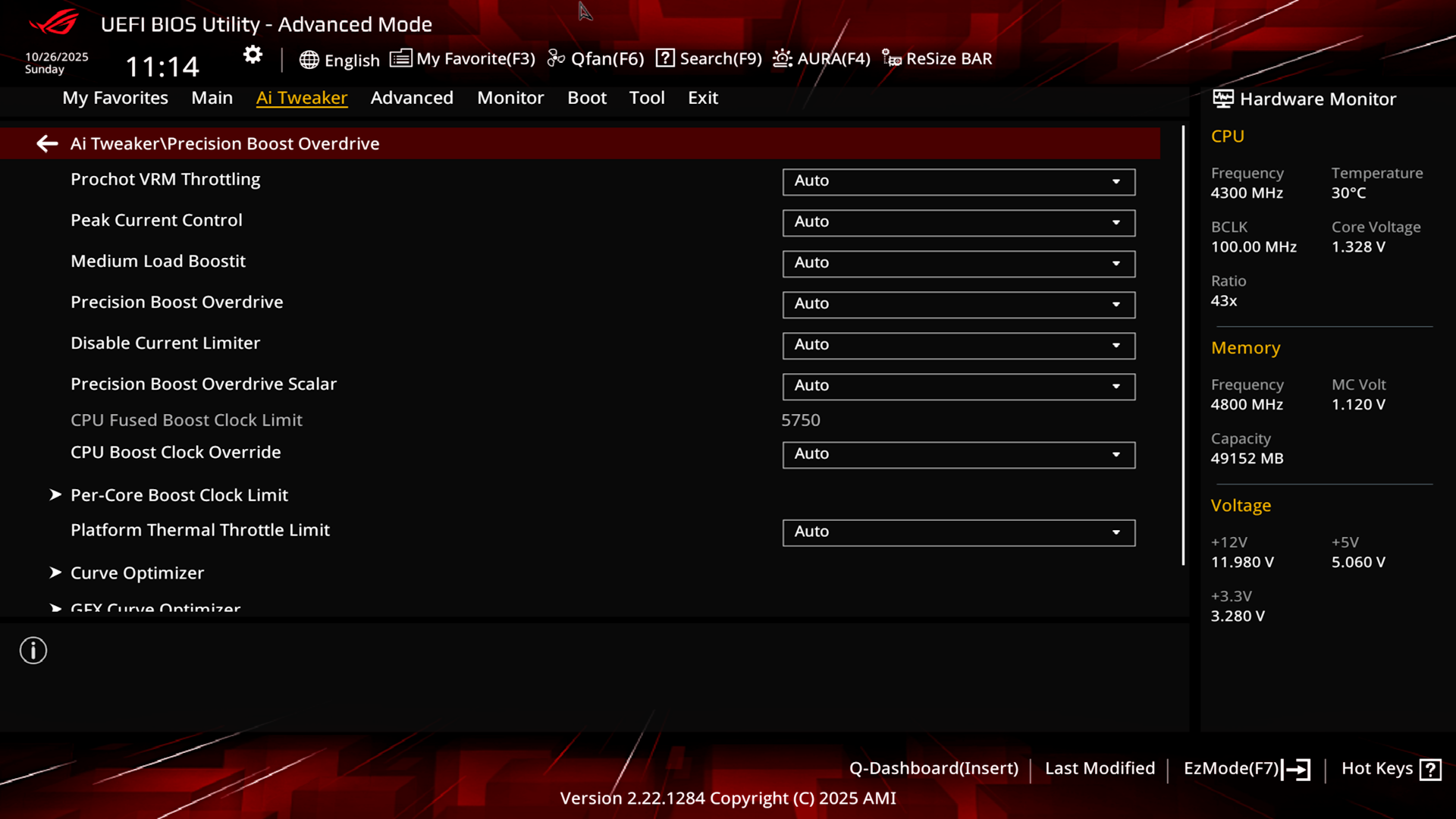 Режим керування EZ Mode реалізовано в рамках однієї сторінки. В ньому користувач може отримати стандартний звіт по ключових елементах системи, вказати системний час, обрати мову інтерфейсу, знайти потрібну опцію за пошуком, налаштувати AURA (система RGB), ResizeBAR, криву обертів вентиляторів, пустити в дію профілі AMD EXPO, у разі їх наявності, чи AEMP (ASUS Enhanced Memory Profile) для свого комплекту ОЗП, налаштувати RAID (доступна функціональність залежить від процесора), вказати пріоритет завантаження з мережі чи накопичувачів, а також викликати інтерфейс Q‑Dashboard. Автоматичний оверклокінг у цієї моделі відсутній, натомість пропонується форсування режиму PBO Enchancement (Precision Boost Overdrive), а це не є ексклюзивною функцією, вона доступна всюди через меню AMD Overclocking.