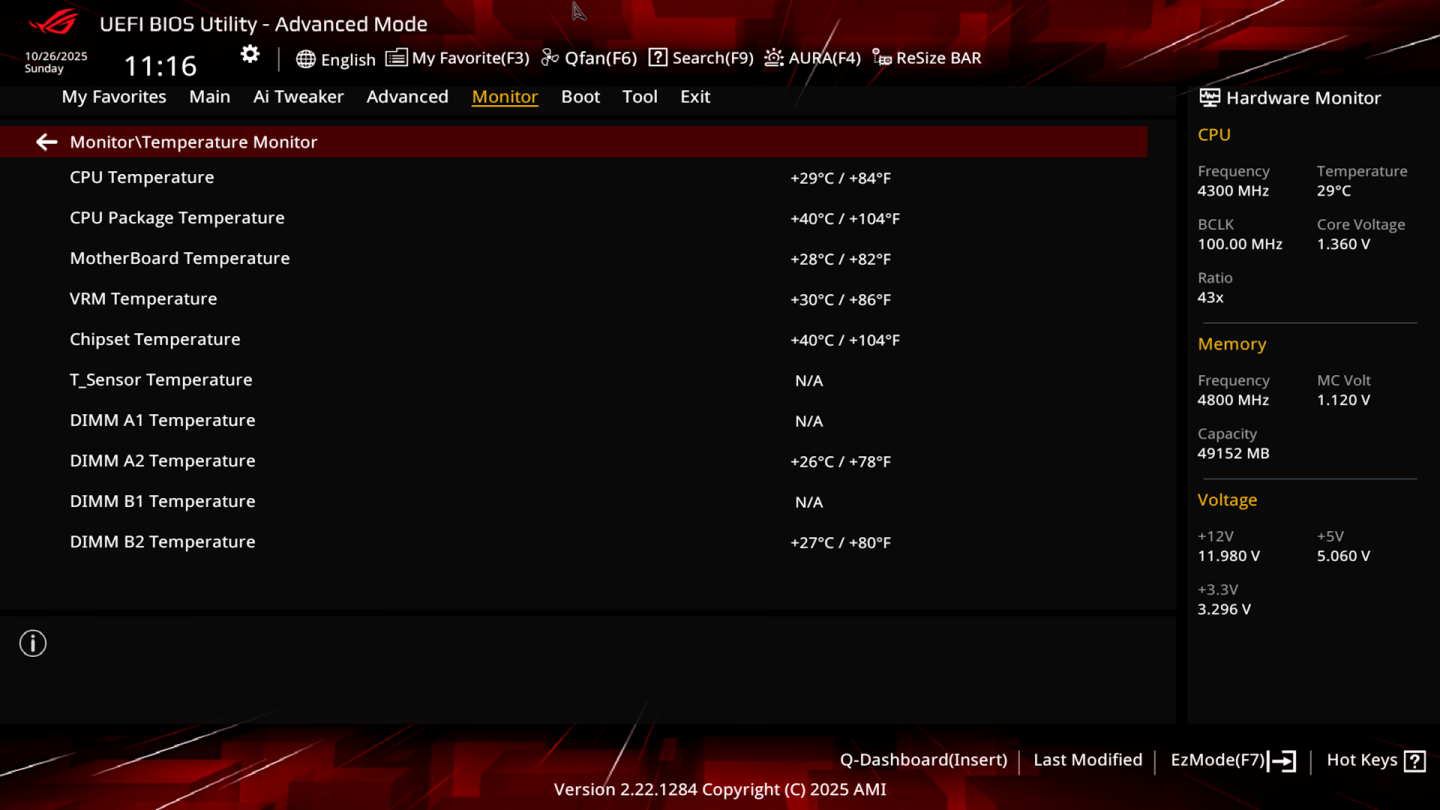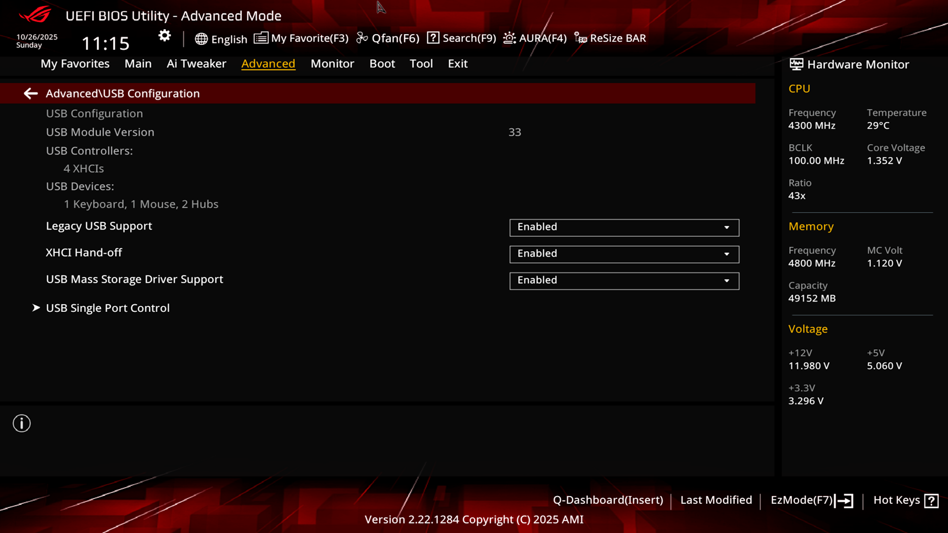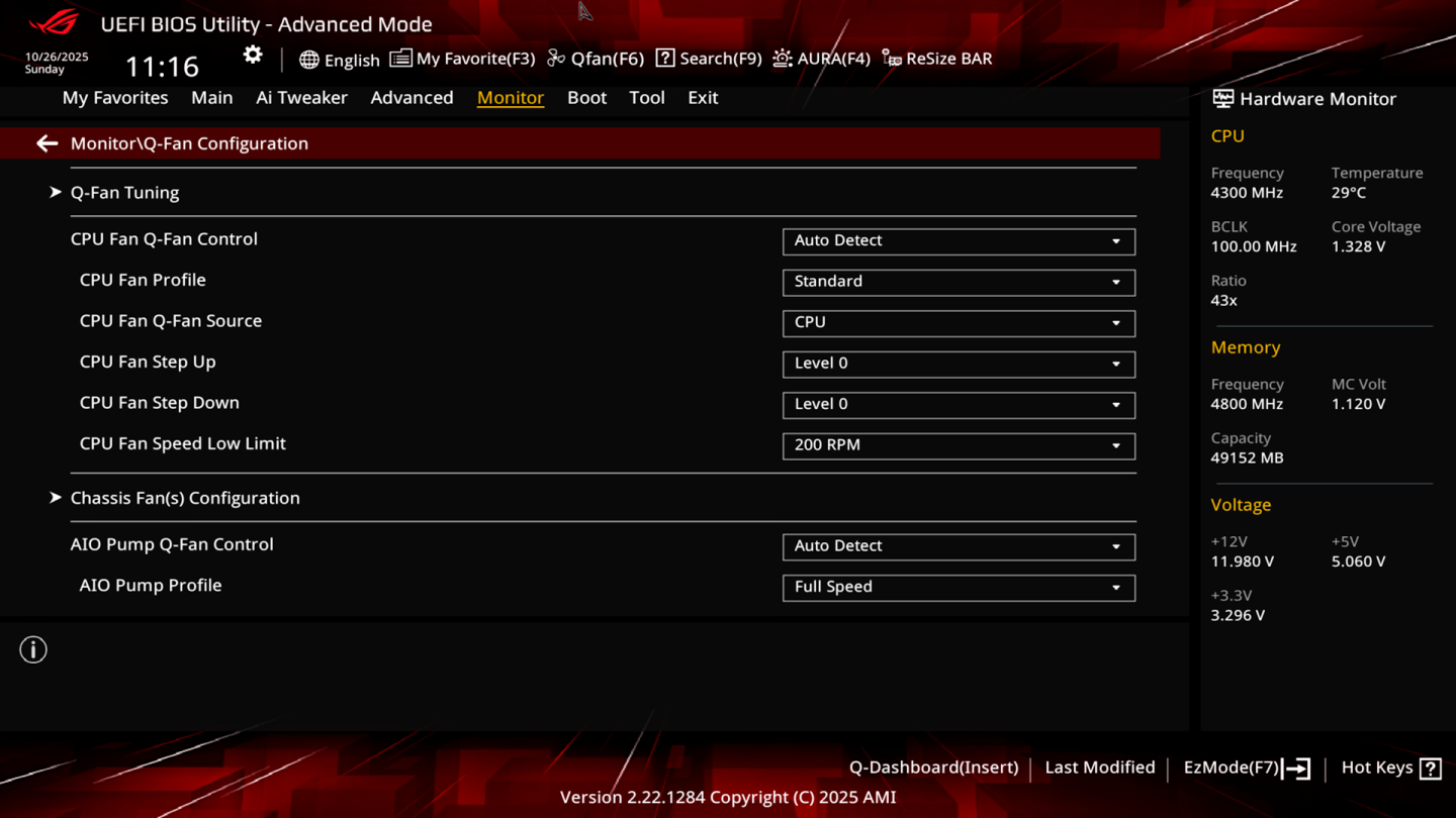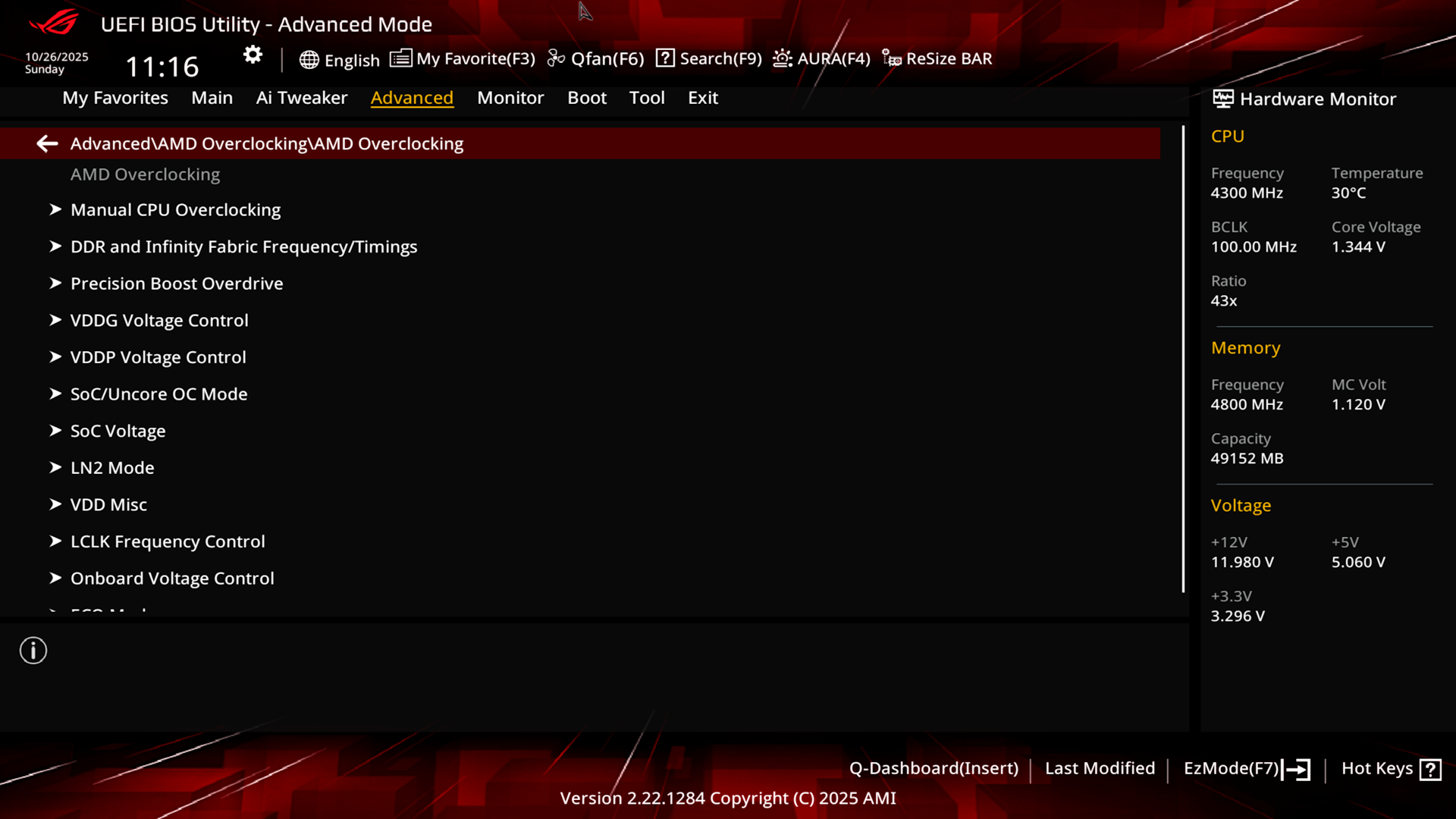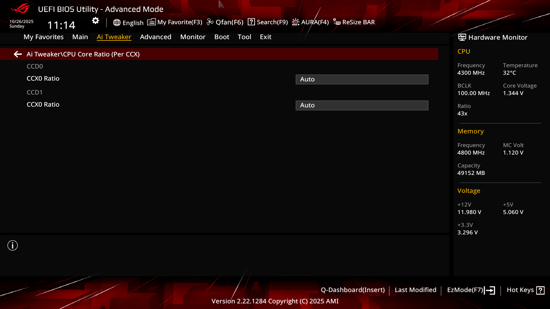 Режим керування EZ Mode реалізовано в рамках однієї сторінки. В ньому користувач може отримати стандартний звіт по ключових елементах системи, вказати системний час, обрати мову інтерфейсу, знайти потрібну опцію за пошуком, налаштувати AURA (система RGB), ResizeBAR, криву обертів вентиляторів, пустити в дію профілі AMD EXPO, у разі їх наявності, чи AEMP (ASUS Enhanced Memory Profile) для свого комплекту ОЗП, налаштувати RAID (доступна функціональність залежить від процесора), вказати пріоритет завантаження з мережі чи накопичувачів, а також викликати інтерфейс Q‑Dashboard. Автоматичний оверклокінг у цієї моделі відсутній, натомість пропонується форсування режиму PBO Enchancement (Precision Boost Overdrive), а це не є ексклюзивною функцією, вона доступна всюди через меню AMD Overclocking.
