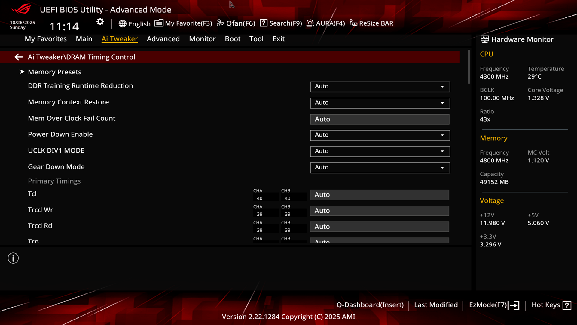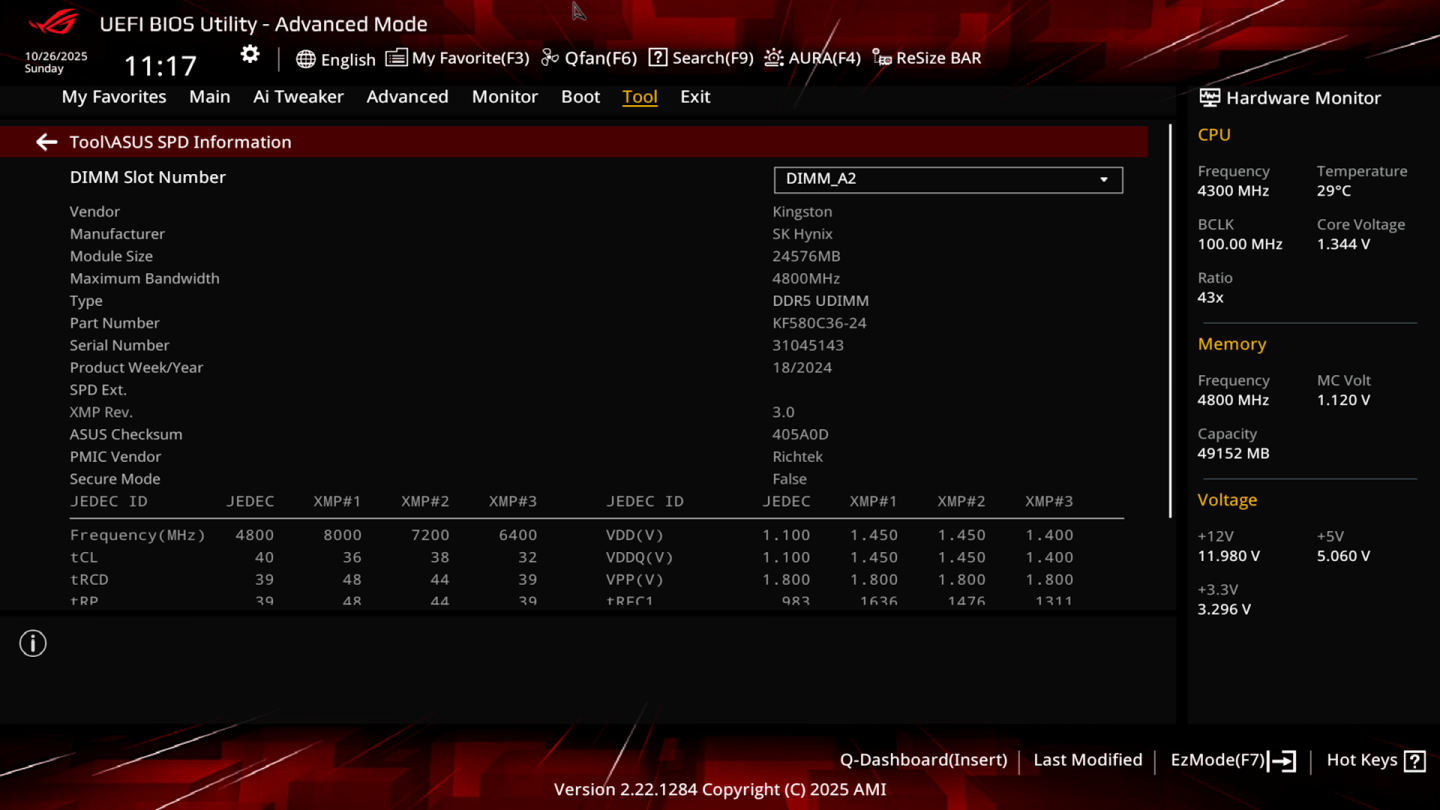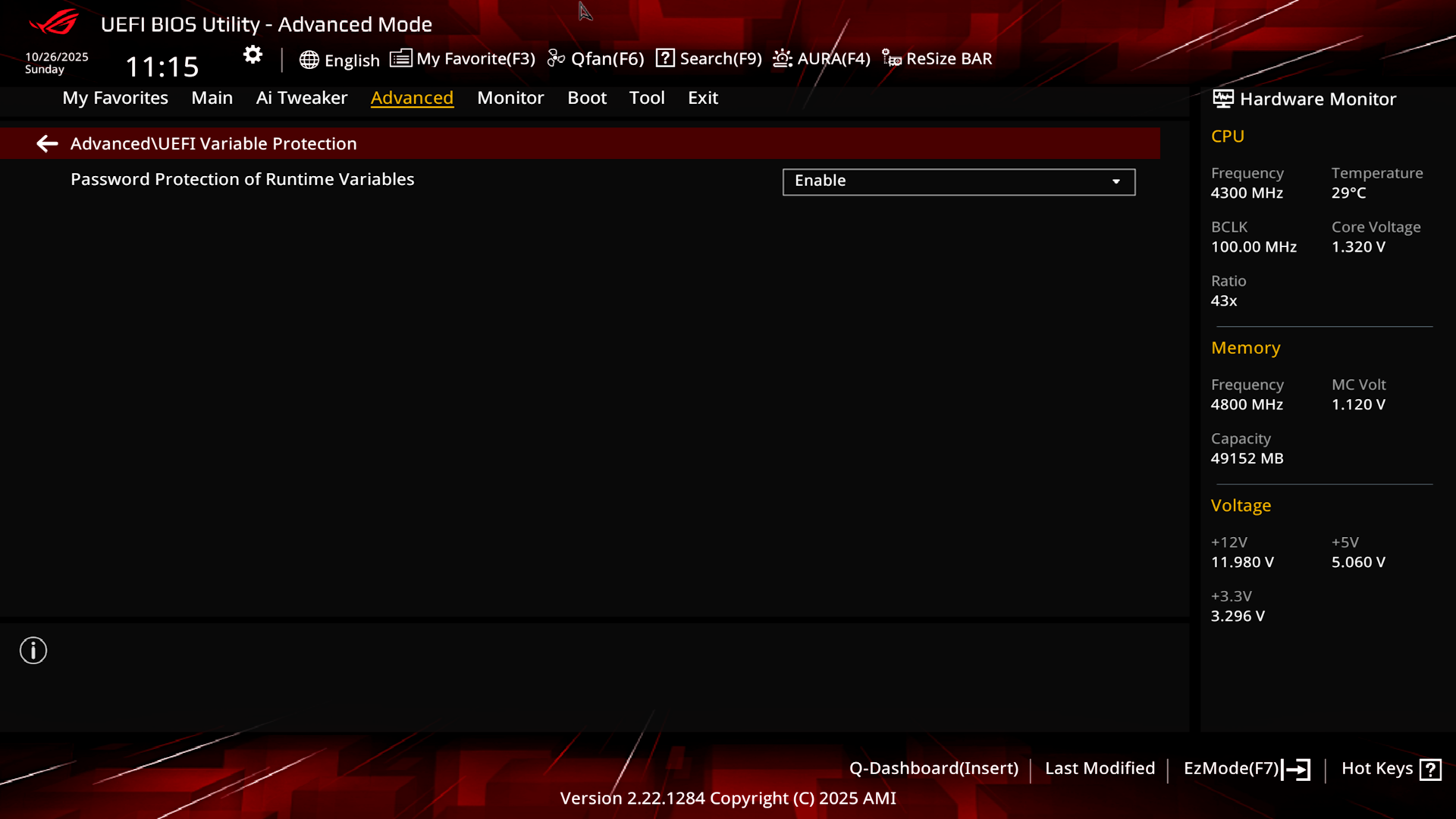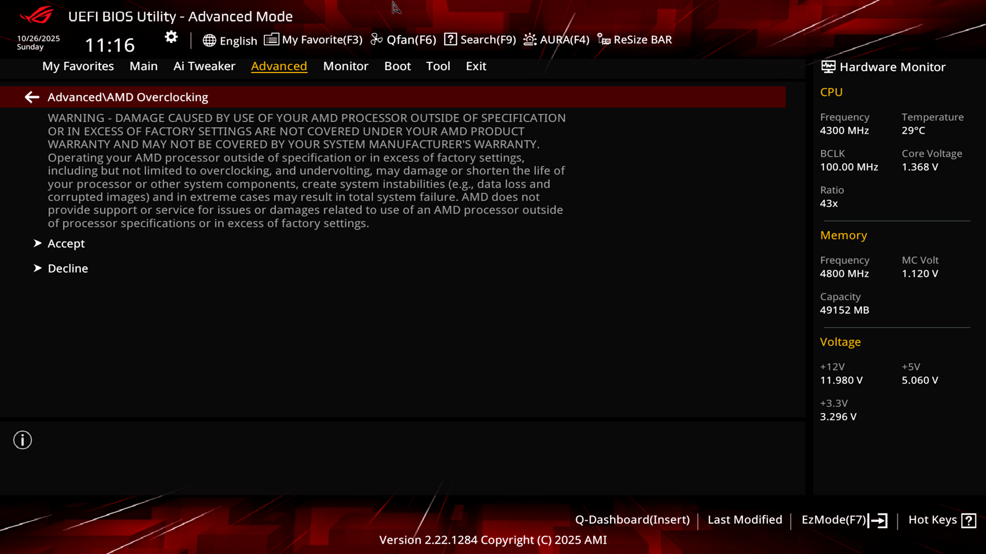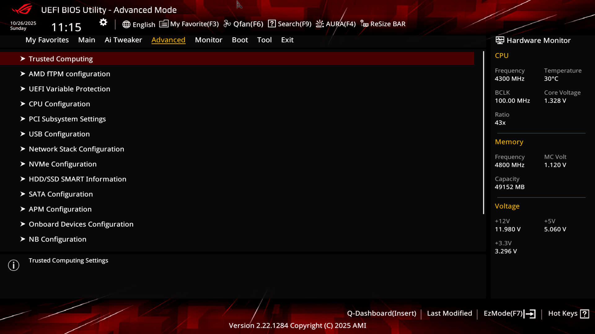 Режим керування EZ Mode реалізовано в рамках однієї сторінки. В ньому користувач може отримати стандартний звіт по ключових елементах системи, вказати системний час, обрати мову інтерфейсу, знайти потрібну опцію за пошуком, налаштувати AURA (система RGB), ResizeBAR, криву обертів вентиляторів, пустити в дію профілі AMD EXPO, у разі їх наявності, чи AEMP (ASUS Enhanced Memory Profile) для свого комплекту ОЗП, налаштувати RAID (доступна функціональність залежить від процесора), вказати пріоритет завантаження з мережі чи накопичувачів, а також викликати інтерфейс Q‑Dashboard. Автоматичний оверклокінг у цієї моделі відсутній, натомість пропонується форсування режиму PBO Enchancement (Precision Boost Overdrive), а це не є ексклюзивною функцією, вона доступна всюди через меню AMD Overclocking.