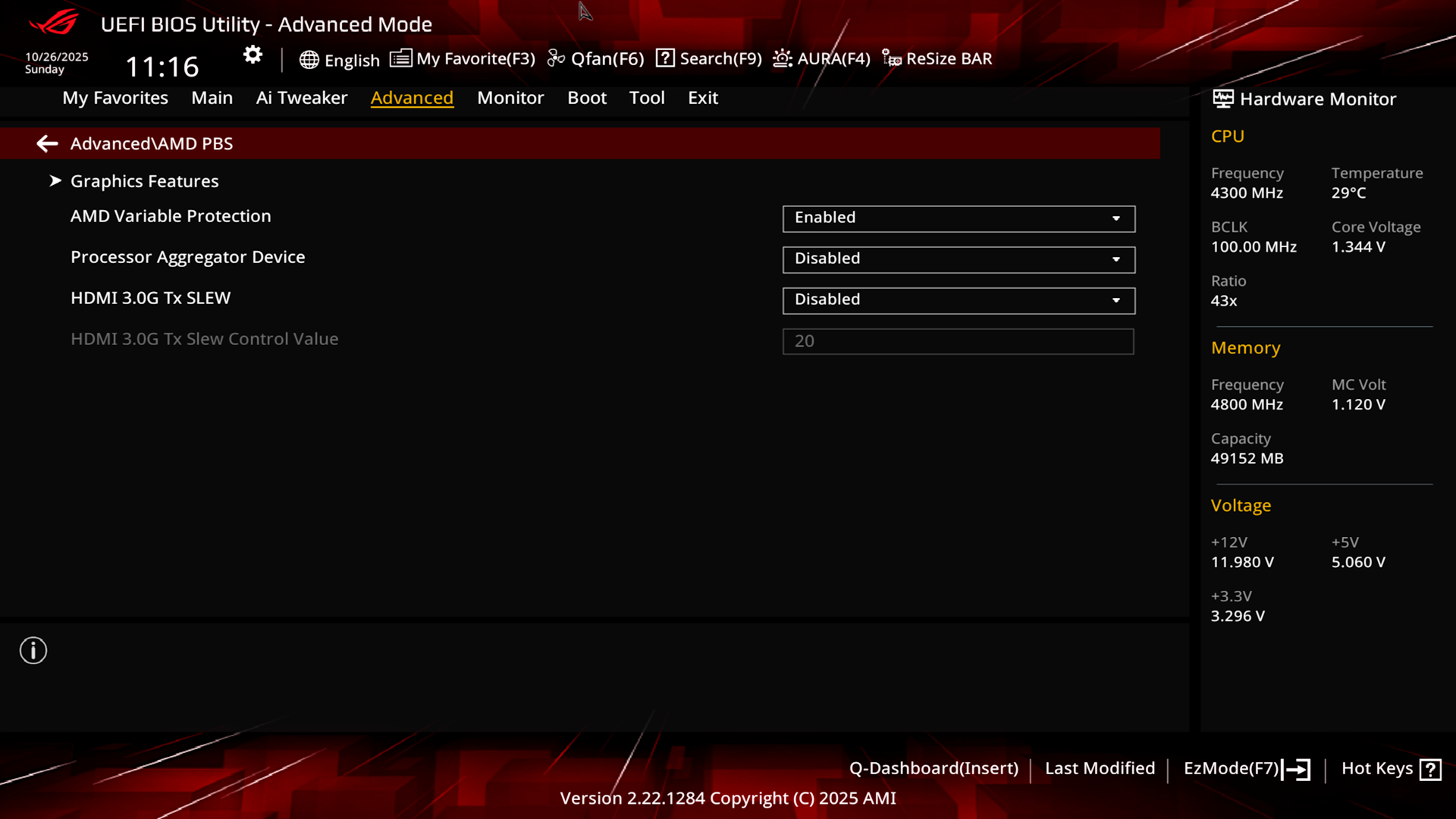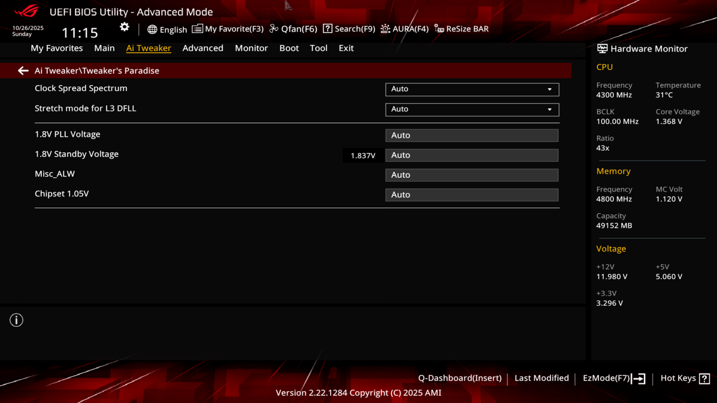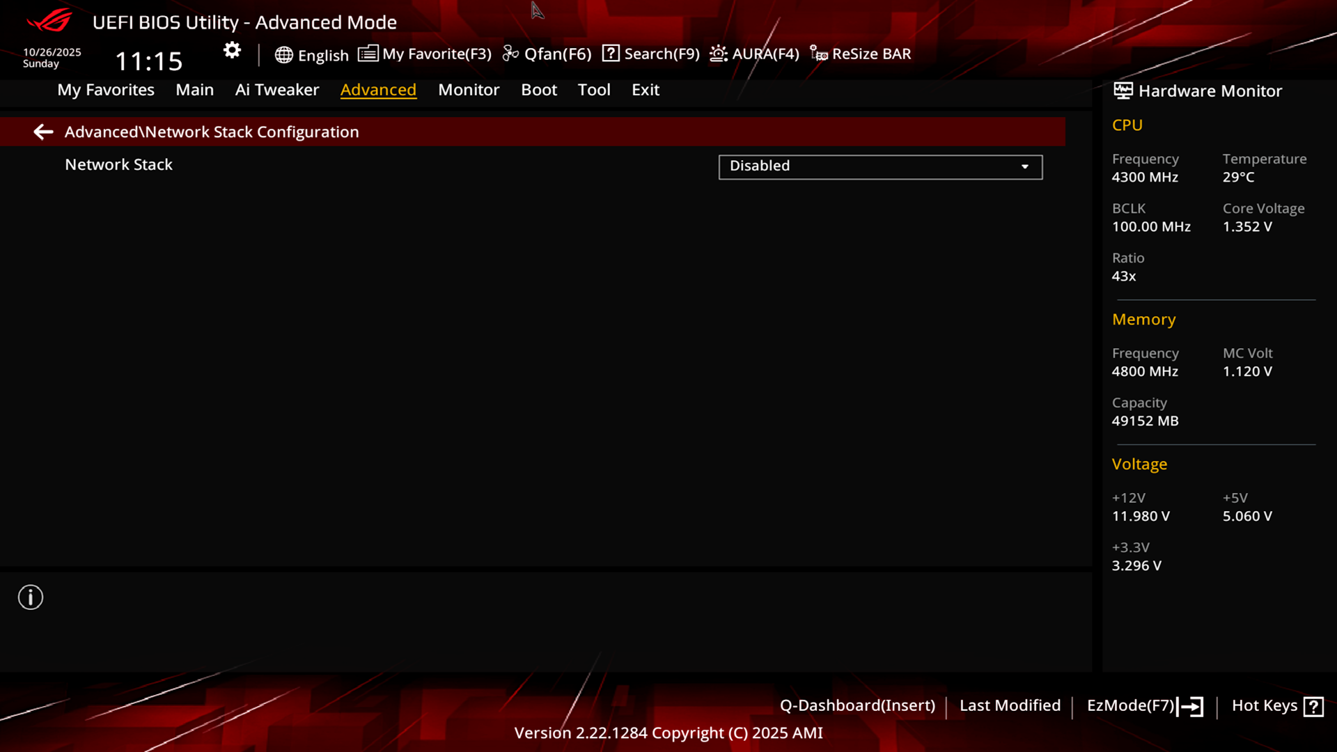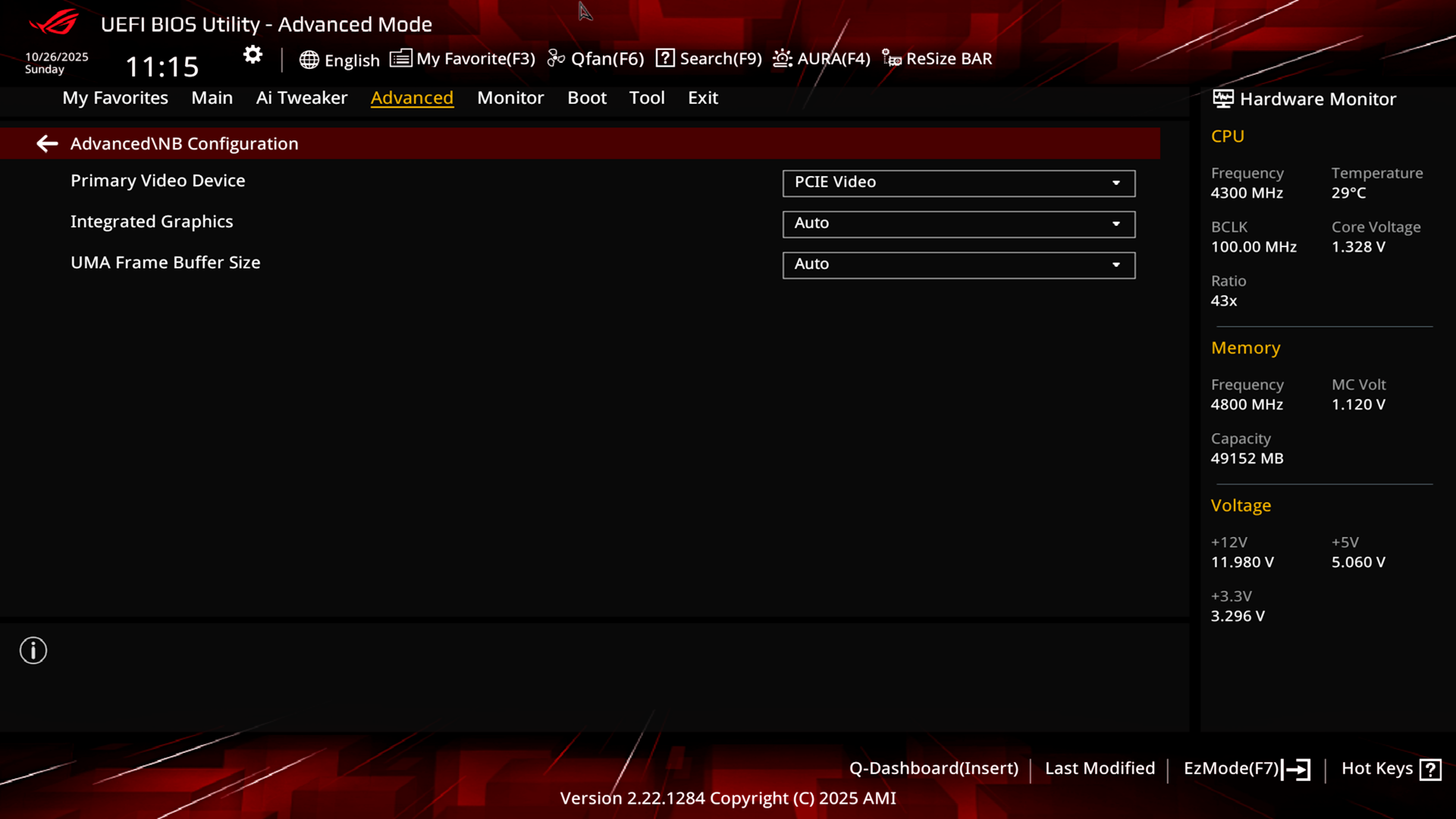 Режим керування EZ Mode реалізовано в рамках однієї сторінки. В ньому користувач може отримати стандартний звіт по ключових елементах системи, вказати системний час, обрати мову інтерфейсу, знайти потрібну опцію за пошуком, налаштувати AURA (система RGB), ResizeBAR, криву обертів вентиляторів, пустити в дію профілі AMD EXPO, у разі їх наявності, чи AEMP (ASUS Enhanced Memory Profile) для свого комплекту ОЗП, налаштувати RAID (доступна функціональність залежить від процесора), вказати пріоритет завантаження з мережі чи накопичувачів, а також викликати інтерфейс Q‑Dashboard. Автоматичний оверклокінг у цієї моделі відсутній, натомість пропонується форсування режиму PBO Enchancement (Precision Boost Overdrive), а це не є ексклюзивною функцією, вона доступна всюди через меню AMD Overclocking.