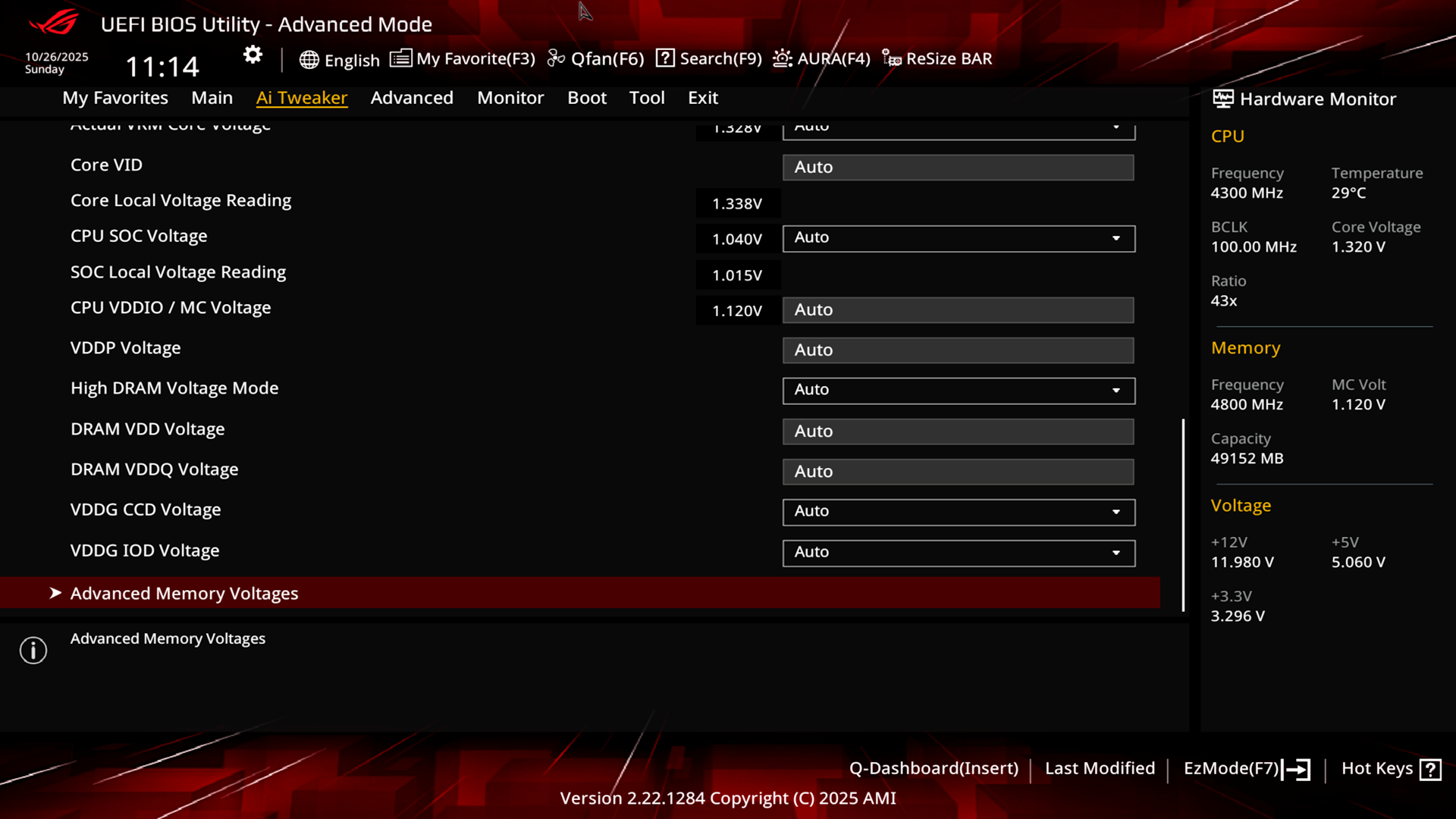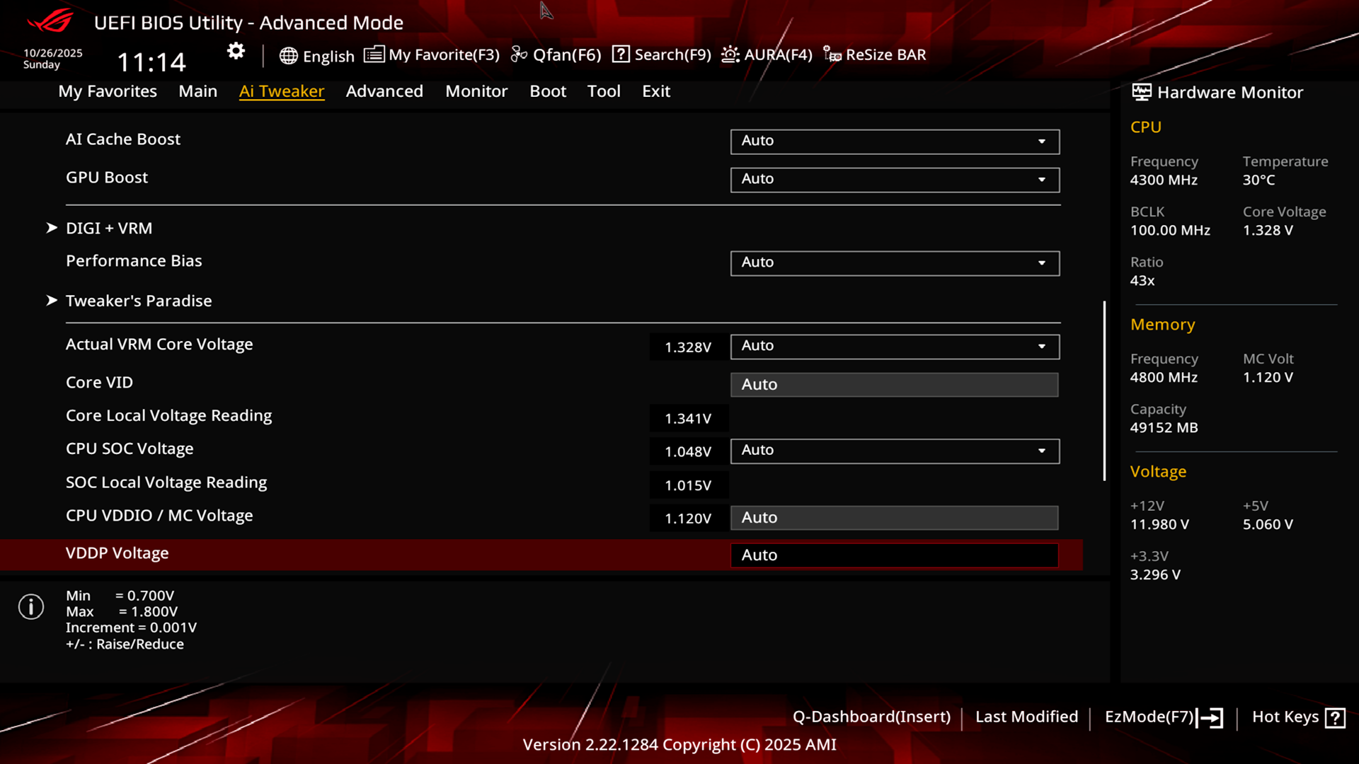 | CPU VDDIO / MC Voltage (V) | 1,1–2 | 0,01 |