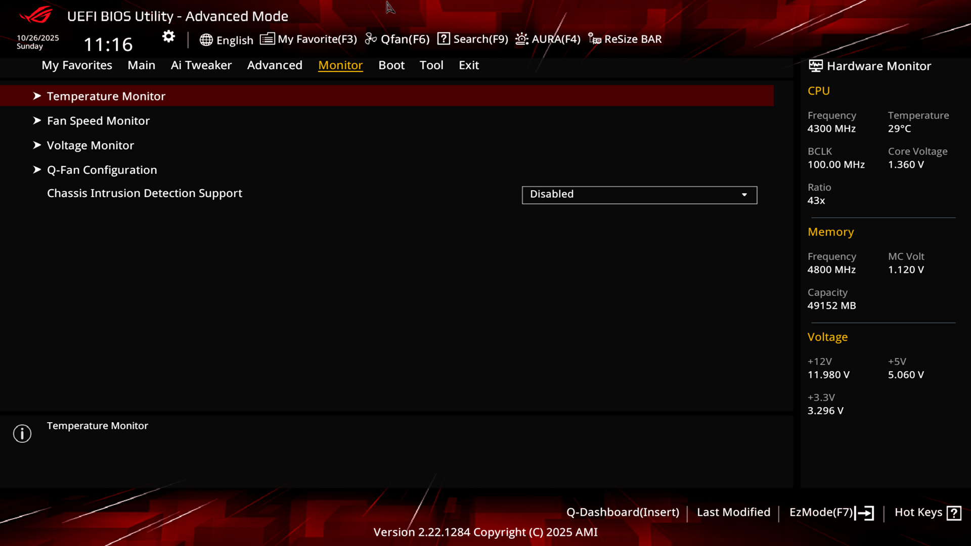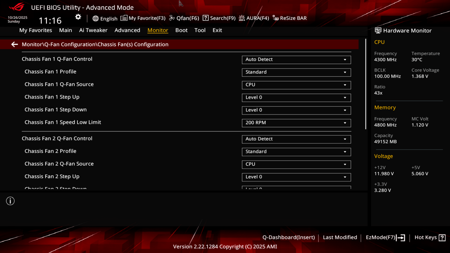 Вкладка Monitor: тут зібрано до купи всі показники температур, напруг, обертів вентиляторів. Присутнє керування системними вентиляторами та їх алгоритмами роботи.