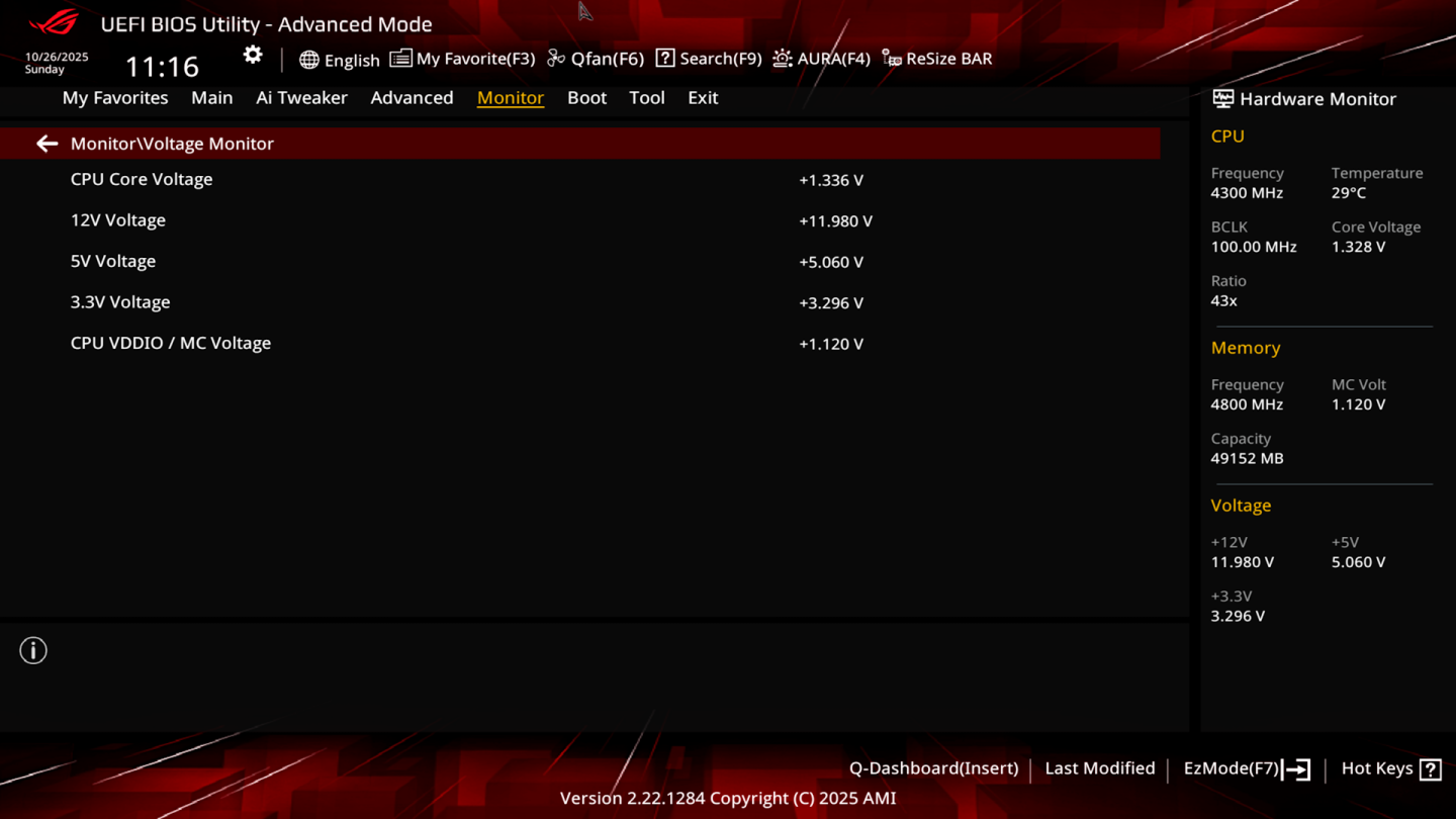 | CPU Core Voltage (V) | 0,8–1,55 | 0,005 |