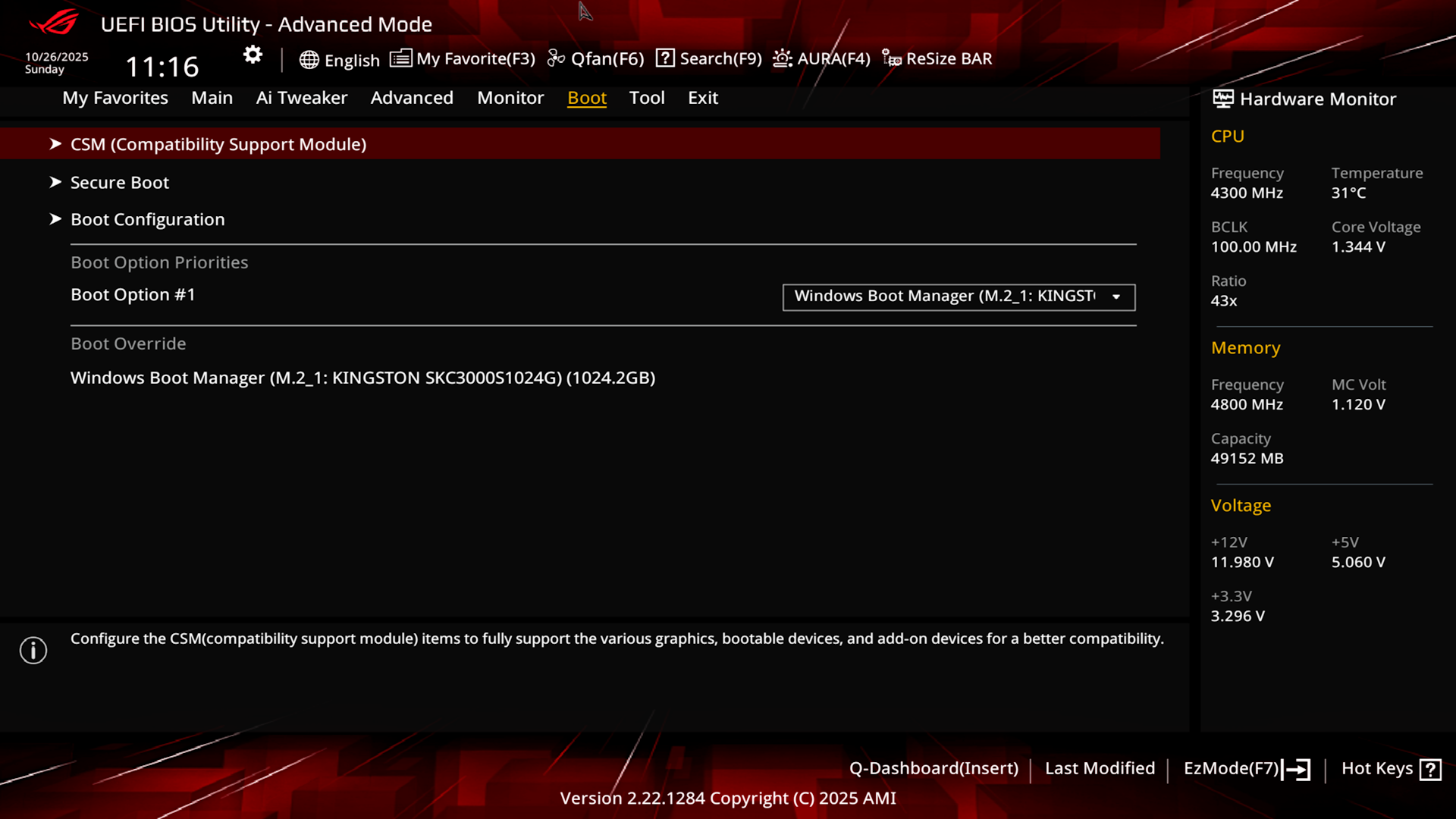 Вкладка Boot: органи керування загальним процесом старту системи, CSM, Secured Boot, а також пріоритету завантаження з накопичувачів чи мережі.