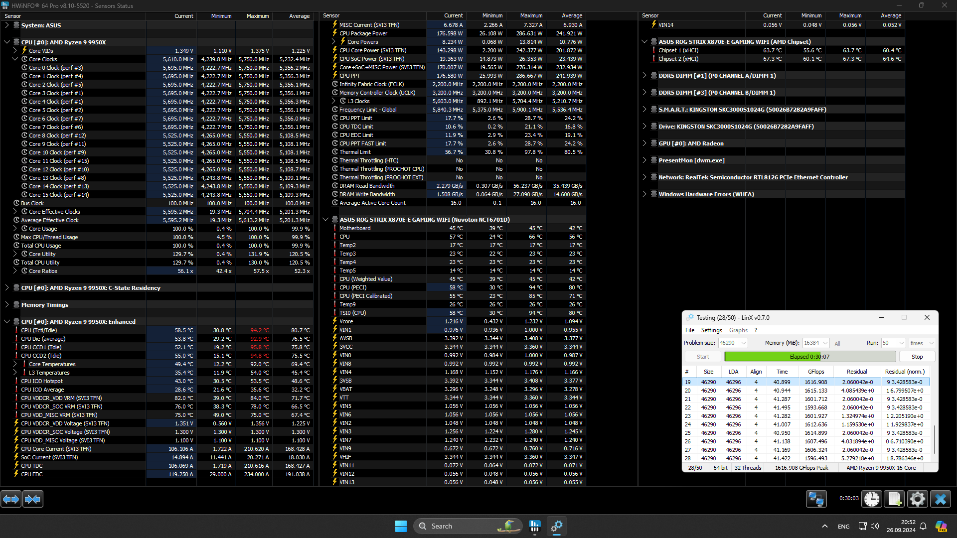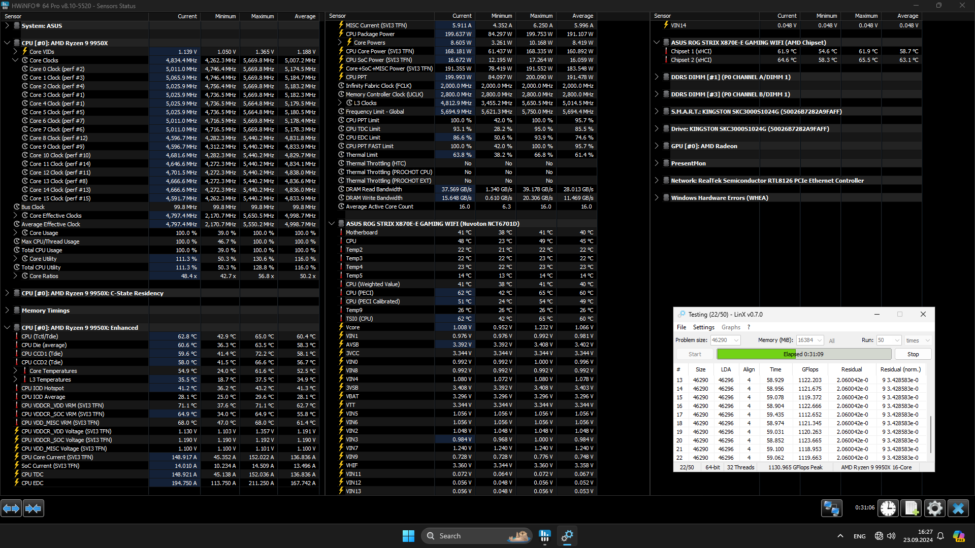 - материнська плата: ASUS ROG Strix X870E-E Gaming WiFi (UEFI 0501, AGESA 1.2.0.2);