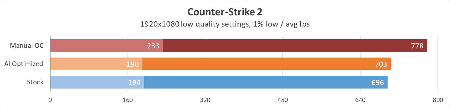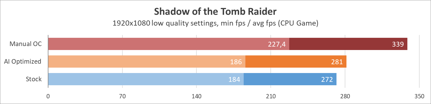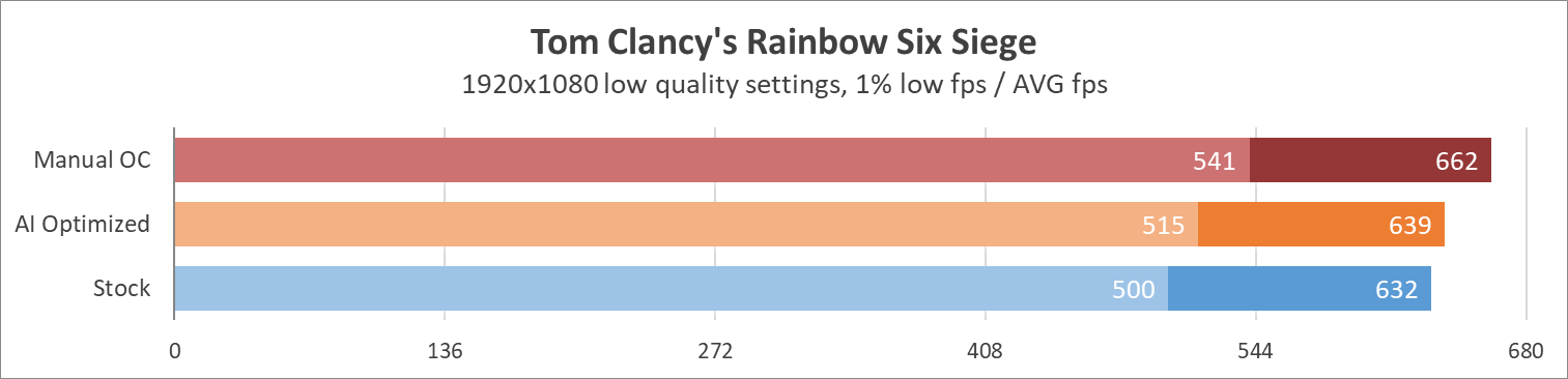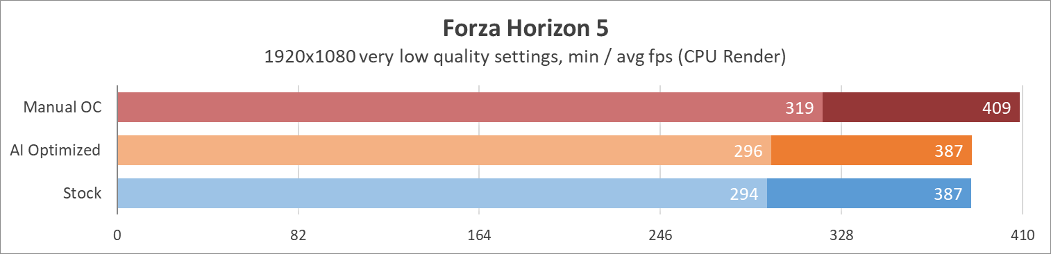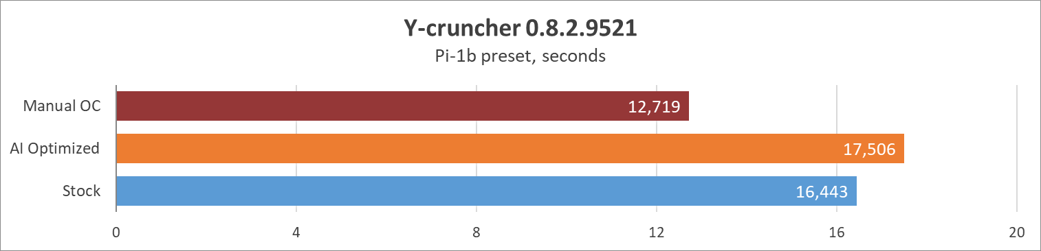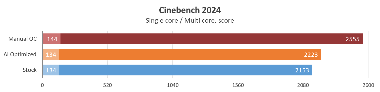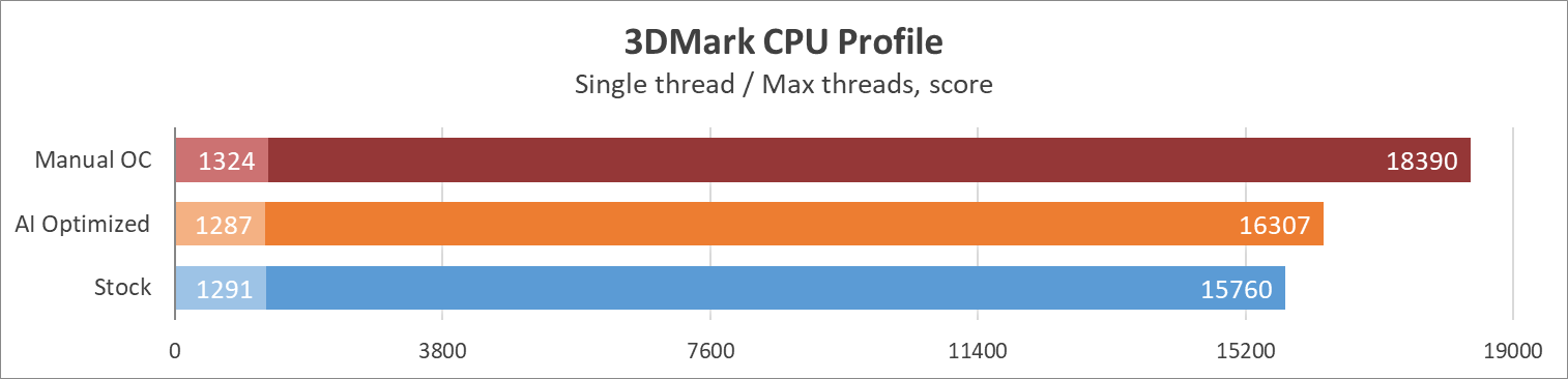 В навантаженні в режимі автоматичного оверклокінгу AI Optimized плата утримувала всі ядра на середній частоті вже 5247,4 МГц, а максимальне прискорення одного ядра склало 5714,7 МГц.