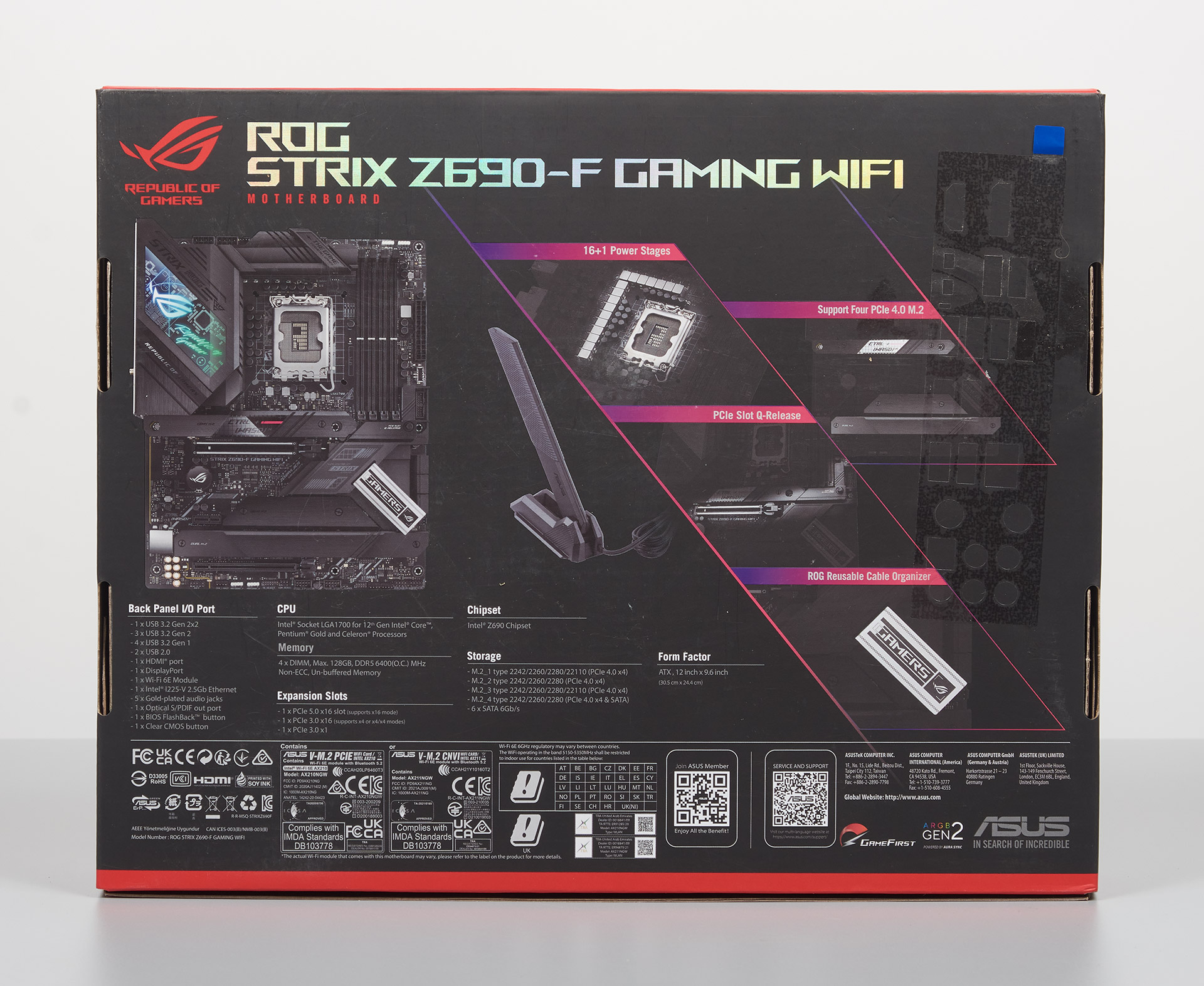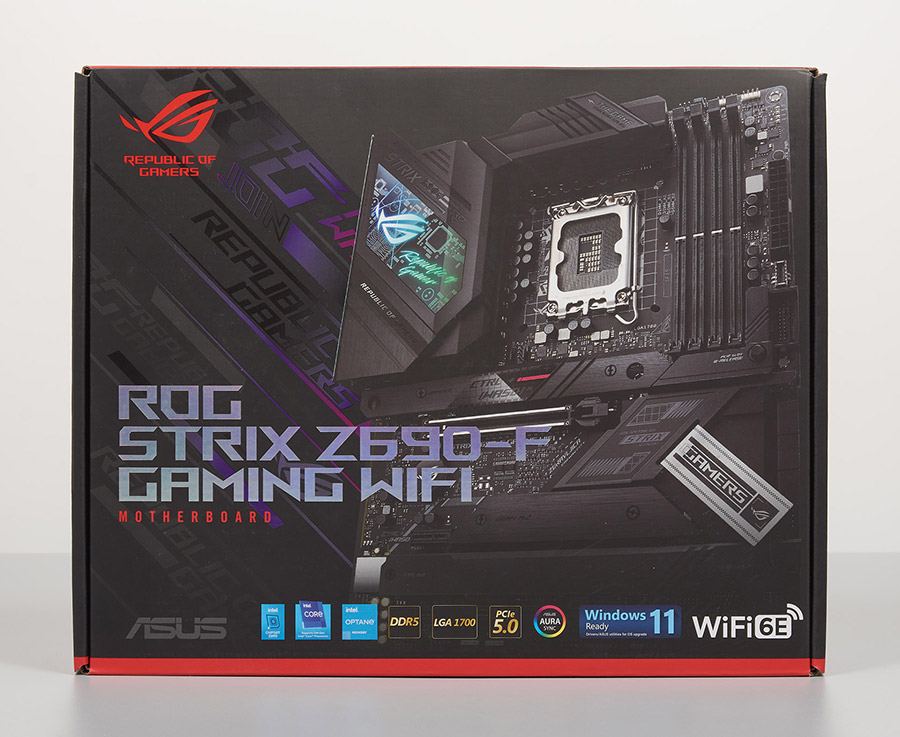Материнська плата ROG Strix Z690-F Gaming WIFI постачається у картонній коробці середніх розмірів.