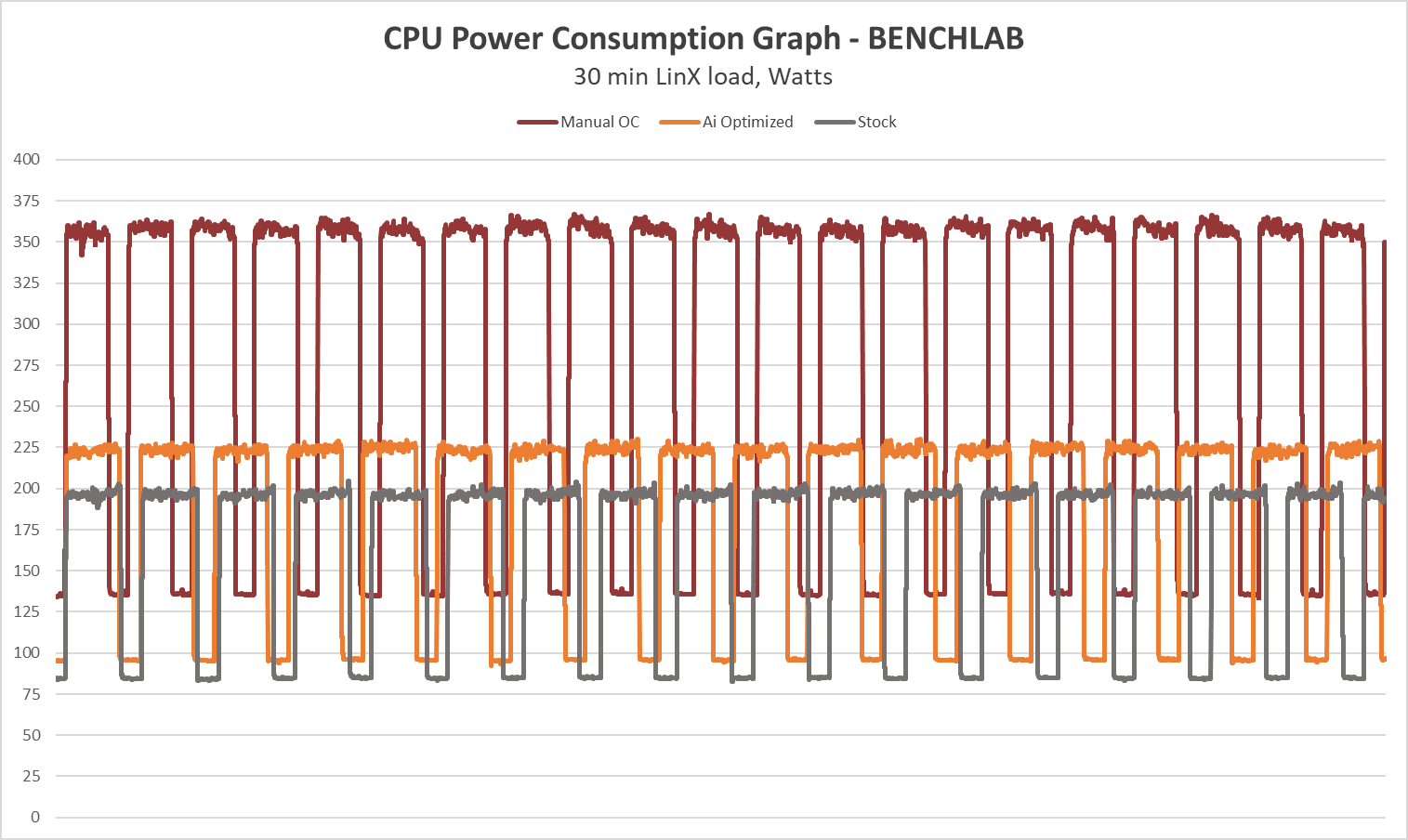 Температура в приміщенні утримувалась на рівні 20 градусів за Цельсієм. Вимір енергоспоживання процесора відбувався через прямий замір EPS12V за допомогою BENCHLAB (опитування датчика кожні 100 мс). Вимір температури фіксувався за програмними датчиками HWINFO, а також з термофото, що було виконано тепловою камерою UNI-T RX-600. Тест являв собою забіг 30 хвилин LinX 0.7.0 (problem size 46290). Кожен бенчмарк запускався п'ять разів, у результатах зазначено середнє арифметичне. Ігри тестувались на заводських пресетах мінімальної якості в стандартних бенчмарках. Counter-Strike 2 тестувався на мапі майстерні CS2 FPS BENCHMARK.