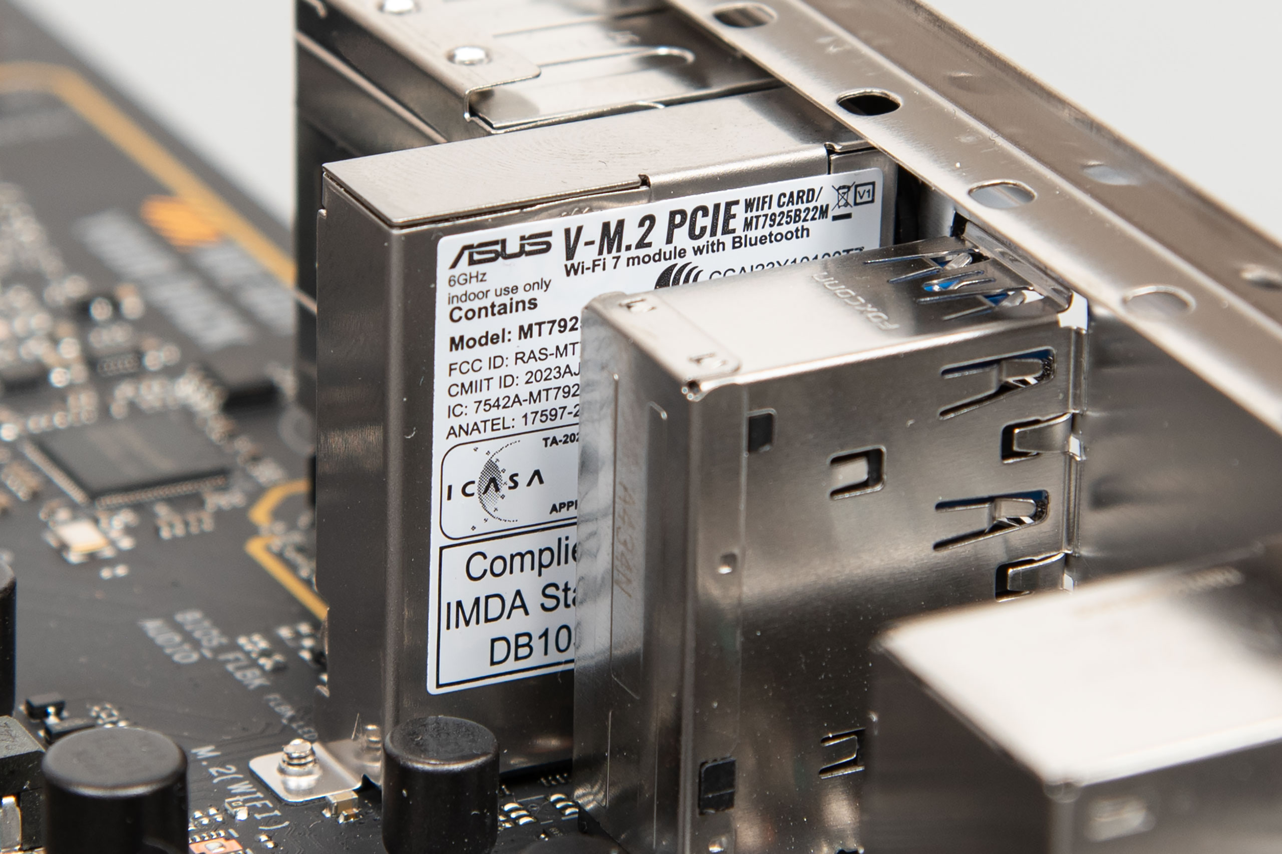 Дротове підключення Ethernet 2.5G обслуговується мережевою картою Realtek RTL8125. Робота Wi-Fi забезпечується типовим модулем M.2 з Key E, який несе в собі MediaTek MT7925. Він також підтримує Bluetooth 5.4.
