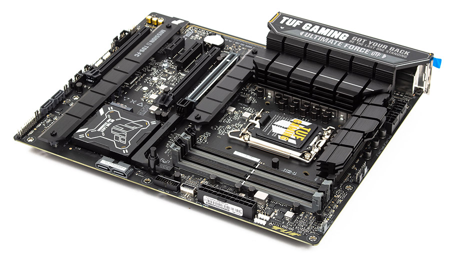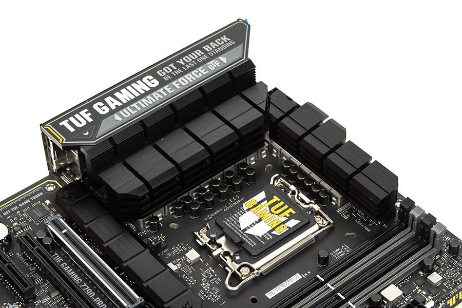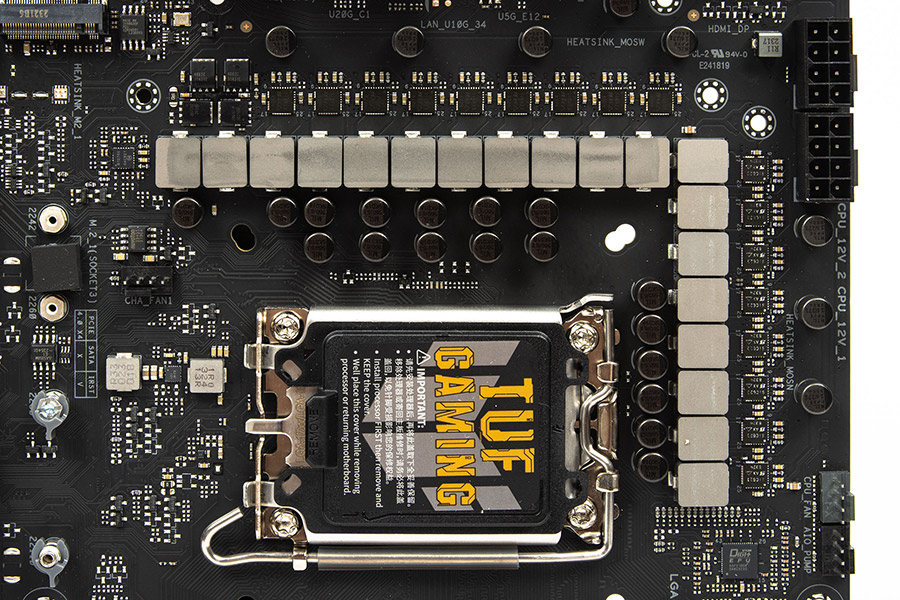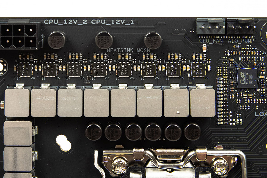 Слоти оперативної пам’яті споряджені засувками тільки з однієї сторони. Охолодженням VRM займаються два радіатори, що кріпляться на гвинти й контактують через термопрокладки з силовими елементами підсистеми живлення процесора. Сокет стандартний і нічим не примітний.
