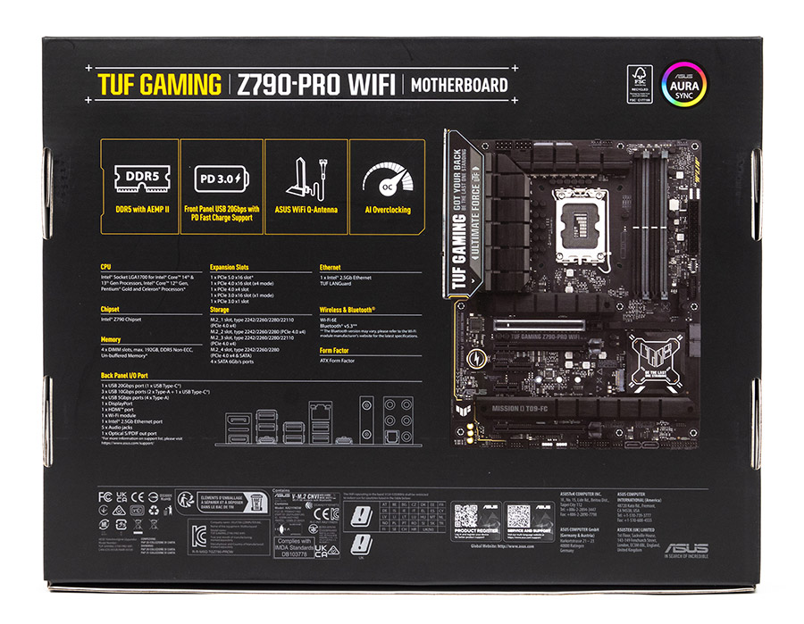 | Додаткові функції | ASUS TUF PROTECTION, Q-Design, Thermal Solution, EZ DIY, AURA Sync, Front Panel USB 20Gbps with PD Fast Charge Support |