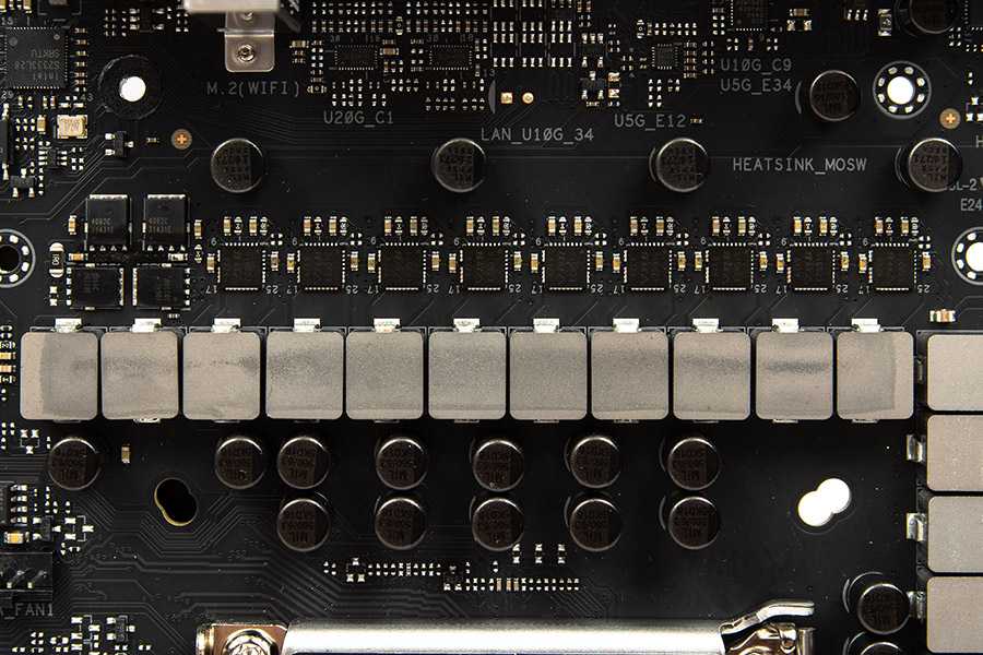 VRM має 18 фаз (16+1+1). Процесорна група керується ШІМ-контролером Digi+ ASP2100R. Використовуються силові елементи Vishay SiC623, які розраховані на 60 А. Одна з них виділена для AUX (всього їх 17).