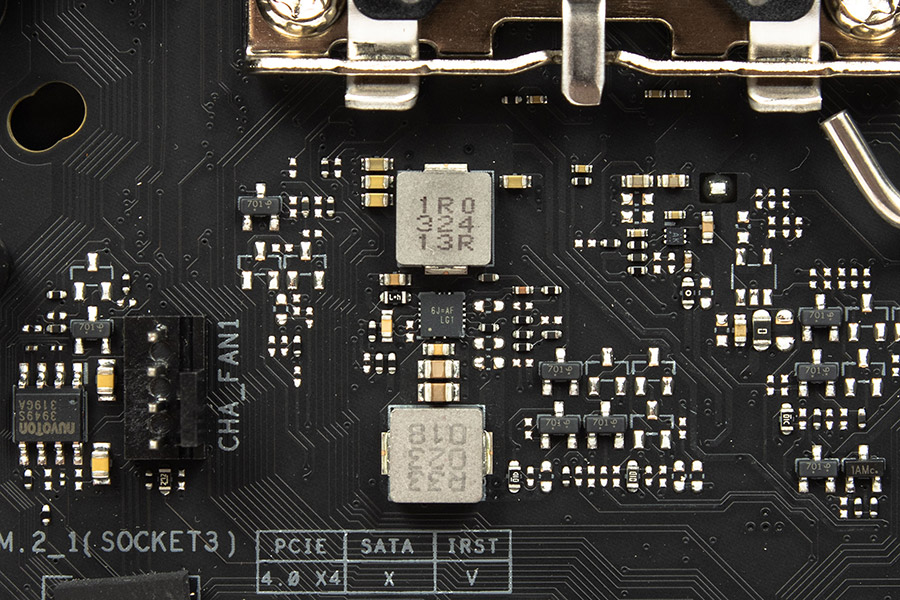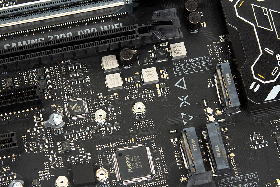 - M.2_3 працює на швидкості PCI-E 4.0 x4. Сумісний з розмірами 2242/2260/2280 (Key M), є підтримка M.2 SATA. Під'єднано до чипсета.