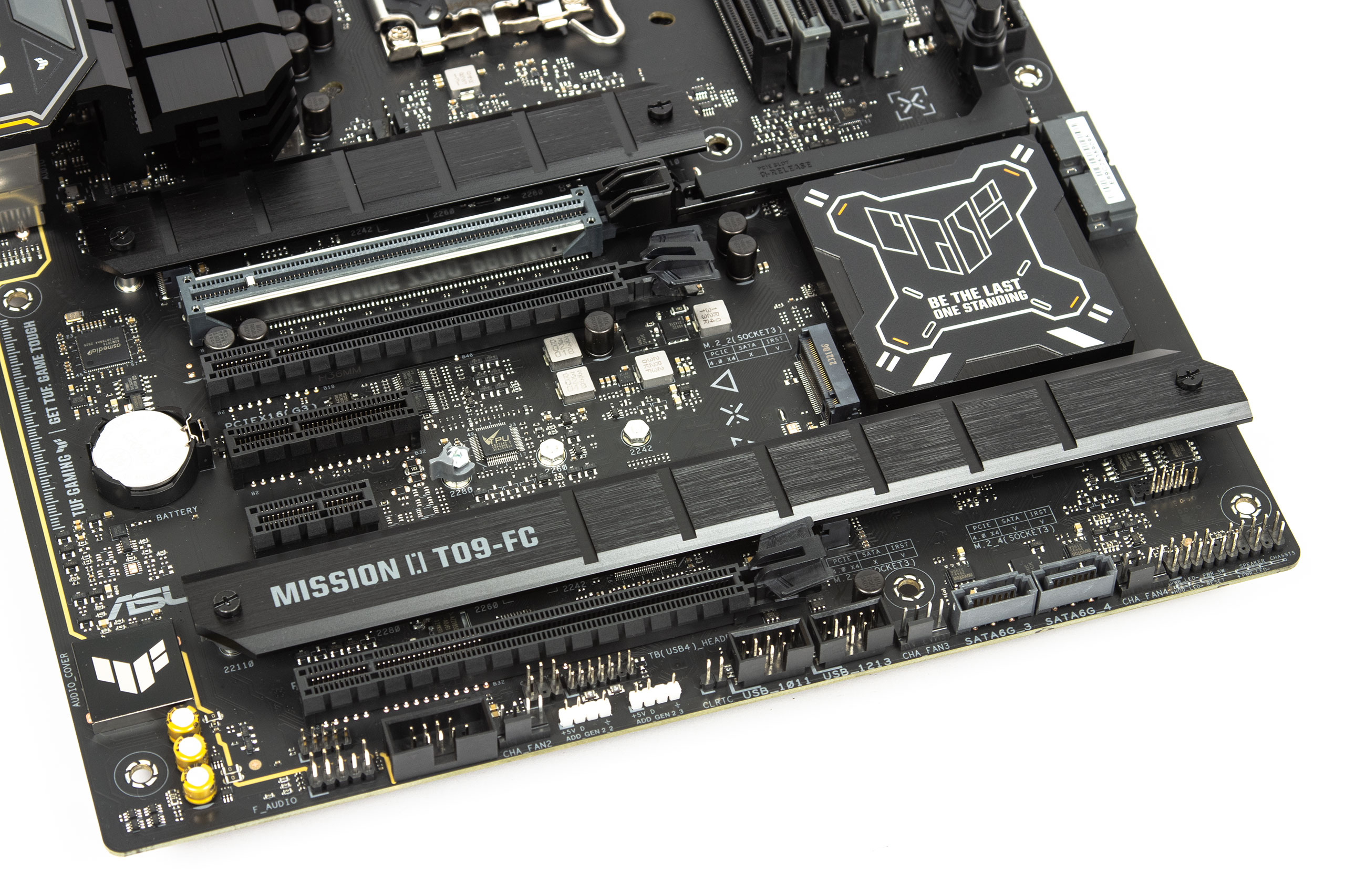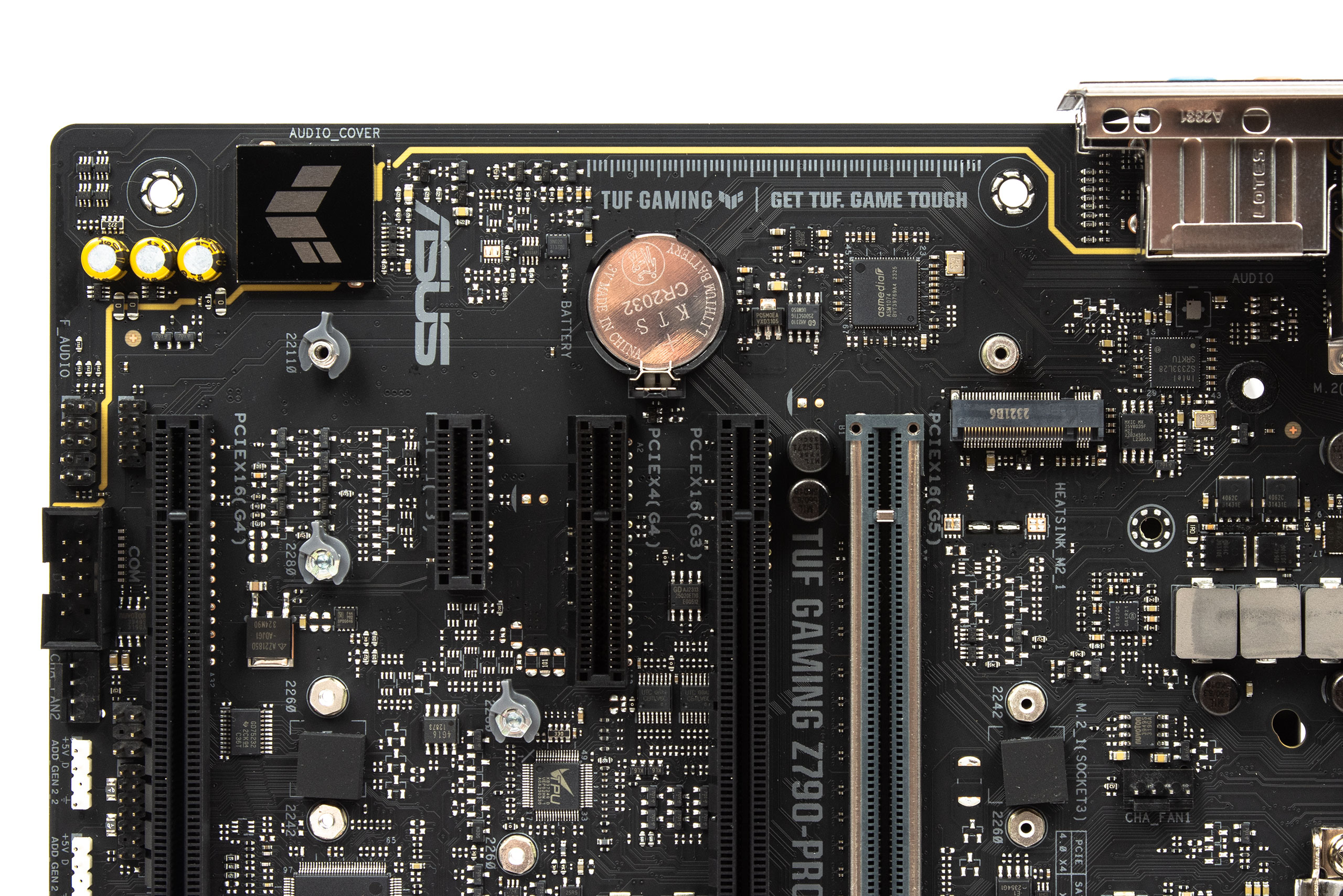 Батарейка CMOS знаходиться праворуч слоту PCI-E x4, збереже пряму доступність при використанні двослотових чи менших відеокарт. Більші екземпляри повністю накриють її. Типовий конектор корпусного вентилятора біля зони I/O зміщено ближче до сокета.