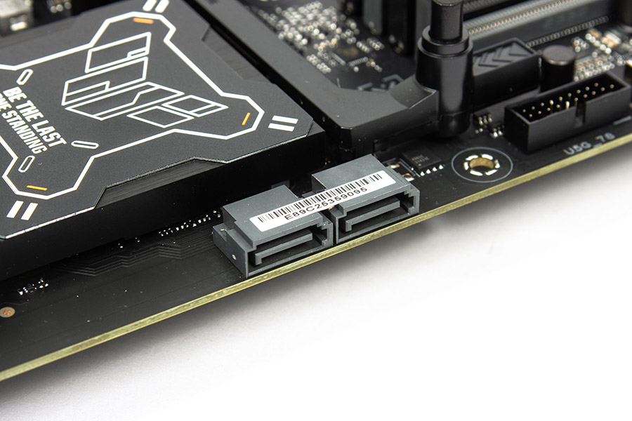 Трохи вище з правого боку виведено два порти SATA під кутом 90 градусів.