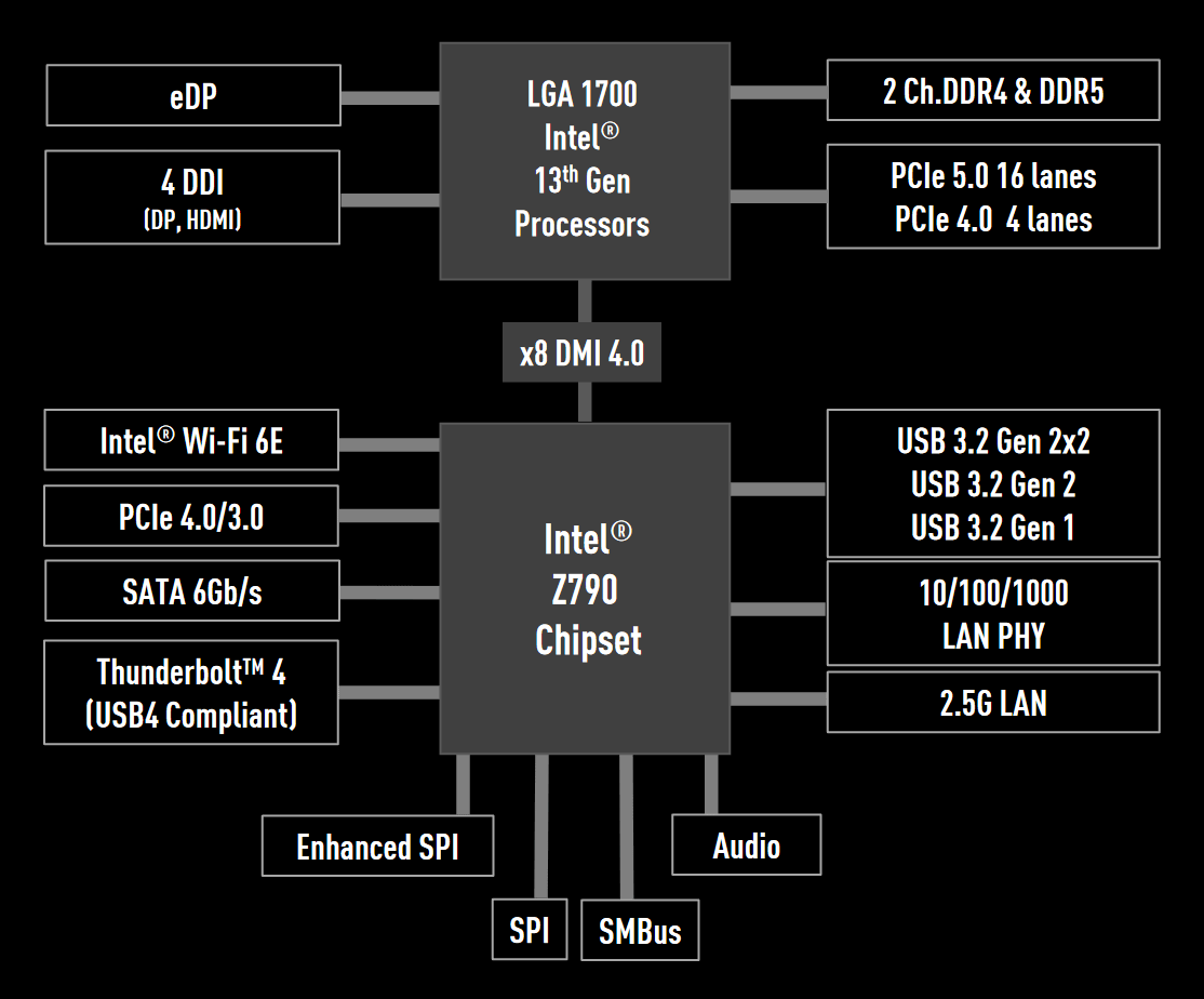 З кожною новою серією процесорів компанія Intel пропонує черговий чипсет, який має невеличкі зміни відносно старої модифікації. Цього разу для платформи LGA1700 була представлена системна логіка Z790, яка підтримує Core 13 покоління та пам’ять DDR5-5600 замість DDR5-4800 у Z690.