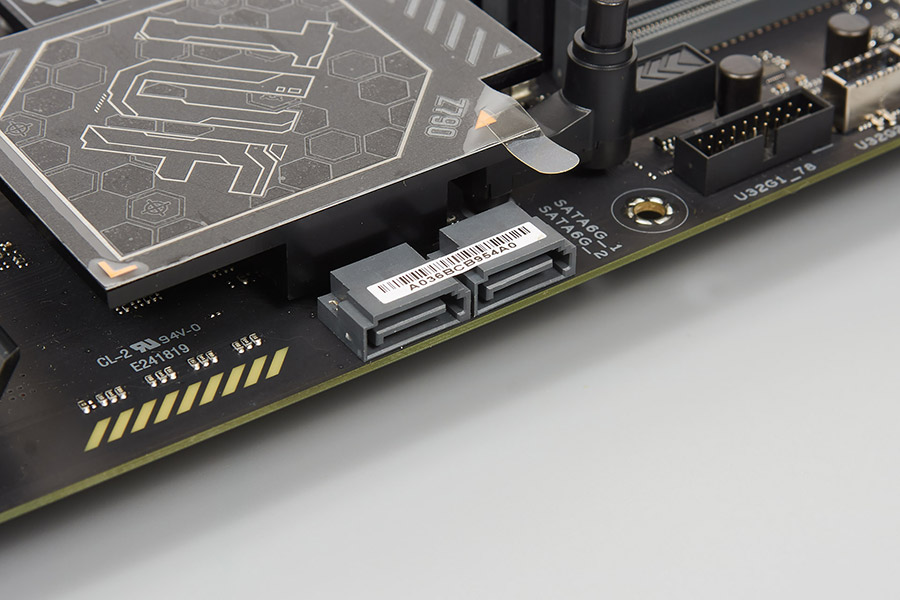 Для підключення SATA-накопичувачів є чотири порти, причому, два горизонтальних стоять на боці плати, а два, вже вертикальних, розташовані на нижньому краю.