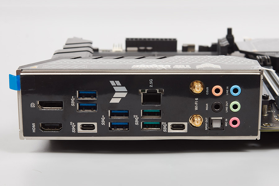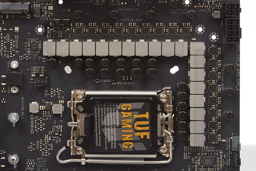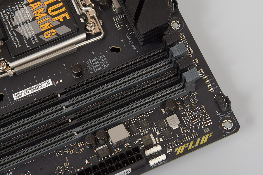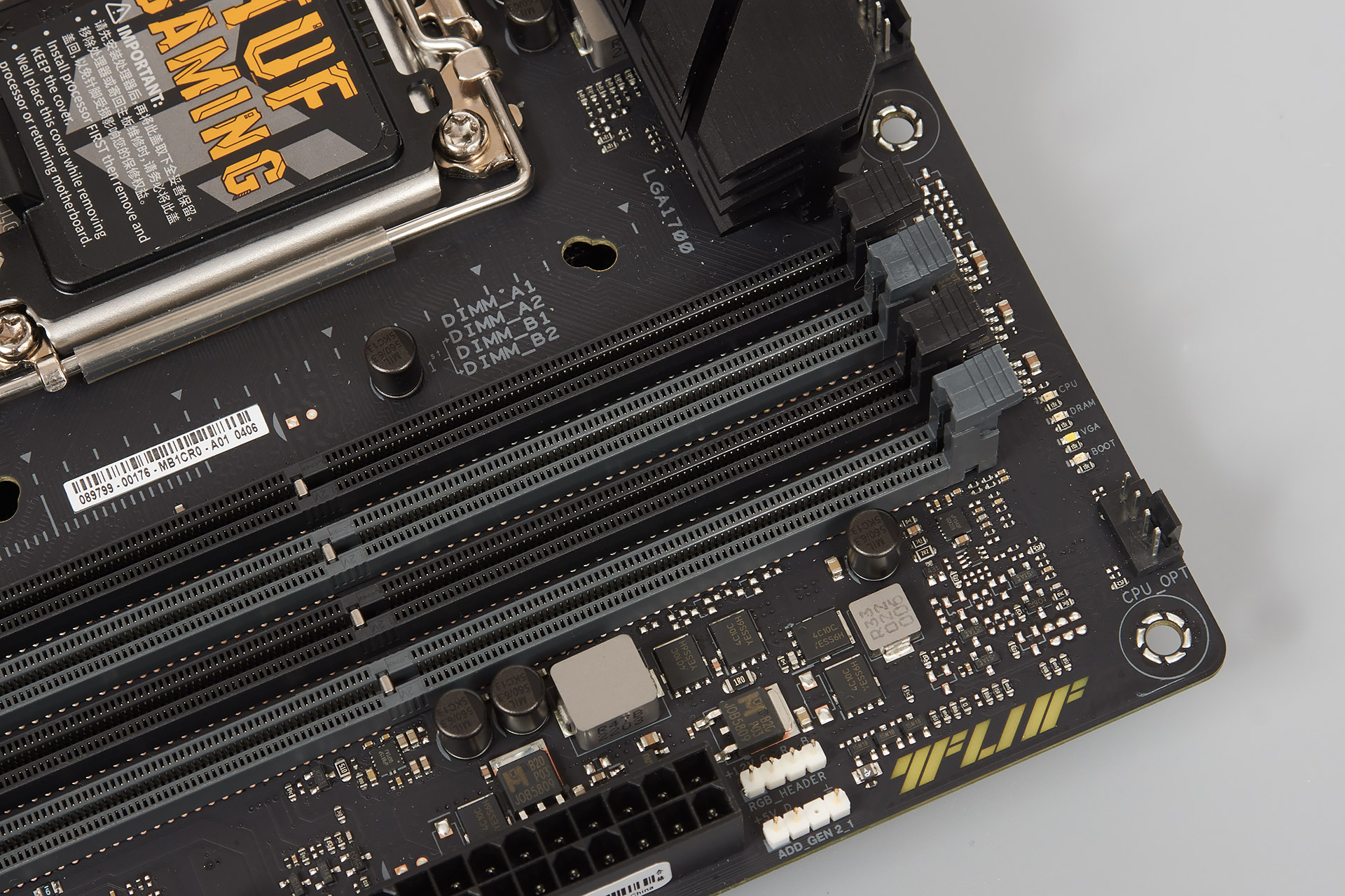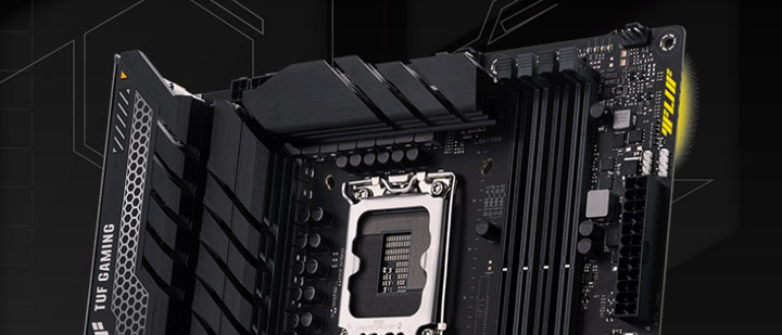 Плата зроблена у чорному кольорі, лише сірі надписи та жовті протравлені місця на текстоліті якось розбавляють похмуру гаму сучасної серії TUF. Вона підтримує всі процесори Socket LGA1700, не тільки нові Raptor Lake, але й старі Alder Lake. А ось пам’ять тільки минулого стандарту DDR4. Це сподобається заощадливим користувачам, які вже мають старі модулі ОЗП і нові купувати не мають бажання.