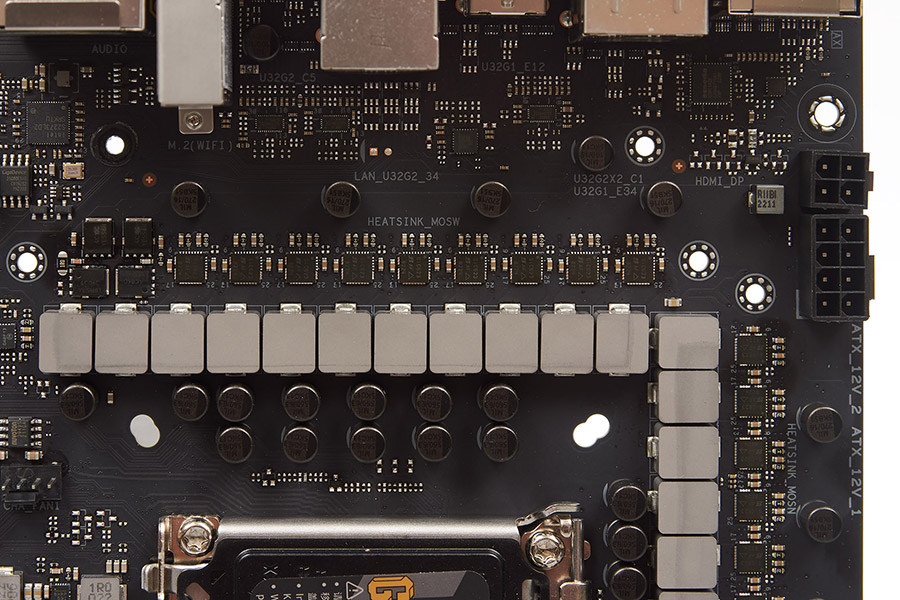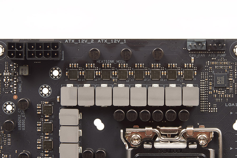 Перетворювачем живлення процесора, який зроблено за схемою 16+1, керує контролер Digi+ ASP2100R. Радіатори охолоджують 17 DrMOS Vishay SiC623 та ще чотири транзистори ON Semiconductor (4C10C і 4C06C) від двох додаткових фаз. Живлення можна під'єднати через один роз’єм ATX12V та один EPS12V.