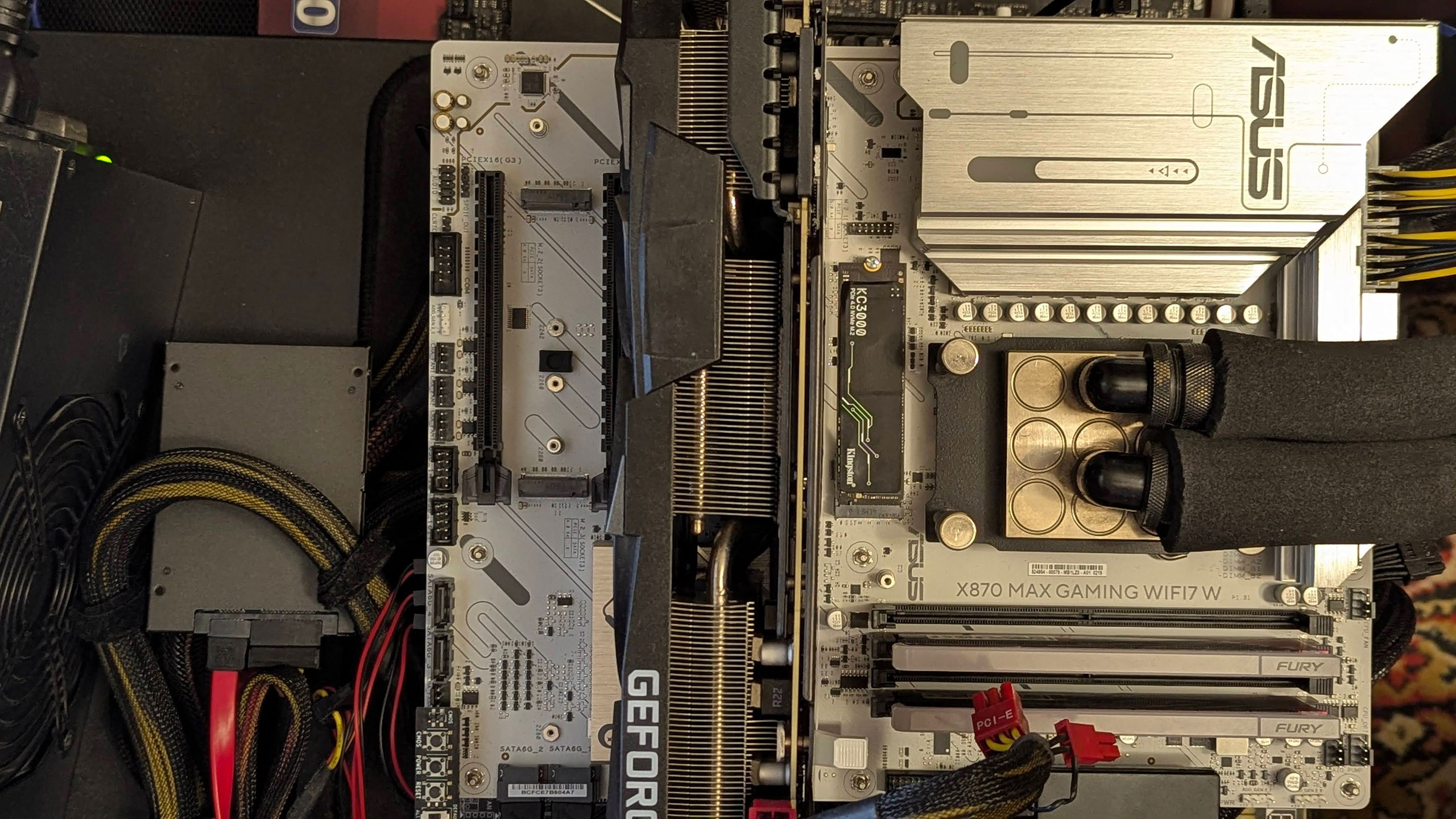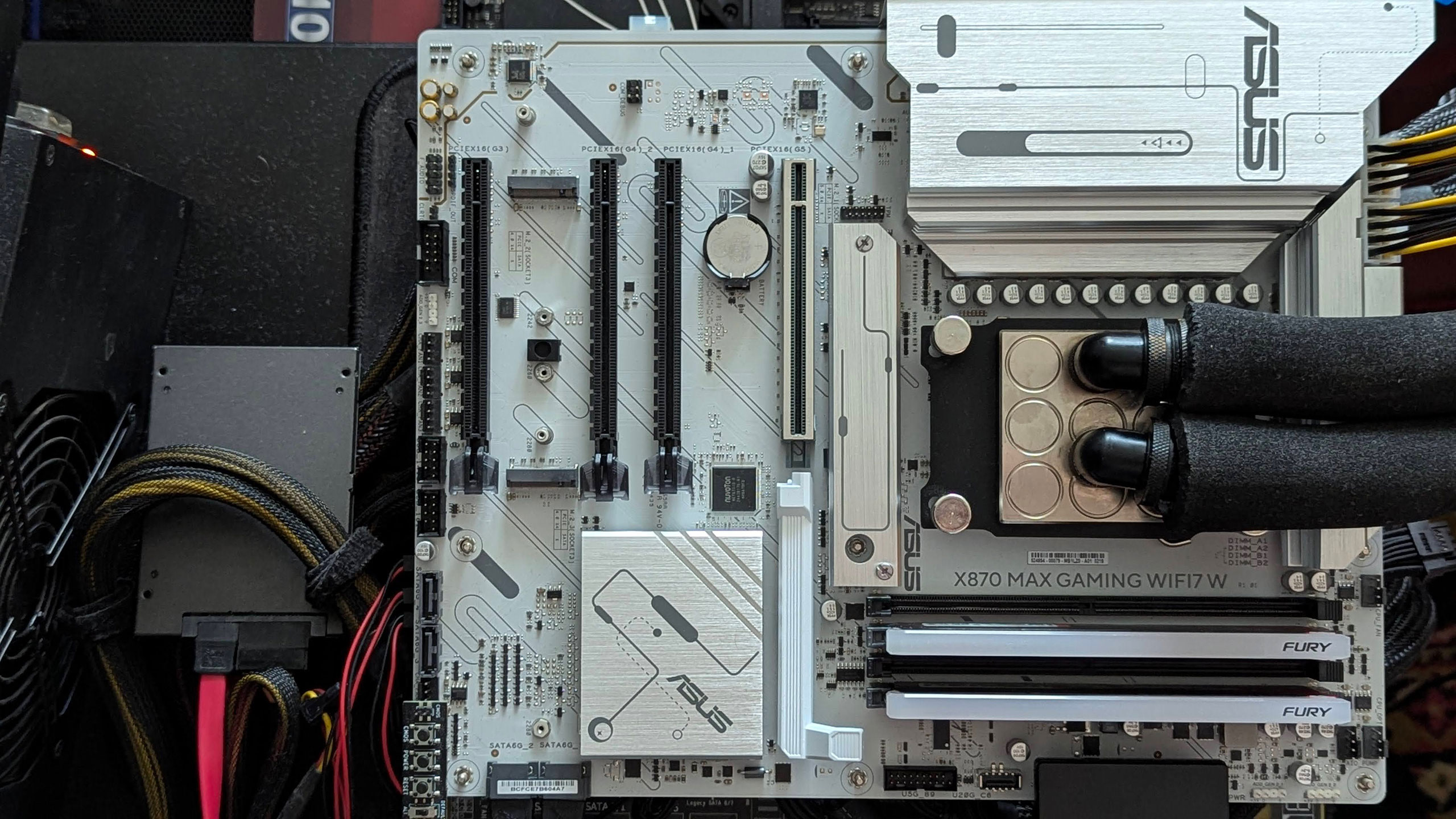 - материнська плата: ASUS X870 MAX GAMING WIFI7 W (UEFI 1028, AGESA 1.2.0.3a Patch A);