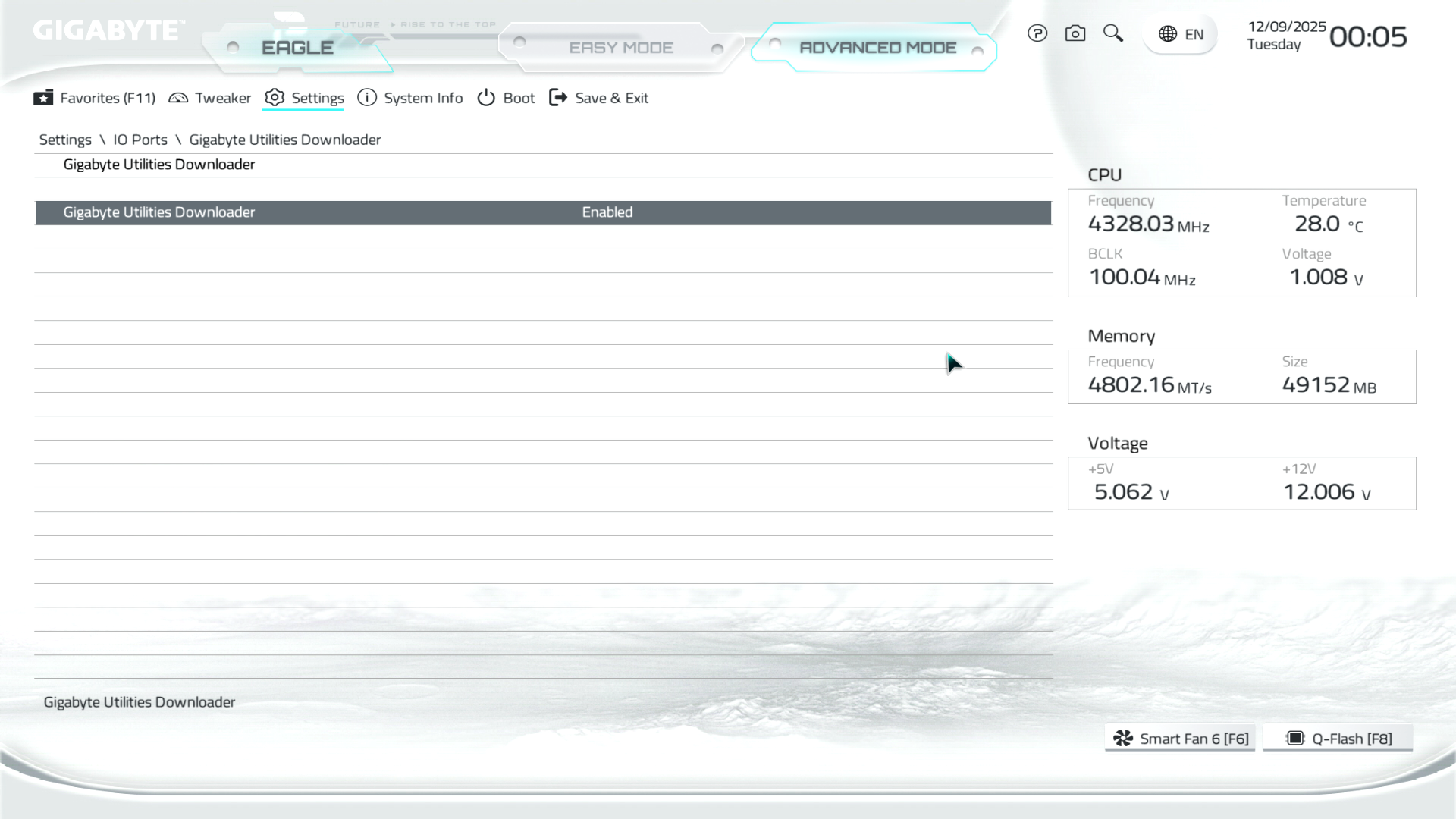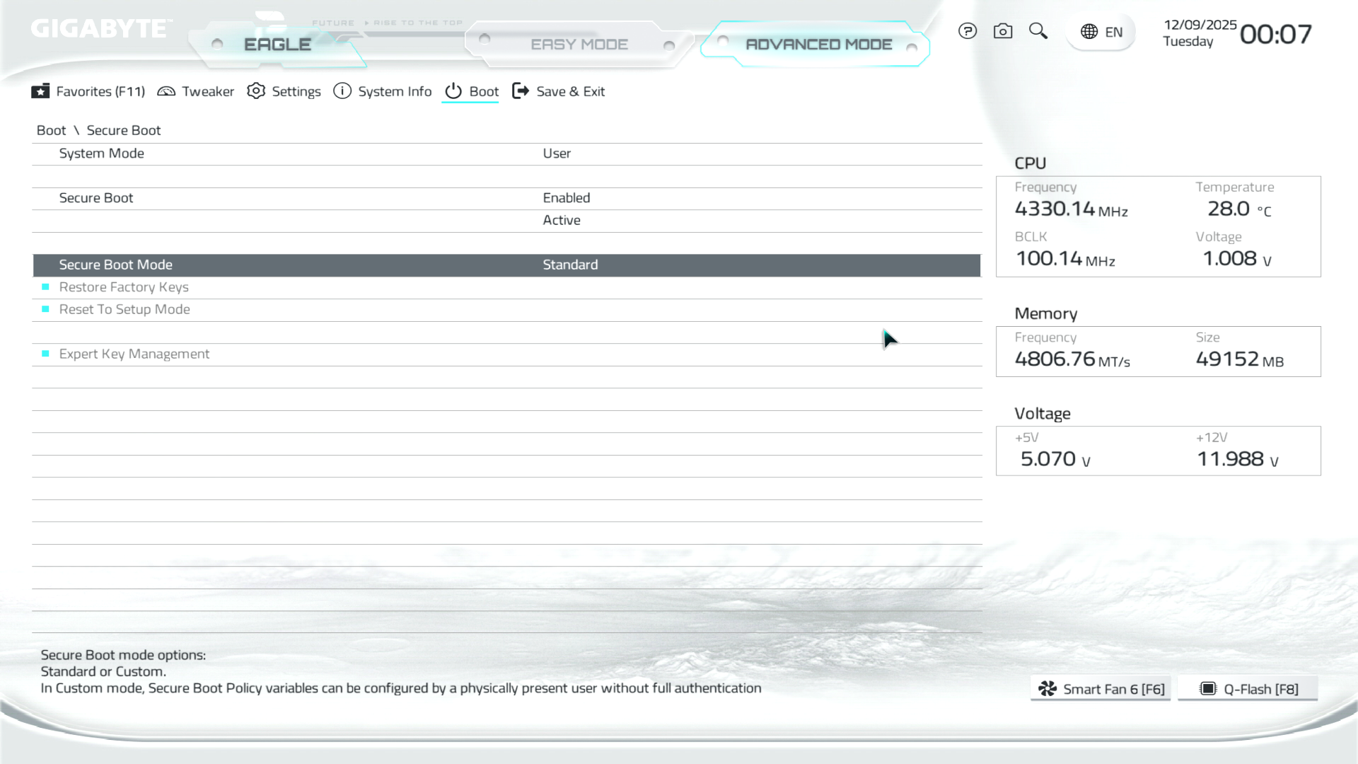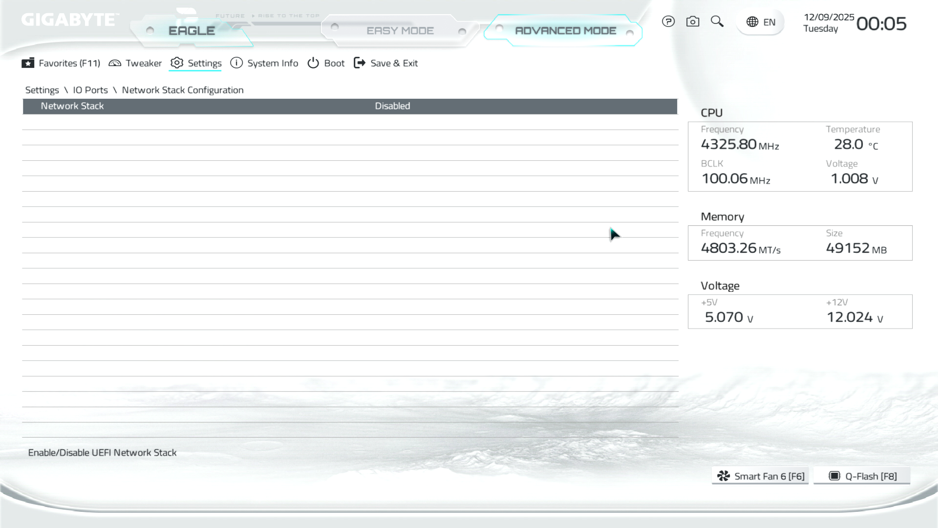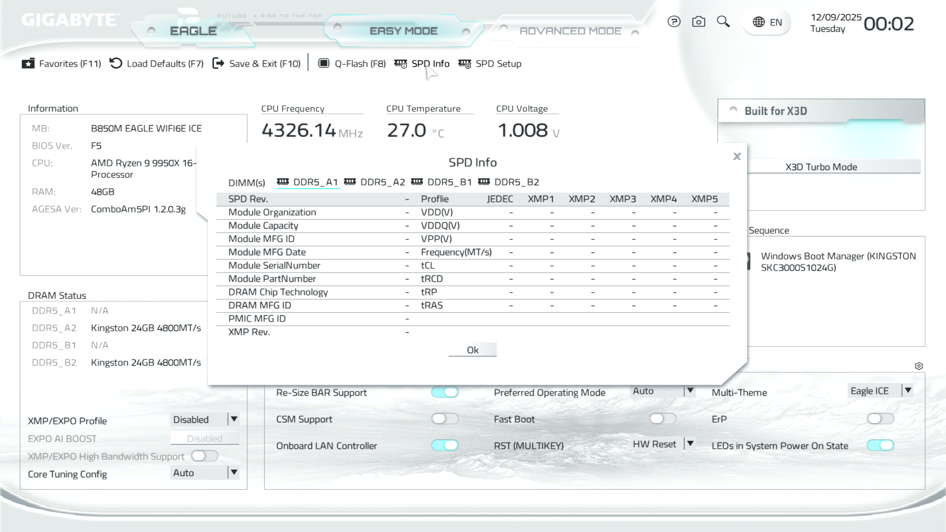 B850M Eagle WiFi6E ICE керується фірмовим UC BIOS, що передбачає два варіанти відображення налаштувань: Advanced Mode й Easy Mode.