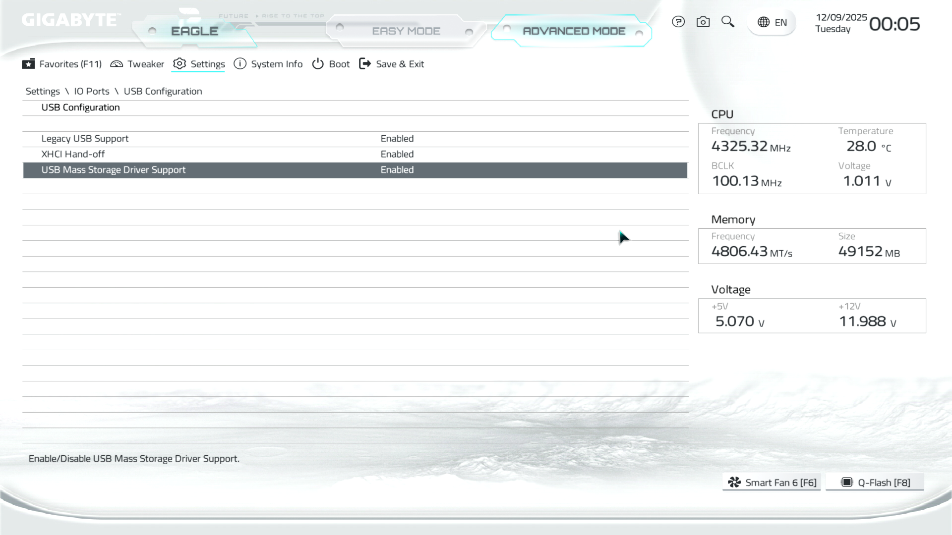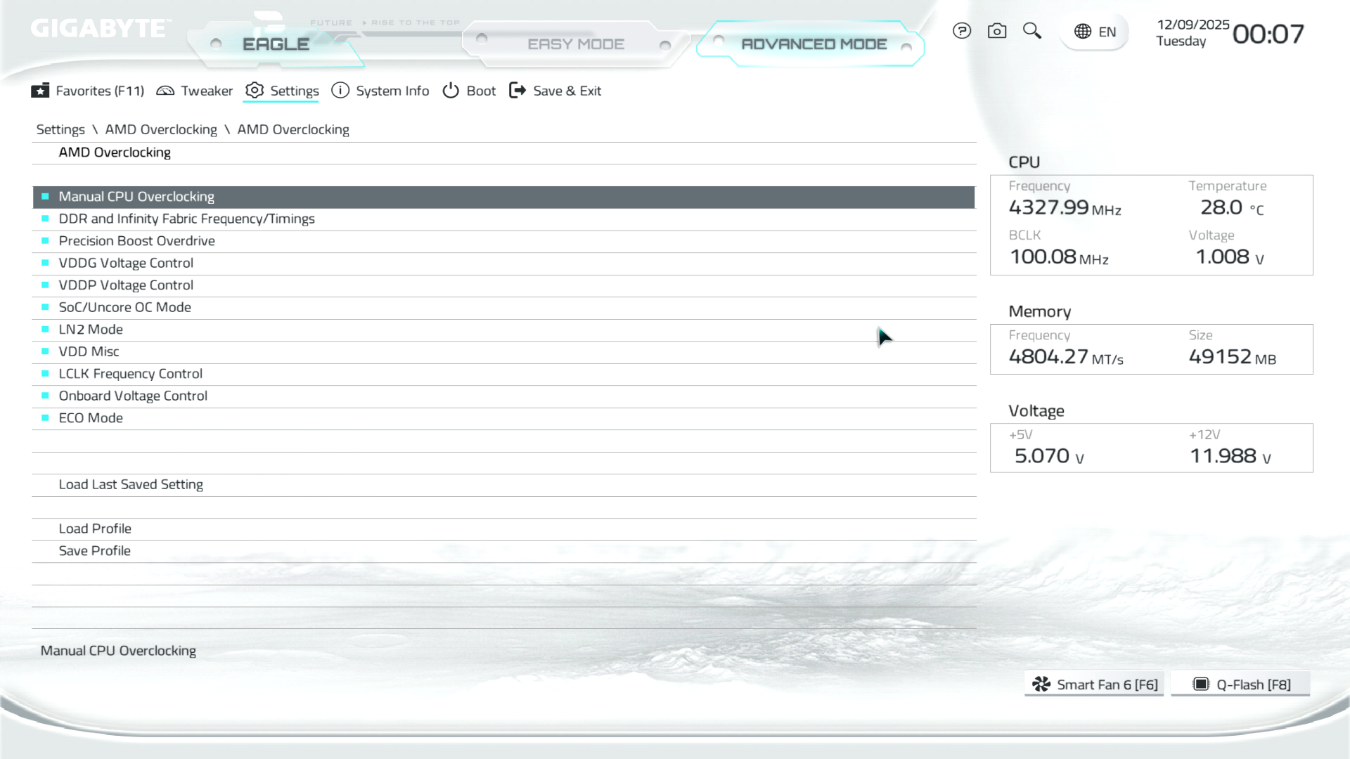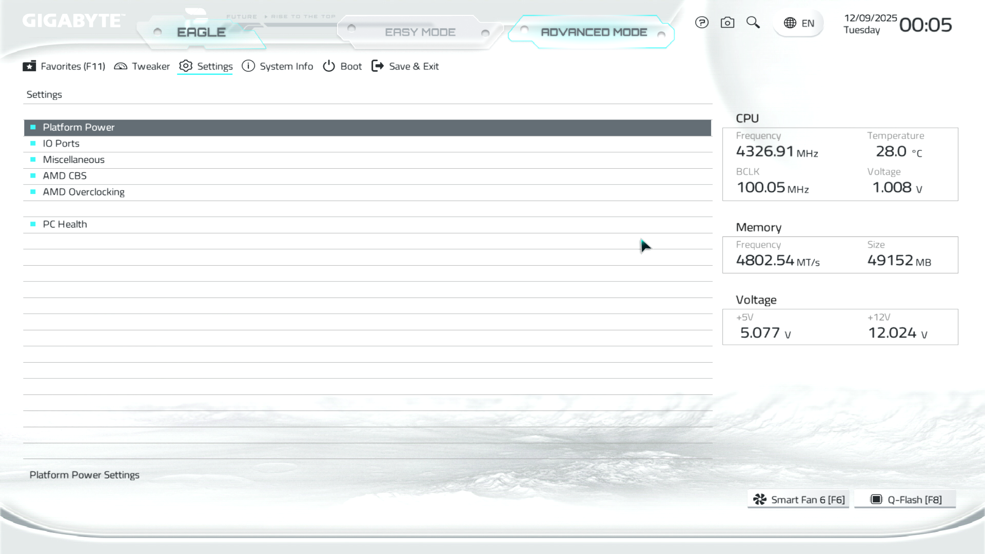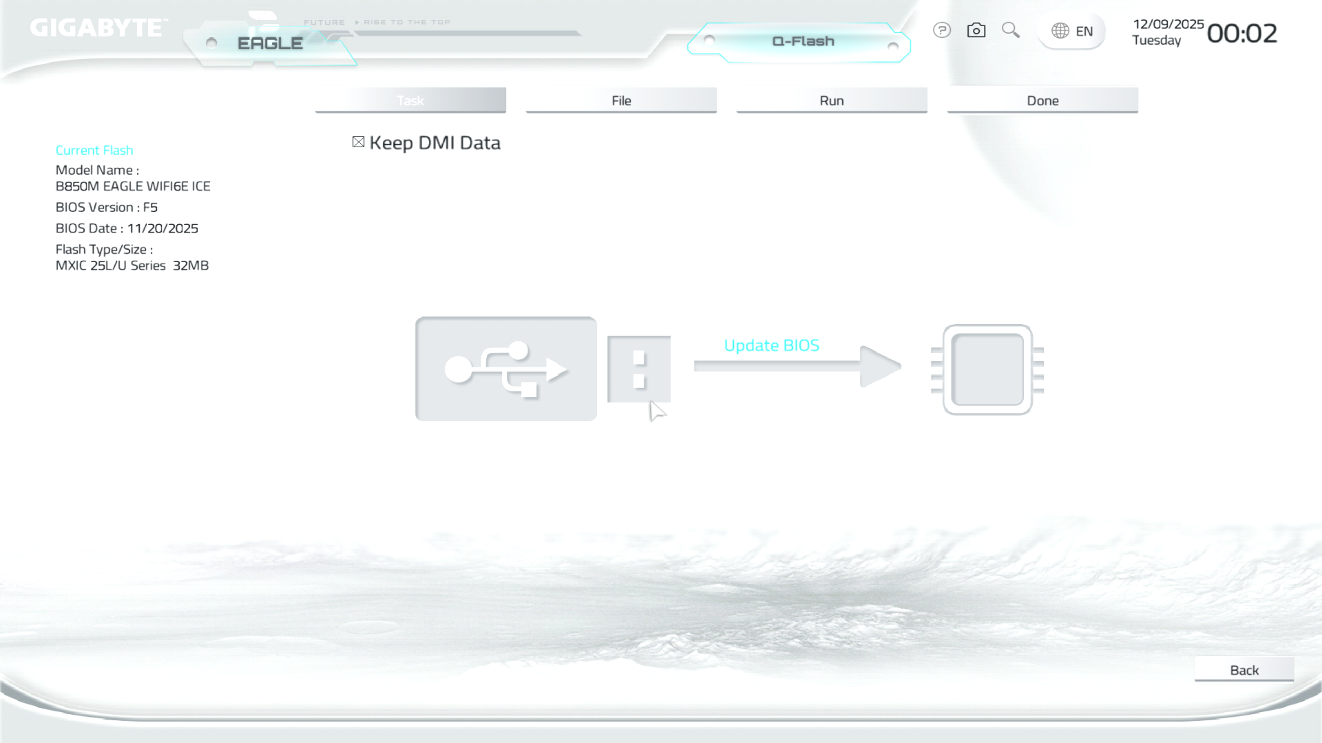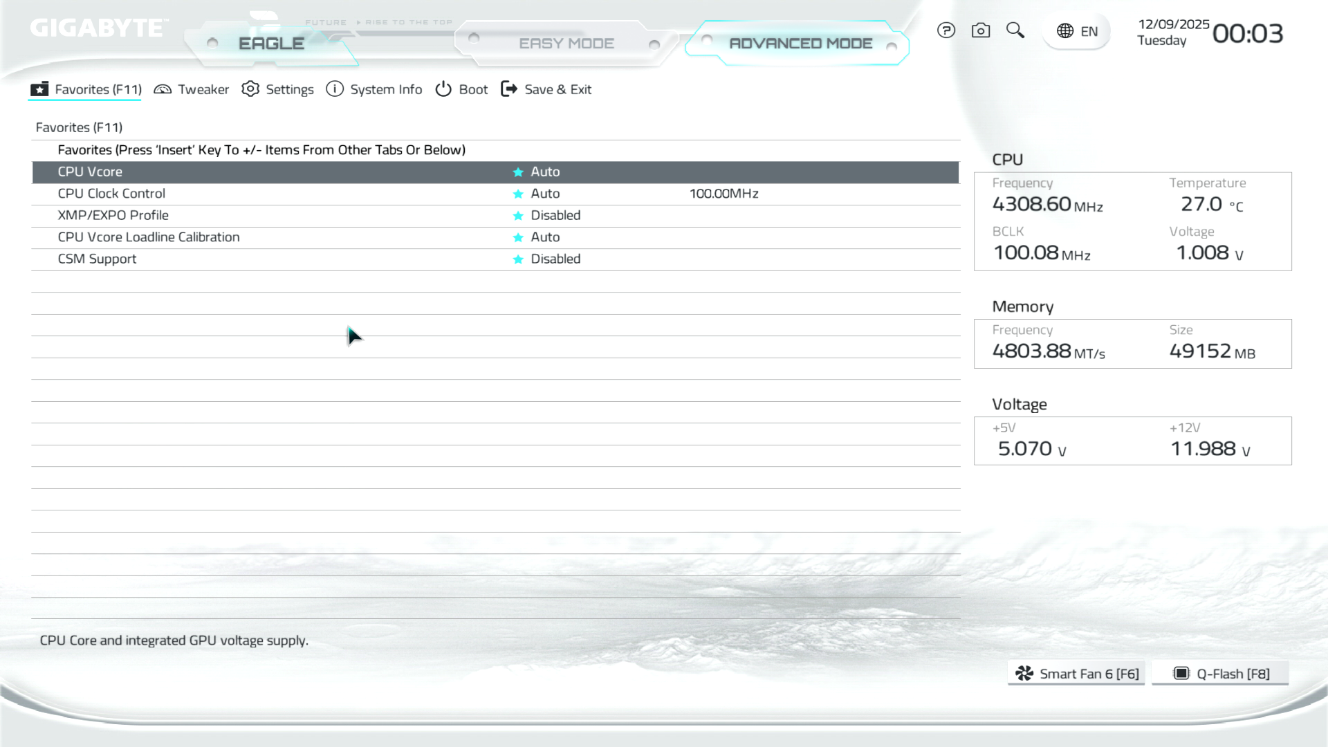 B850M Eagle WiFi6E ICE керується фірмовим UC BIOS, що передбачає два варіанти відображення налаштувань: Advanced Mode й Easy Mode.