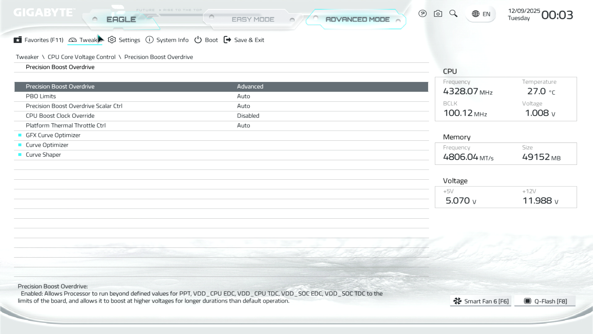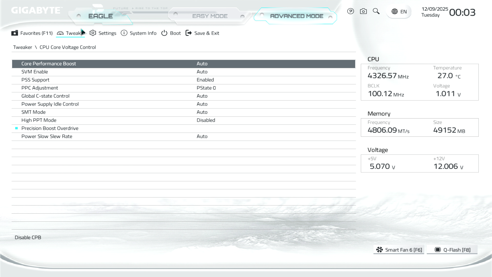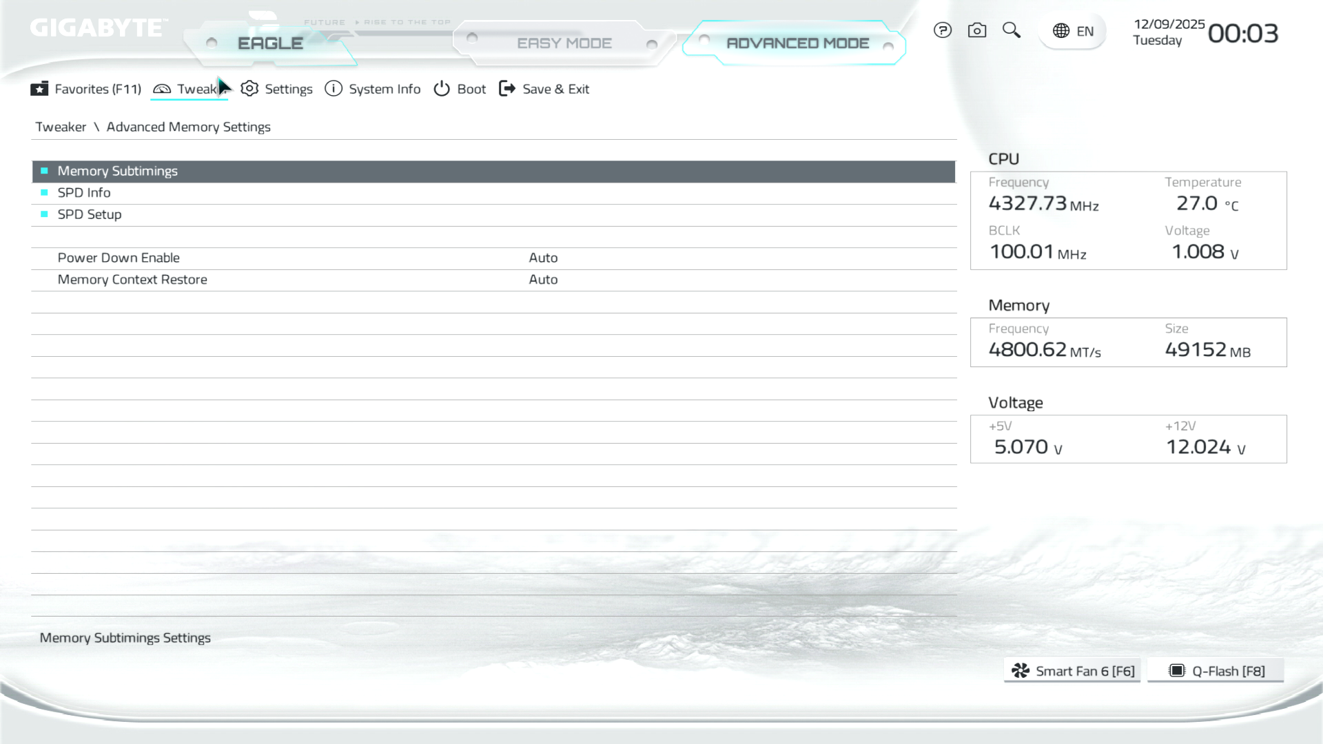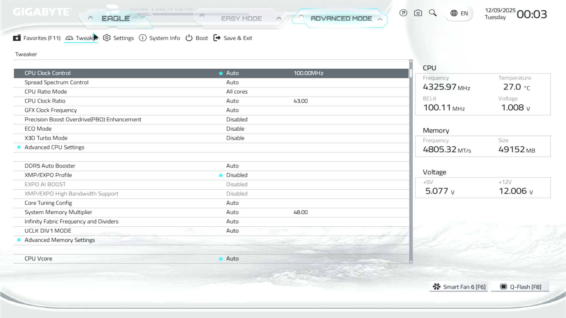 B850M Eagle WiFi6E ICE керується фірмовим UC BIOS, що передбачає два варіанти відображення налаштувань: Advanced Mode й Easy Mode.
