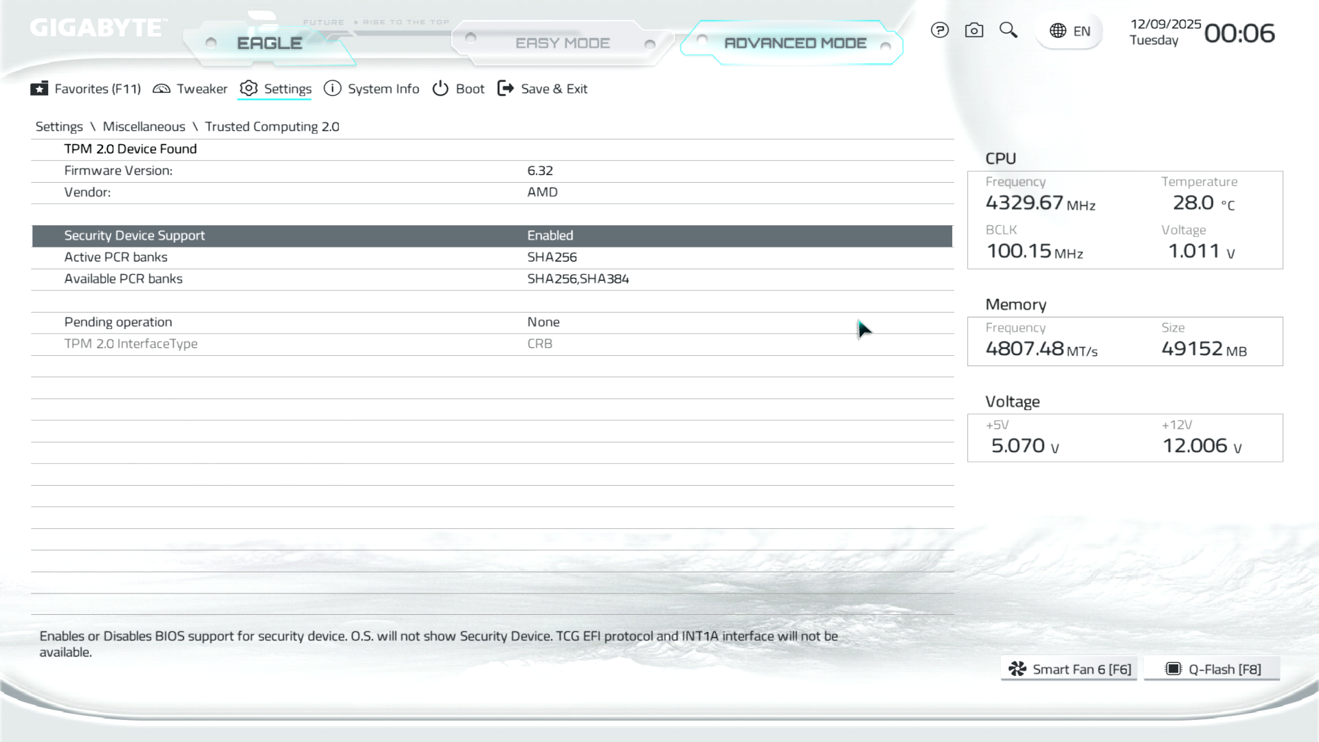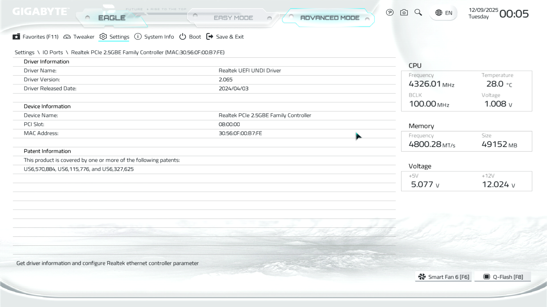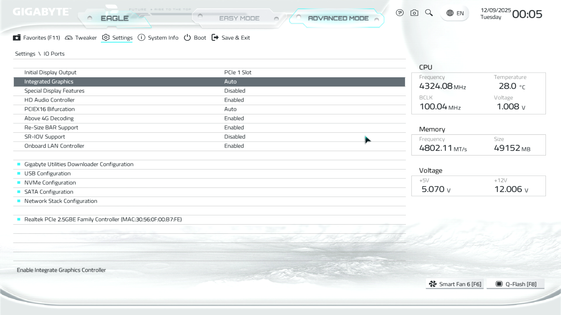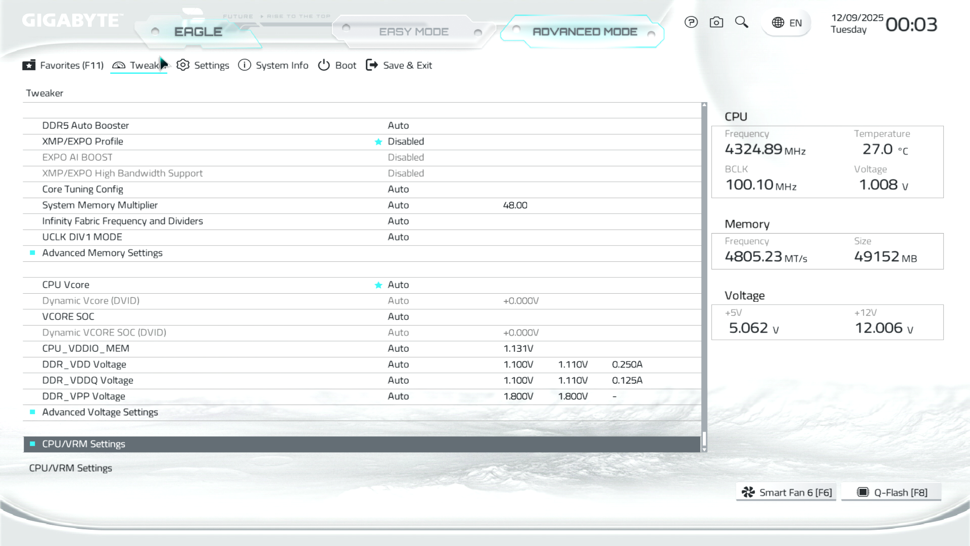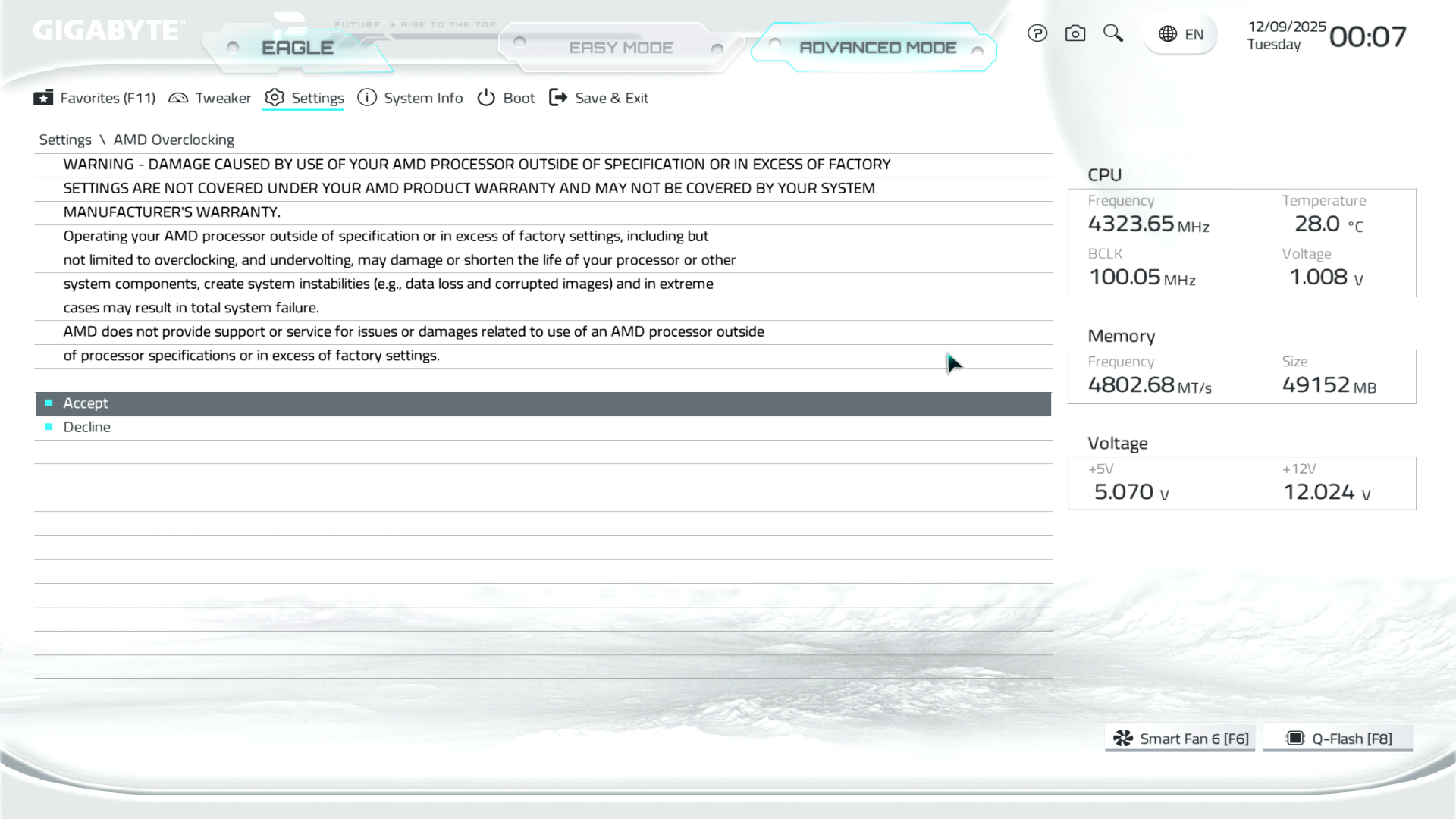 B850M Eagle WiFi6E ICE керується фірмовим UC BIOS, що передбачає два варіанти відображення налаштувань: Advanced Mode й Easy Mode.