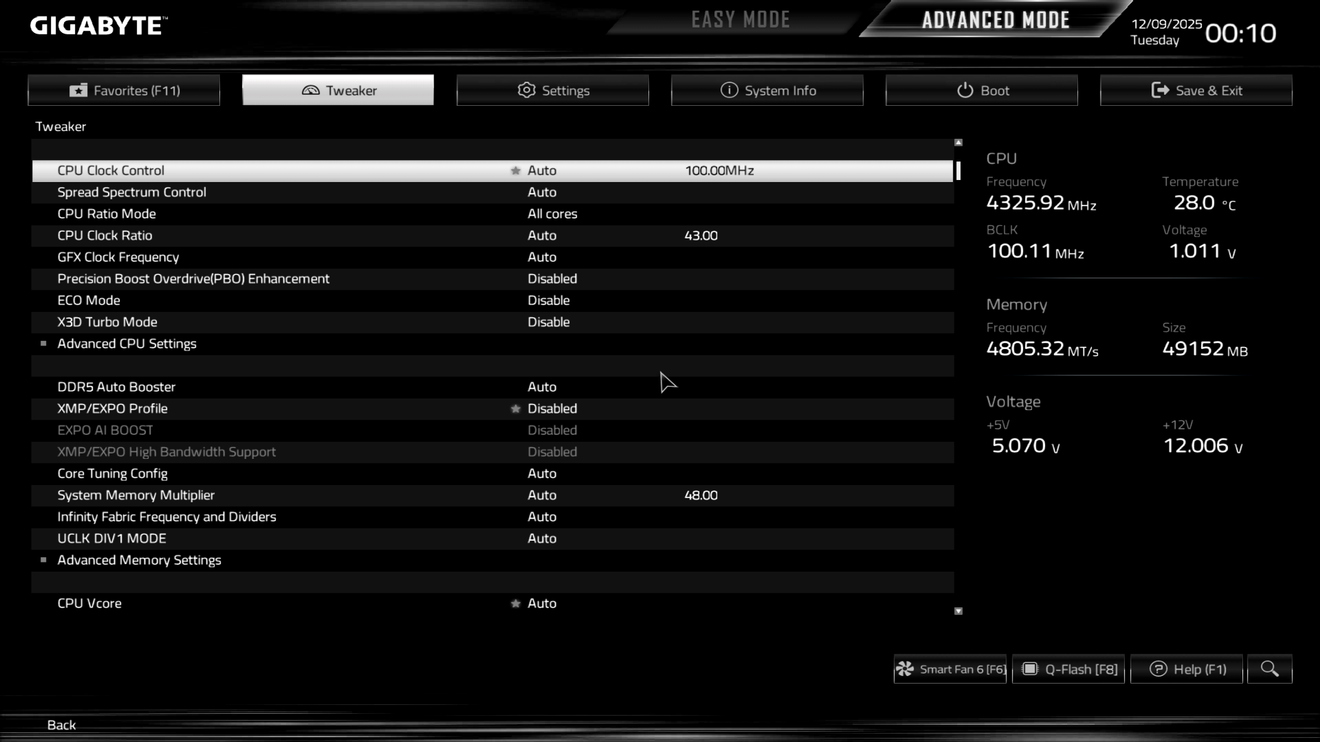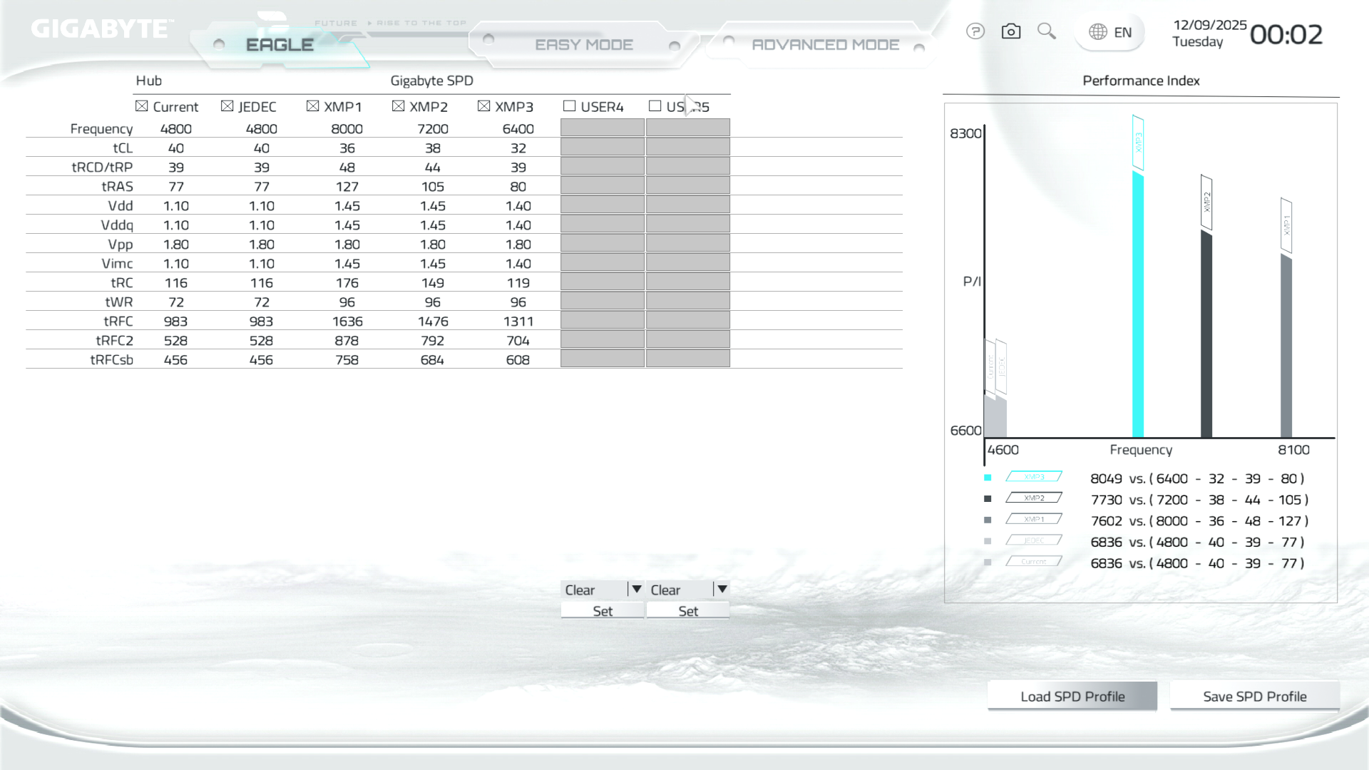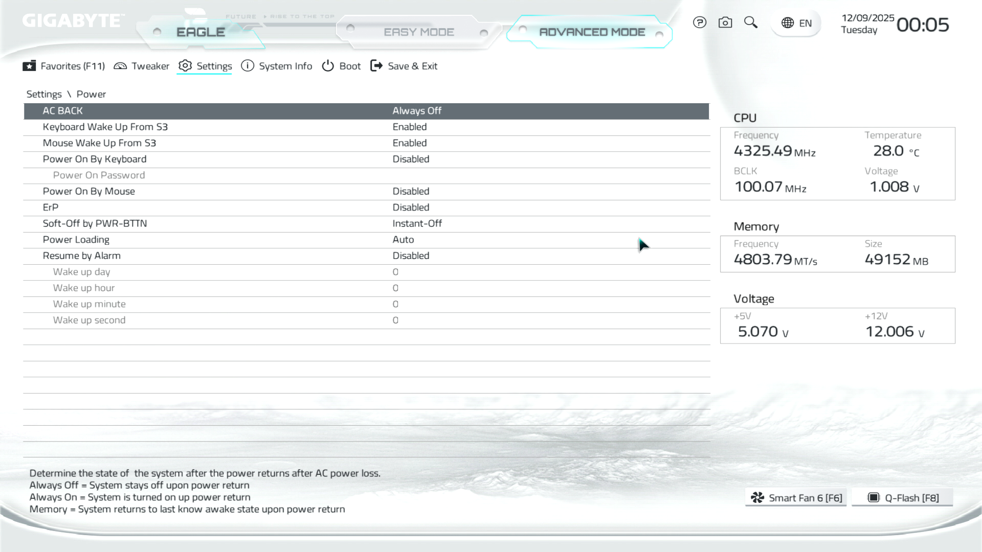 Easy Mode дає можливості отримати звіт по ключових елементах системи, встановити системний час, налаштувати ОЗП з XMP/EXPO включно, криву обертів вентиляторів через Smart Fan 6, вказати пріоритет завантаження з накопичувачів чи мережі, подивитись детальну інформацію про SPD, а також керувати деякими важливими функціями на кшталт CSM, Re-Size BAR та інше. Через панель меню можна викликати допомогу, обрати системну мову, завантажити типові налаштування, відкрити меню улюблених параметрів, а також знайти потрібну опцію за пошуковим запитом. Присутній спецпрофіль налаштувань X3D Turbo Mode для процесорів відповідної серії.
