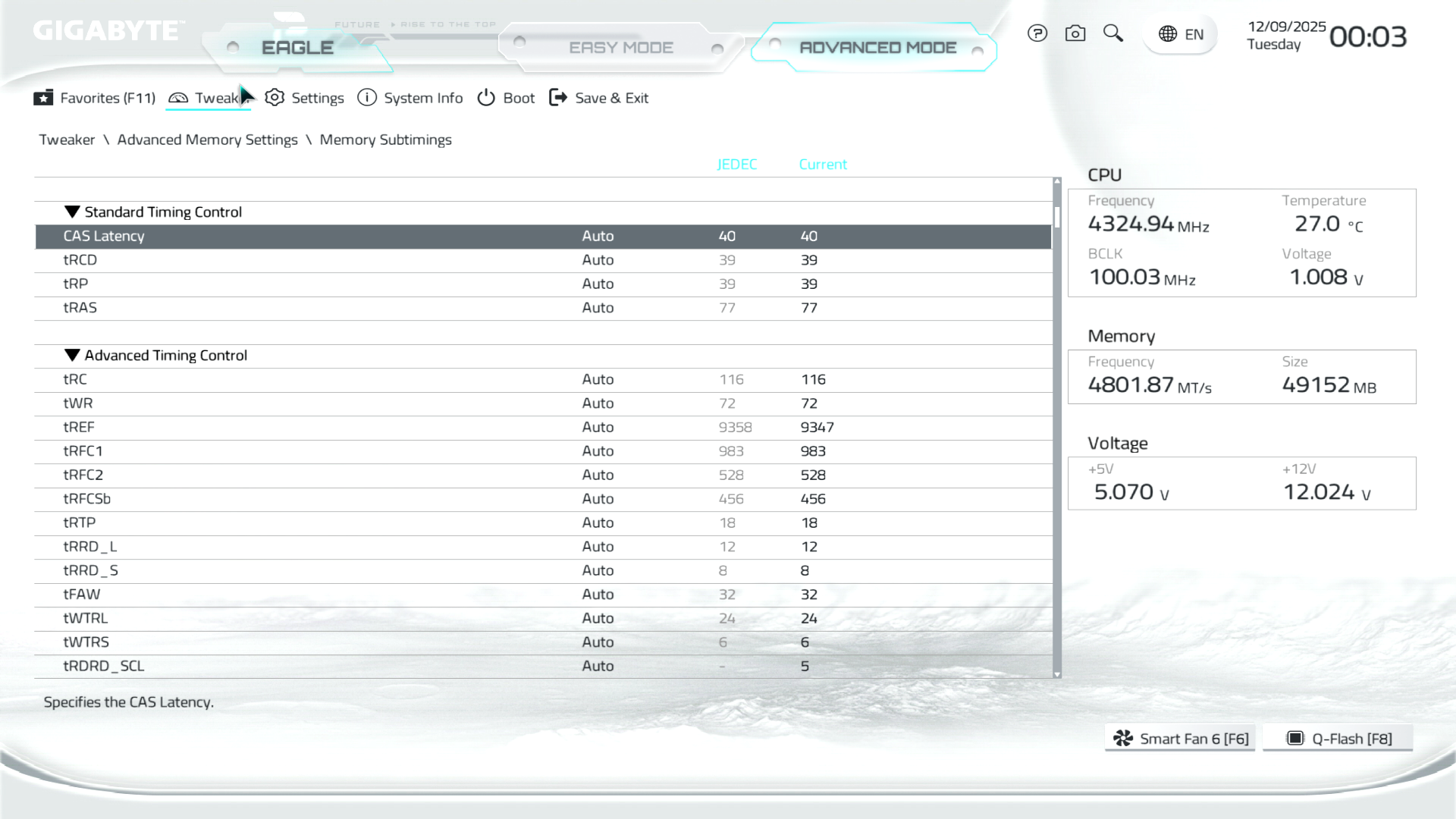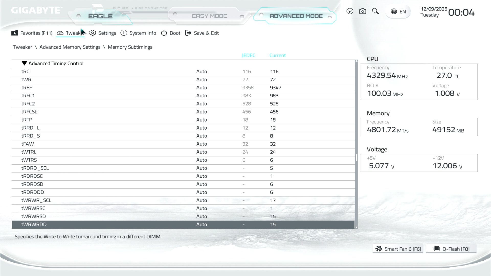 Всі налаштування аналогічні фабричному OPTIMIZED_DEFAULTS, виключення — частота пам’яті, що встановлена у режимі DDR5-5600 з таймінгами JEDEC (максимальна частота без префіксу «OC» в специфікаціях процесора). Управління обертами вентилятора — автоматичне. Для наближення до стандартних умов експлуатації в операційній системі Memory_integrity та Core_isolation не вимикалися.