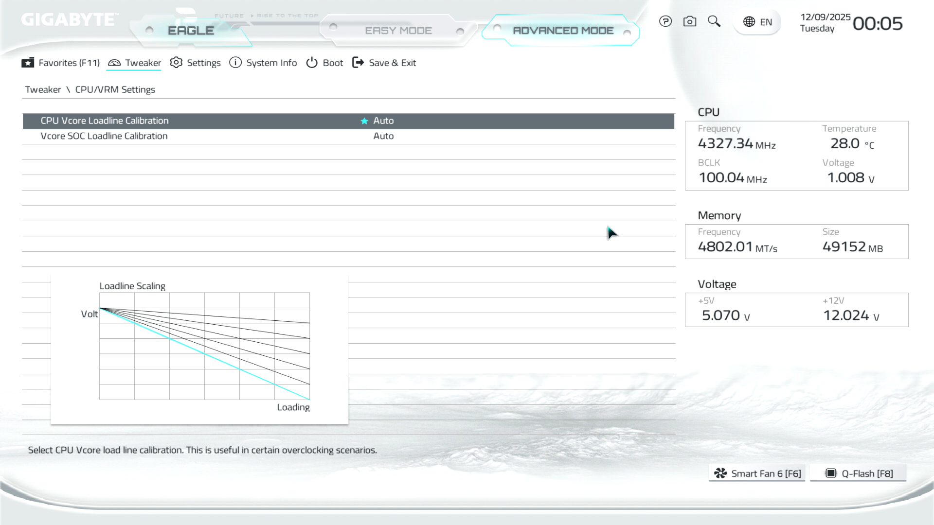 | CPU Load-line Calibration (Level) | 1–5 (Low–Extreme) | 1 |