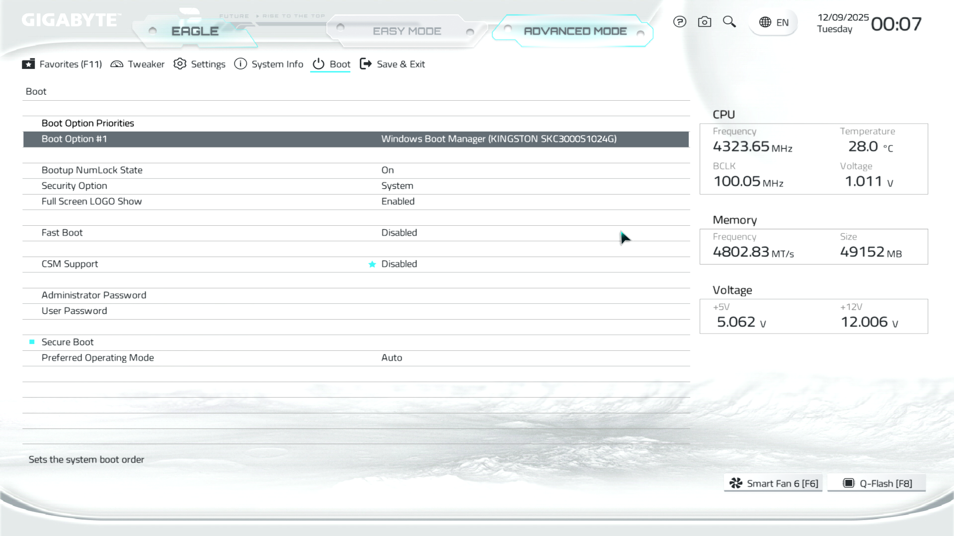 Меню Boot керує не тільки процесом завантаження системи, тут також можна встановити системний пароль, CSM.