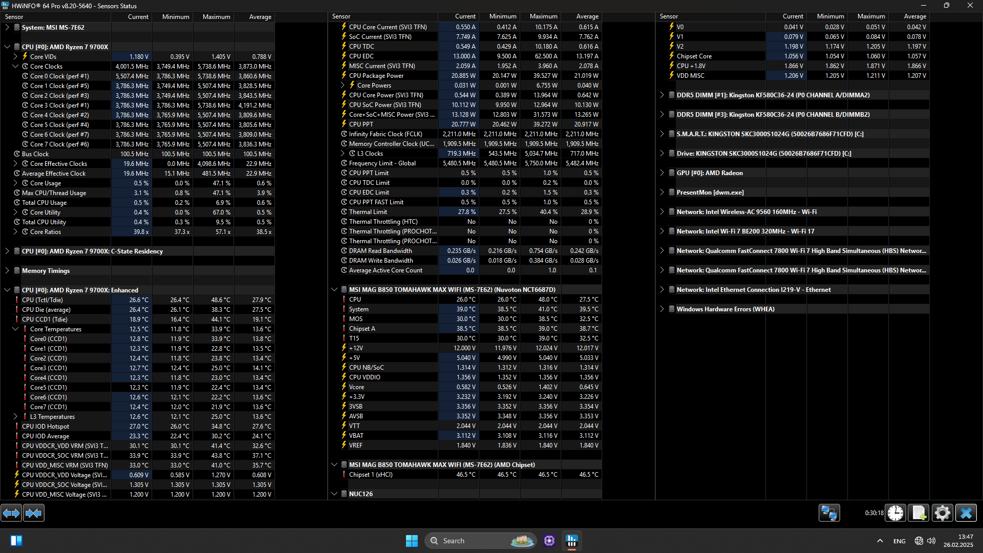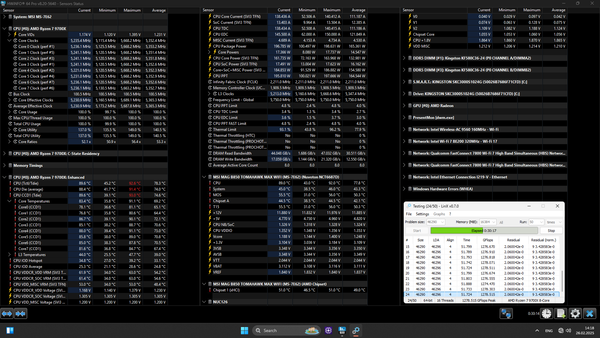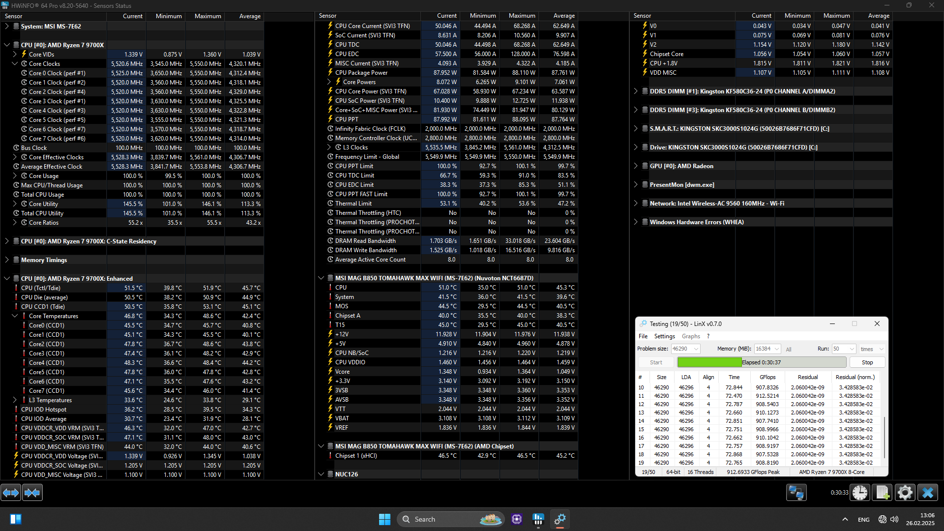 - материнська плата: MSI MAG B850 TOMAHAWK MAX WIFI (UEFI 2.A11, AGESA 1.2.0.3a);